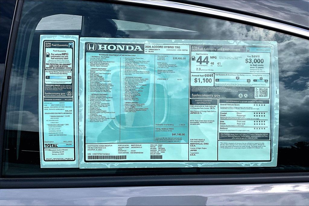 Urban Gray Pearl 2026 Honda Accord Hybrid Touring FWD CVT 2.0L I4 DOHC 16V