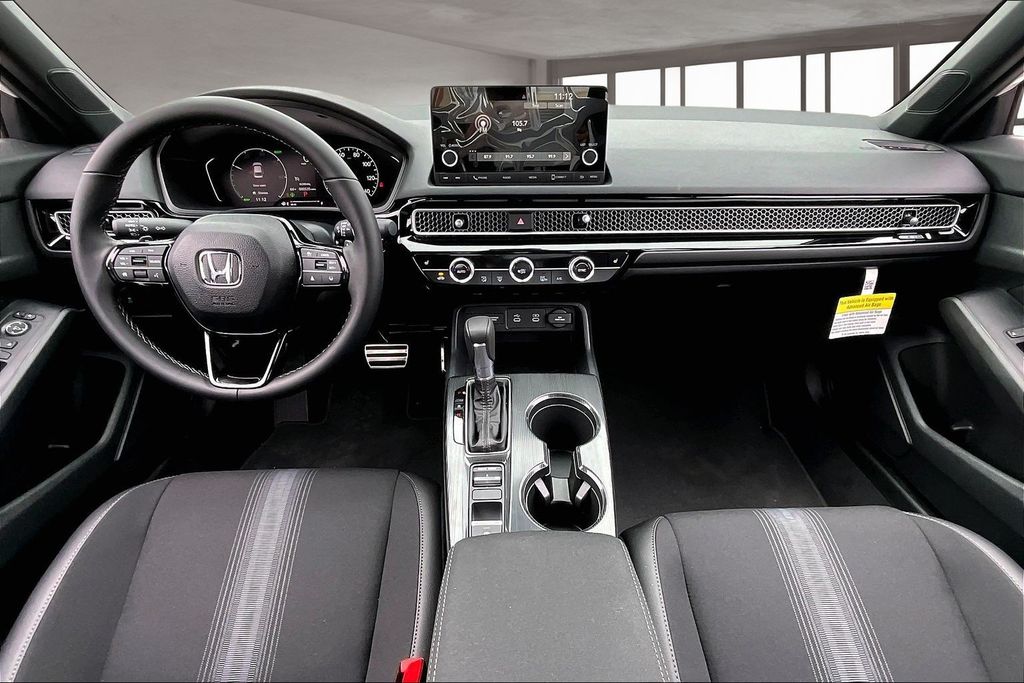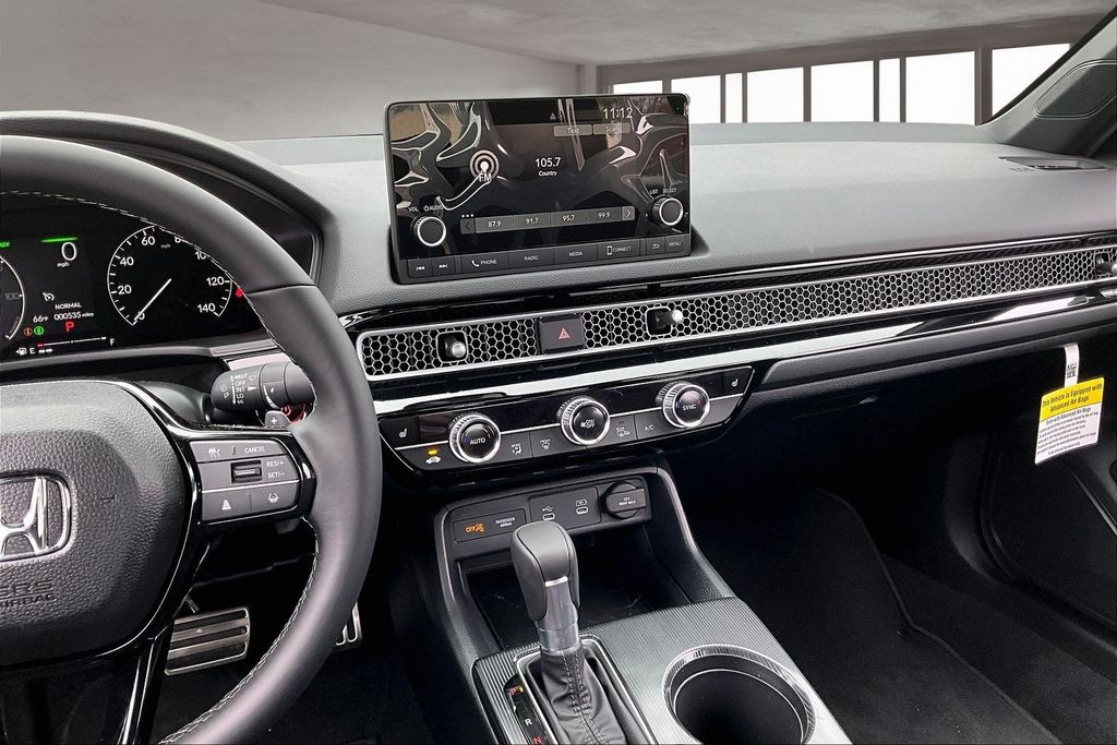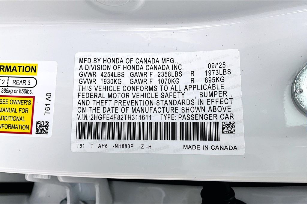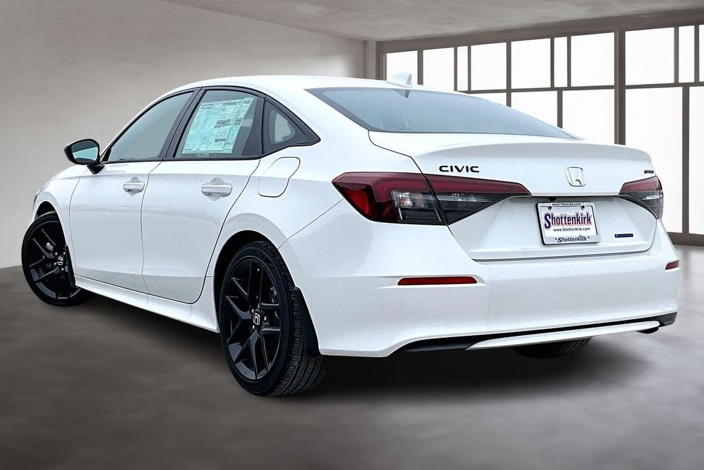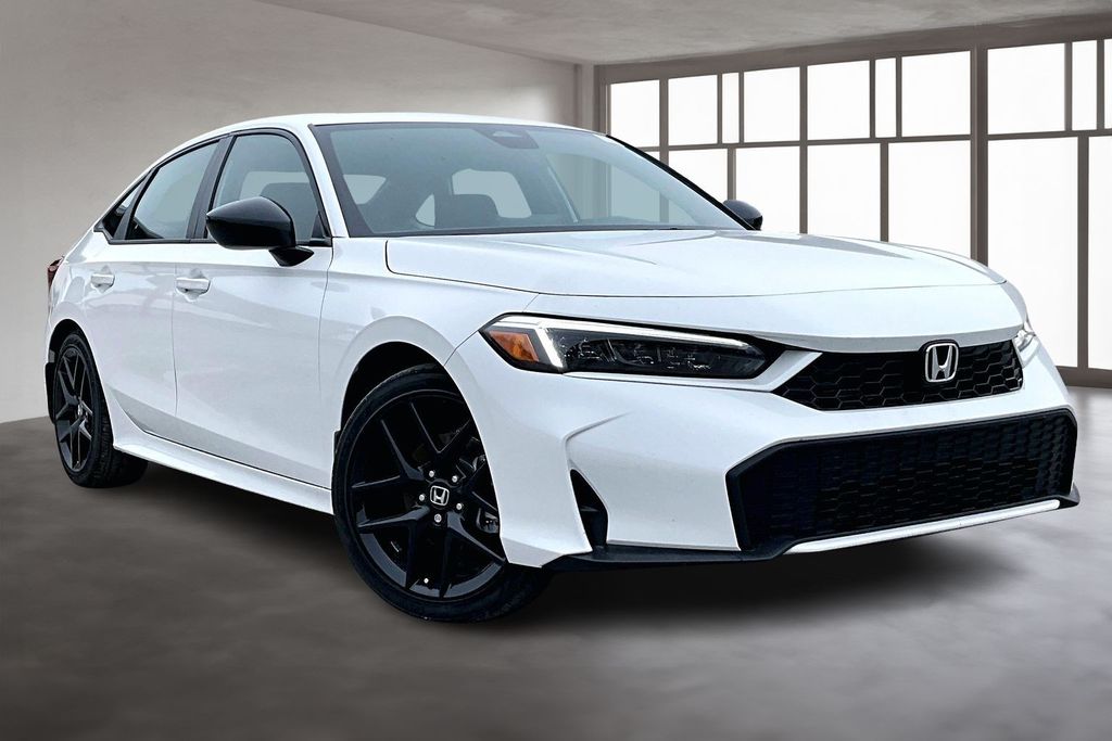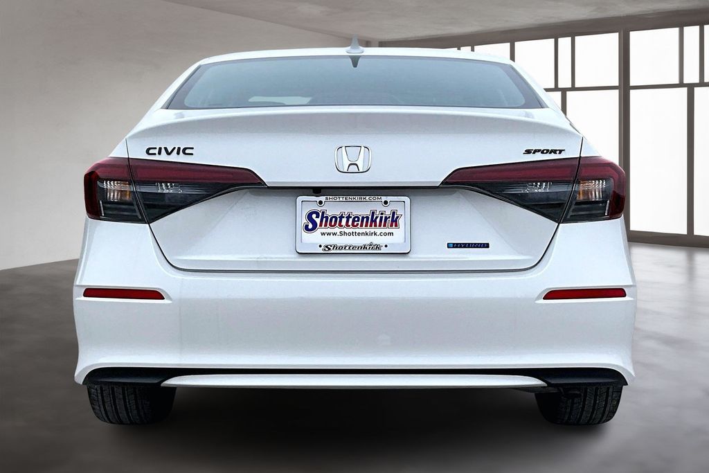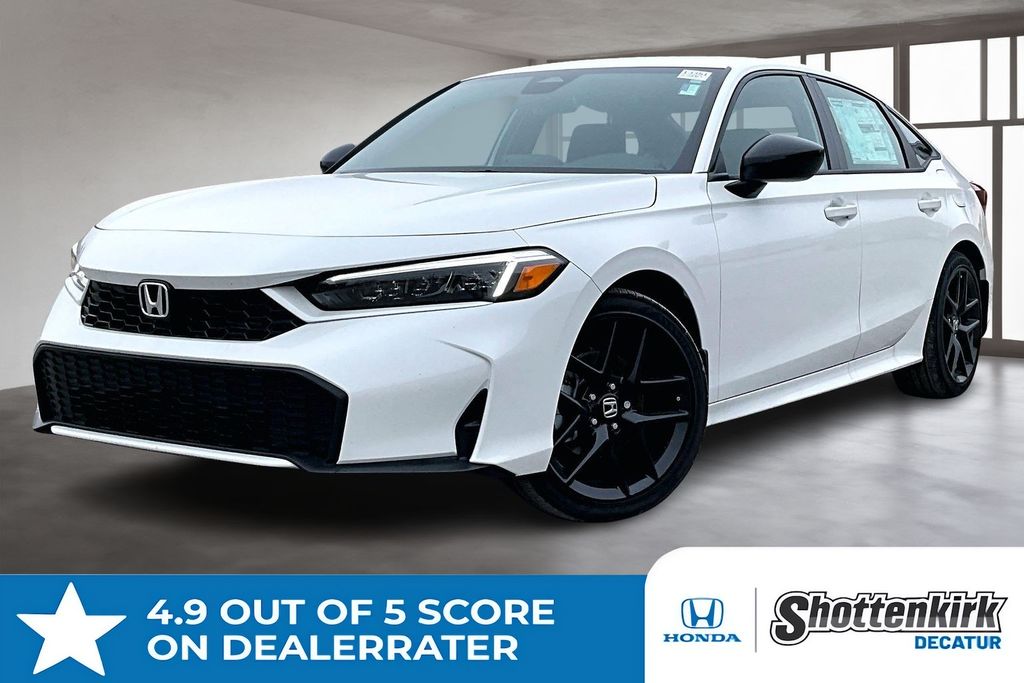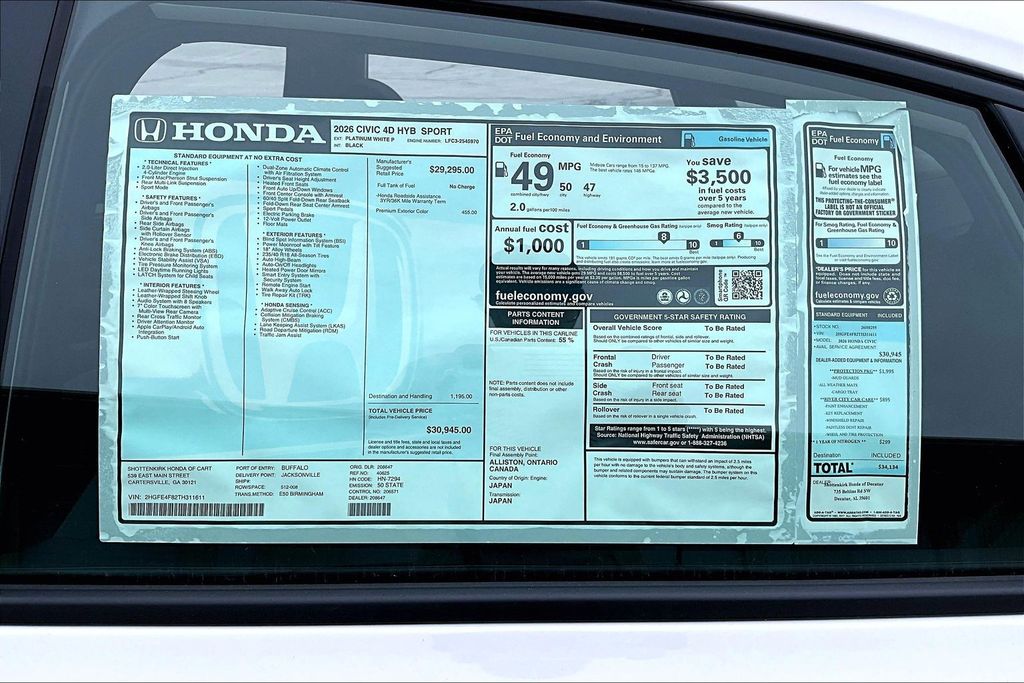 ABS brakes, Active Cruise Control, Alloy wheels, Electronic Stability Control, Front dual zone A/C, Heated door mirrors, Heated Front Bucket Seats, Heated front seats, Illuminated entry, Low tire pressure warning, Power moonroof, Remote keyless entry, Traction control. White 2026 Honda Civic Hybrid Sport FWD eCVT 2.0L 16V DOHC