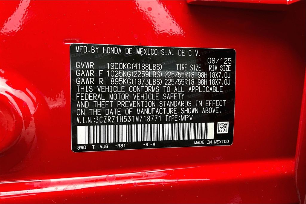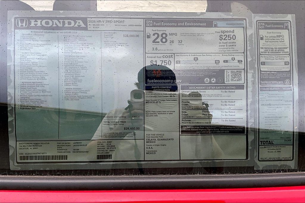 Milano Red 2026 Honda HR-V Sport FWD CVT 2.0L I4 DOHC 16V i-VTEC