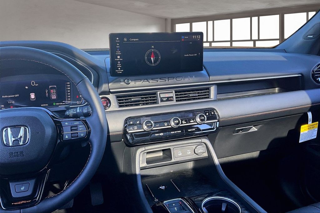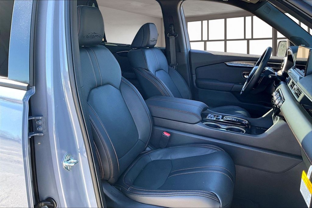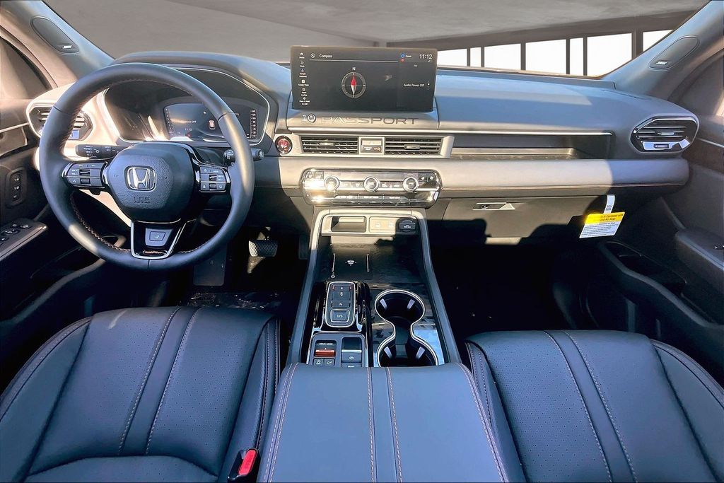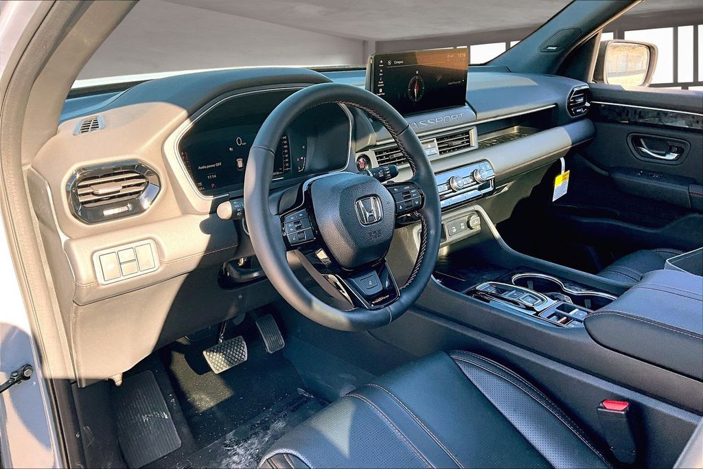 ABS brakes, Active Cruise Control, Alloy wheels, Compass, Electronic Stability Control, Front dual zone A/C, Heated & Ventilated Front Bucket Seats, Heated door mirrors, Heated front seats, Heated rear seats, Illuminated entry, Low tire pressure warning, Navigation System, Perforated Leather Seat Trim, Power Liftgate, Power moonroof, Remote keyless entry, Traction control. Gray 2026 Honda Passport TrailSport Elite AWD 10-Speed Automatic 3.5L V6 DOHC 24V