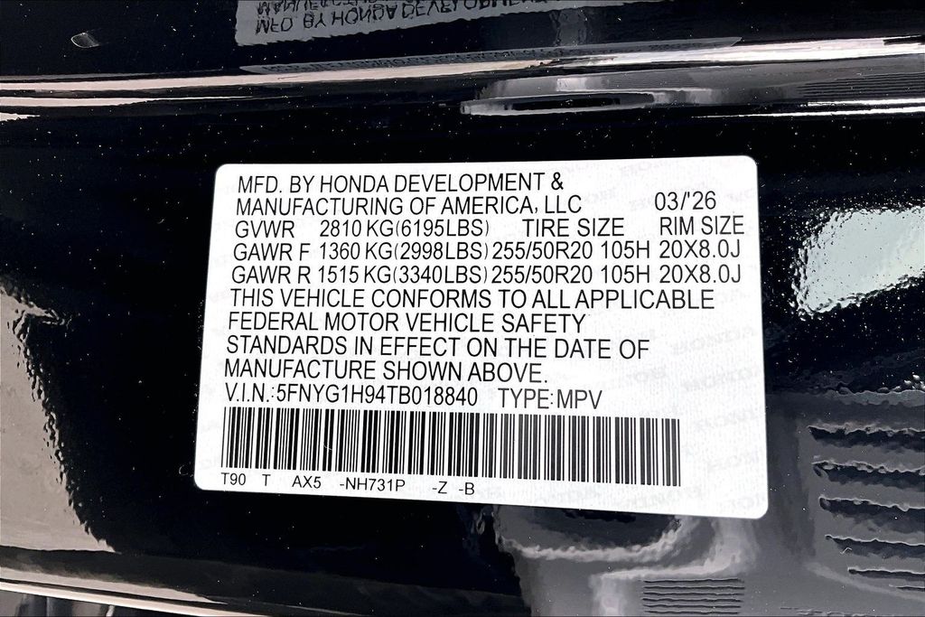 VIN 5FNYG1H94TB018840