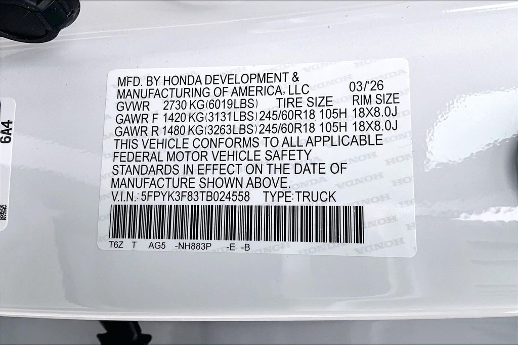 VIN 5FPYK3F83TB024558