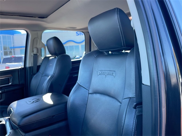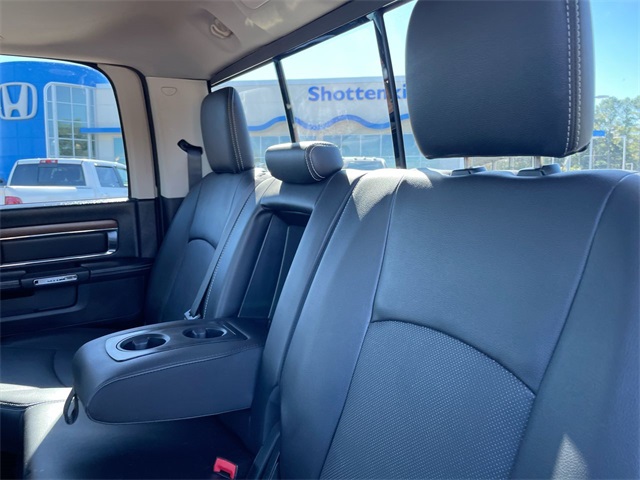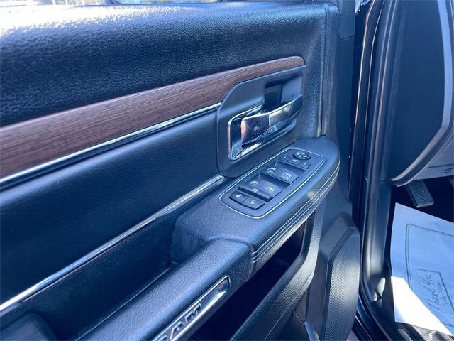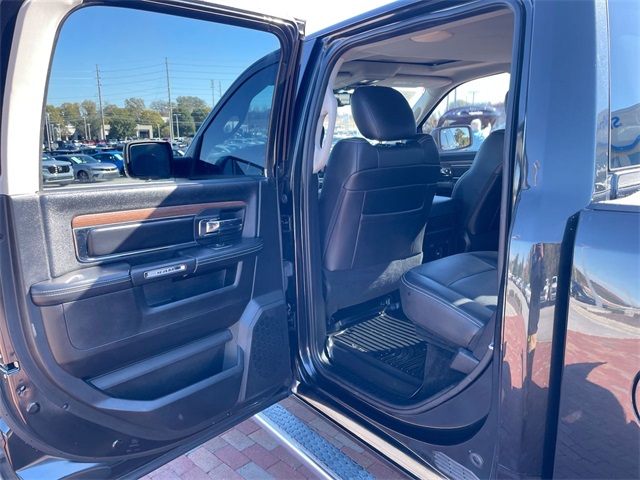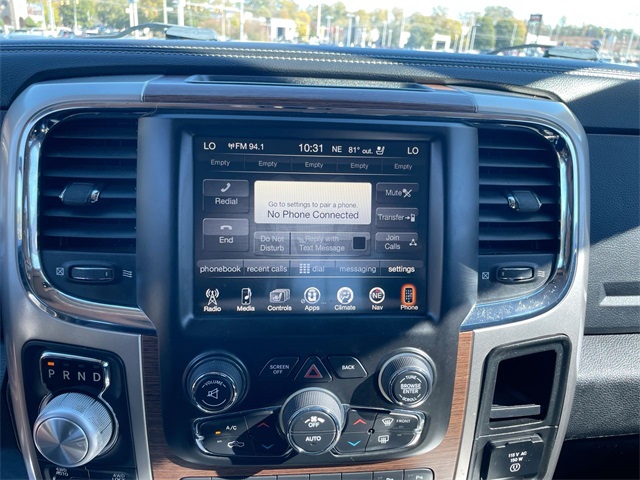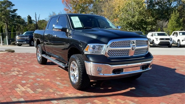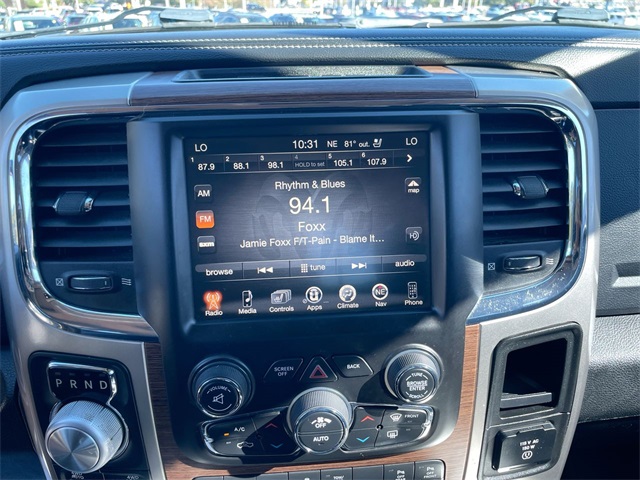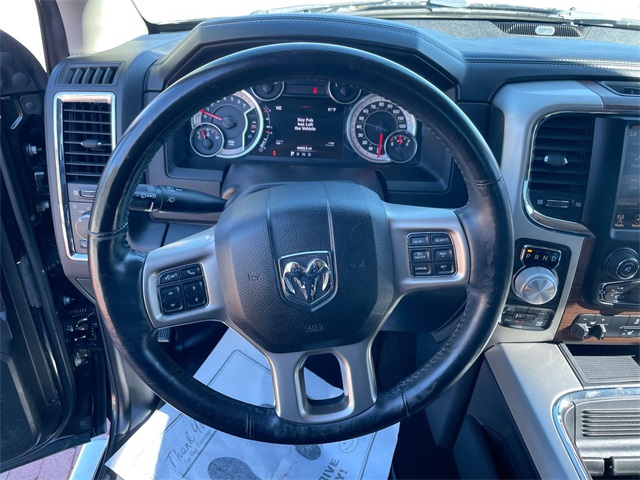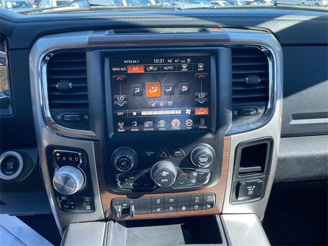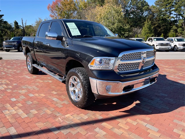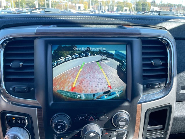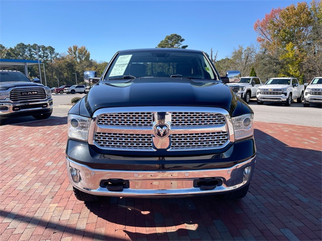 Recent Arrival! 2015 Ram 1500 Laramie Laramie Brilliant Black Crystal Pearlcoat 4D Crew Cab HEMI 5.7L V8 Multi Displacement VVT 8-Speed Automatic 4WD This vehicle comes well equipped with Convenience Group (Auto High Beam Headlamp Control, Keyless Enter-N-Go, Rain Sensitive Windshield Wipers, and Remote Proximity Keyless Entry), Protection Group (Tow Hooks), Quick Order Package 26H Laramie, 1 Yr. Trial (Registration Required), 10 Speakers, 115V Auxiliary Power Outlet, 20" x 9" Chrome Clad Aluminum Wheels, 3.21 Rear Axle Ratio, 32 Gallon Fuel Tank, 4-Wheel Disc Brakes, 5-Year SiriusXM Traffic Service, 5-Year SiriusXM Travel Link Service, 8.4" Touchscreen Display, ABS brakes, Active Grille Shutters, Adjustable pedals, Air Conditioning, Alloy wheels, AM/FM radio, Anti-Spin Differential Rear Axle, Audio memory, Auto-dimming door mirrors, Auto-dimming Rear-View mirror, Automatic temperature control, Brake assist, Bumpers: chrome, Center Hub, Compass, Delay-off headlights, Driver door bin, Driver vanity mirror, Dual front impact airbags, Dual front side impact airbags, Electronic Shift, Electronic Stability Control, Emergency communication system, Folding Flat Load Floor Storage, Front anti-roll bar, Front Center Armrest w/Storage, Front dual zone A/C, Front fog lights, Front reading lights, Front wheel independent suspension, Fully automatic headlights, Garage door transmitter, GPS Antenna Input, GPS Navigation, Harman Radio Manufacturer, HD Radio, Heated door mirrors, Heated Front Seats, Heated front seats, Heated steering wheel, High Back Seats, Illuminated entry, Integrated Voice Command w/Bluetooth, Leather steering wheel, Leather Trim 40/20/40 Bench Seat, Low tire pressure warning, Media Hub (SD, USB, AUX), Memory seat, Occupant sensing airbag, Outside temperature display, Overhead airbag, Overhead console, Panic alarm, ParkSense Front/Rear Park Assist System, ParkView Rear Back-Up Camera, Passenger door bin, Passenger vanity mirror, Pedal memory, Power 10-Way Memory Driver & 6-Way Passenger Seats, Power door mirrors, Power driver seat, Power passenger seat, Power steering, Power Sunroof, Power windows, Radio data system, Radio: Uconnect 8.4A AM/FM/SXM/BT, Radio: Uconnect 8.4AN AM/FM/SXM/HD/BT/NAV, Rear 60/40 Split Folding Seat, Rear anti-roll bar, Rear seat center armrest, Rear step bumper, Remote keyless entry, Remote Start System, Security system, SIRIUSXM Satellite Radio, SIRIUSXM Traffic, SiriusXM Travel Link, Speed control, Split folding rear seat, Steering wheel mounted audio controls, Tachometer, Tilt steering wheel, Tip Start, Traction control, Trip computer, Turn signal indicator mirrors, Uconnect Access, Uconnect Access 1 Year Trial, Variably intermittent wipers, Ventilated Front Seats, Ventilated front seats, Voltmeter, and Wheel to Wheel Side Steps.