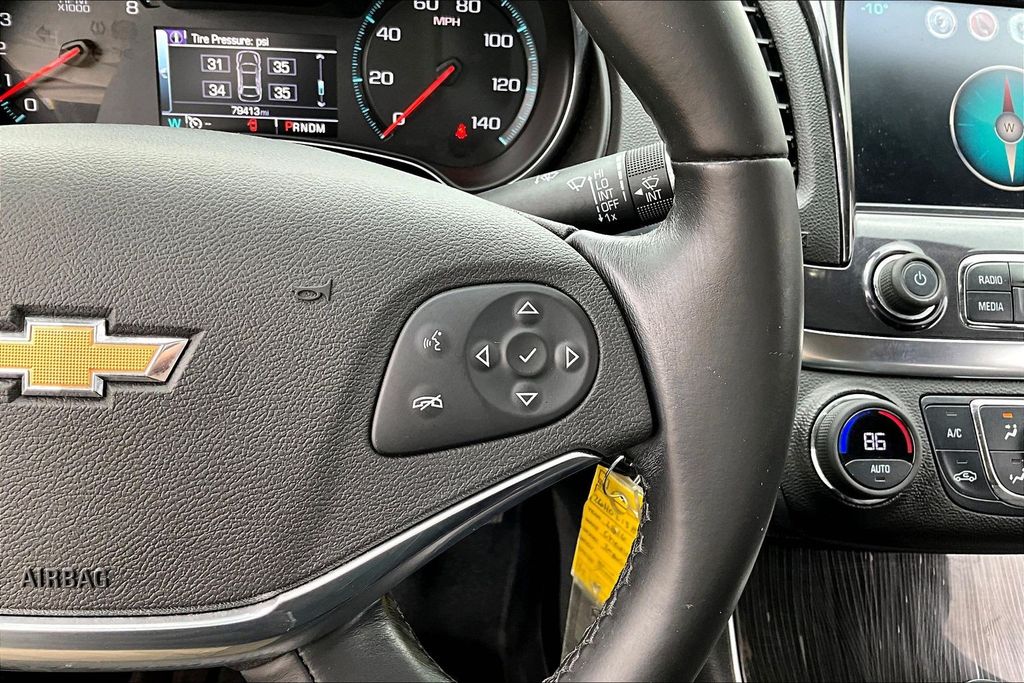 Impala LT 2LT, 4D Sedan, 3.6L V6 DI DOHC, FWD, Blue Velvet Metallic, Jet Black Cloth, 100-Watt 6-Speaker System, 8-Way Power Driver Seat Adjuster, 8" Diagonal Color Infotainment Display, AM/FM radio: SiriusXM, Auto-Dimming Inside Rear-View Mirror, Automatic temperature control, Carpeted Trunk Mat, Convenience Package, Driver Power Lumbar Seat Adjuster, Emergency communication system: OnStar Guidance, Front dual zone A/C, Fully automatic headlights, Heated door mirrors, Power door mirrors, Power driver seat, Preferred Equipment Group 2LT, Premium audio system: Chevrolet MyLink, Premium Carpeted Front & Rear Floor Mats, Premium Cloth/Leatherette Seat Trim, Rear Park Assist, Rear Vision Camera, Remote keyless entry, Remote Vehicle Starter System, Telescoping steering wheel, Tilt steering wheel, Turn signal indicator mirrors, Universal Home Remote.
