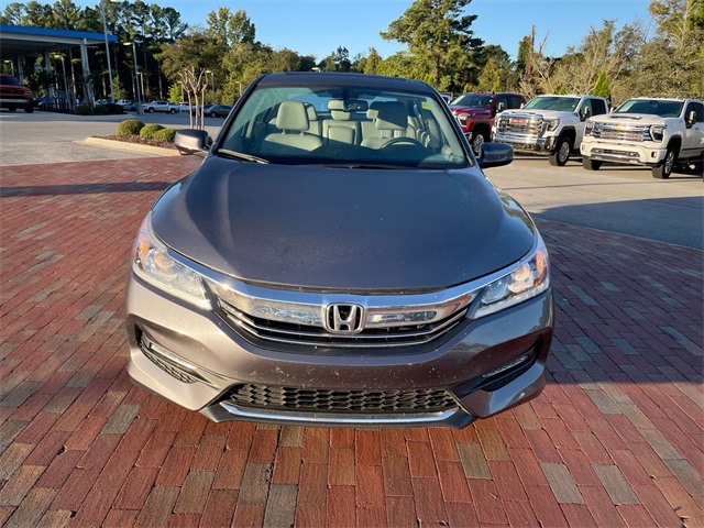 Recent Arrival! 2016 Honda Accord EX-L EX-L Silver 4D Sedan 2.4L I4 DOHC i-VTEC 16V CVT FWD This vehicle comes well equipped with 17" Alloy Wheels, 4-Wheel Disc Brakes, 7 Speakers, ABS brakes, Air Conditioning, Alloy wheels, AM/FM radio: SiriusXM, Apple CarPlay/Android Auto, Auto-dimming Rear-View mirror, Automatic temperature control, Brake assist, Bumpers: body-color, CD player, Compass, Delay-off headlights, Driver door bin, Driver vanity mirror, Dual front impact airbags, Dual front side impact airbags, Electronic Stability Control, Emergency communication system, Exterior Parking Camera Rear, Four wheel independent suspension, Front anti-roll bar, Front Bucket Seats, Front Center Armrest, Front dual zone A/C, Front fog lights, Front reading lights, Fully automatic headlights, Garage door transmitter: HomeLink, Heated door mirrors, Heated Front Bucket Seats, Heated front seats, Illuminated entry, Leather-Trimmed Seats, Low tire pressure warning, Memory seat, Occupant sensing airbag, Outside temperature display, Overhead airbag, Overhead console, Panic alarm, Passenger door bin, Passenger vanity mirror, Power door mirrors, Power driver seat, Power moonroof, Power passenger seat, Power steering, Power windows, Radio data system, Radio: 360-Watt AM/FM/CD Premium Audio System, Rear anti-roll bar, Rear seat center armrest, Rear window defroster, Remote keyless entry, Security system, Speed control, Speed-sensing steering, Speed-Sensitive Wipers, Split folding rear seat, Steering wheel mounted audio controls, Tachometer, Telescoping steering wheel, Tilt steering wheel, Traction control, Trip computer, Turn signal indicator mirrors, and Variably intermittent wipers.
