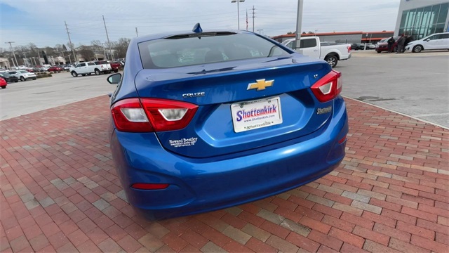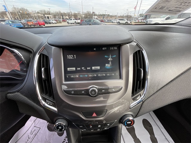 2017 Chevrolet Cruze LT LT Kinetic Blue Metallic 4D Sedan 1.4L 4-Cylinder Turbo DOHC CVVT 6-Speed Automatic FWD This vehicle comes well equipped with Preferred Equipment Group 1SD, 16" Aluminum Wheels, 4-Wheel Disc Brakes, 6 Speaker Audio System Feature, 6 Speakers, ABS brakes, Air Conditioning, Alloy wheels, AM/FM radio: SiriusXM, Apple CarPlay/Android Auto, Brake assist, Bumpers: body-color, Cloth Seat Trim, Compass, Delay-off headlights, Driver 6-Way Manual Seat Adjuster, Driver door bin, Driver vanity mirror, Dual front impact airbags, Dual front side impact airbags, Electronic Stability Control, Emergency communication system: OnStar Guidance, Exterior Parking Camera Rear, Front anti-roll bar, Front Bucket Seats, Front Center Armrest, Front License Plate Bracket, Front Passenger 2-Way Manual Seat Adjuster, Front reading lights, Front wheel independent suspension, Fully automatic headlights, Heated door mirrors, Illuminated entry, Knee airbag, Low tire pressure warning, Occupant sensing airbag, Outside temperature display, Overhead airbag, Panic alarm, Passenger door bin, Passenger vanity mirror, Power door mirrors, Power steering, Power windows, Radio data system, Radio: AM/FM Chevrolet MyLink w/7" Touch-Screen, Rear seat center armrest, Rear side impact airbag, Rear window defroster, Remote keyless entry, Security system, SiriusXM Satellite Radio, Speed control, Split folding rear seat, Steering wheel mounted audio controls, Tachometer, Telescoping steering wheel, Tilt steering wheel, Traction control, Trip computer, Variably intermittent wipers, and Voltmeter.