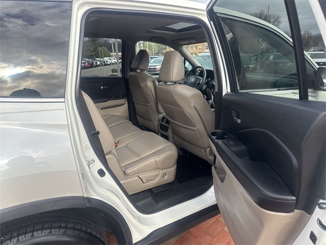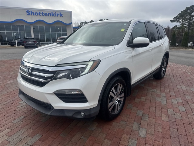 Recent Arrival! 2017 Honda Pilot EX-L EX-L White Diamond Pearl 4D Sport Utility 3.5L V6 24V SOHC i-VTEC 6-Speed Automatic FWD This vehicle comes well equipped with 18" Alloy Wheels, 3rd row seats: split-bench, 4-Wheel Disc Brakes, 4.25 Axle Ratio, 7 Speakers, ABS brakes, Air Conditioning, Alloy wheels, AM/FM radio: SiriusXM, Apple CarPlay/Android Auto, Auto-dimming Rear-View mirror, Automatic temperature control, Brake assist, Bumpers: body-color, Compass, Delay-off headlights, Driver door bin, Driver vanity mirror, Dual front impact airbags, Dual front side impact airbags, Electronic Stability Control, Emergency communication system: HondaLink Assist, Exterior Parking Camera Rear, Four wheel independent suspension, Front anti-roll bar, Front Bucket Seats, Front Center Armrest, Front dual zone A/C, Front fog lights, Front reading lights, Fully automatic headlights, Garage door transmitter: HomeLink, Heated Front Bucket Seats, Heated front seats, Illuminated entry, Leather Shift Knob, Leather-Trimmed Seats, Low tire pressure warning, Occupant sensing airbag, Outside temperature display, Overhead airbag, Overhead console, Panic alarm, Passenger door bin, Passenger vanity mirror, Power door mirrors, Power driver seat, Power Liftgate, Power moonroof, Power passenger seat, Power steering, Power windows, Radio data system, Radio: AM/FM Audio System, Rear air conditioning, Rear anti-roll bar, Rear reading lights, Rear seat center armrest, Rear window defroster, Rear window wiper, Remote keyless entry, Security system, SiriusXM Radio, Speed control, Speed-sensing steering, Speed-Sensitive Wipers, Split folding rear seat, Spoiler, Steering wheel mounted audio controls, Tachometer, Telescoping steering wheel, Tilt steering wheel, Traction control, Trip computer, and Variably intermittent wipers.