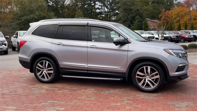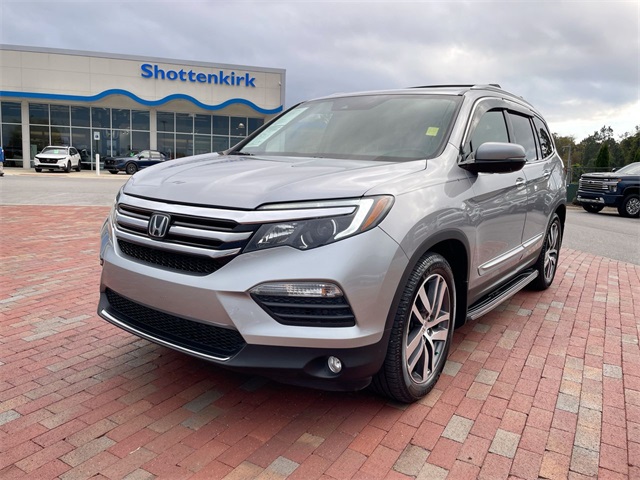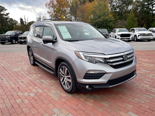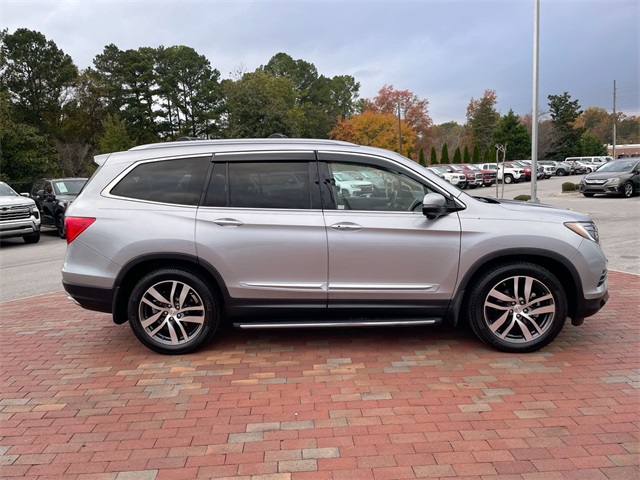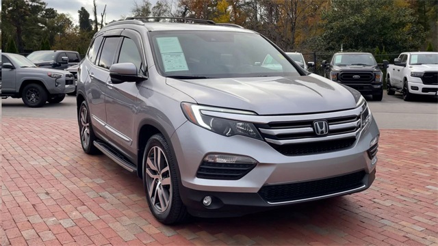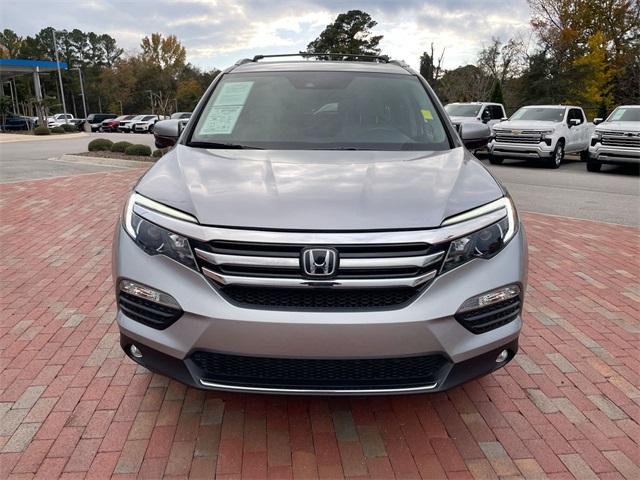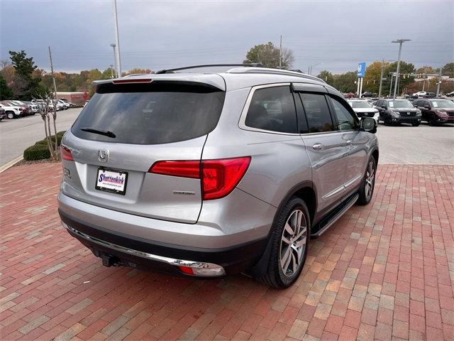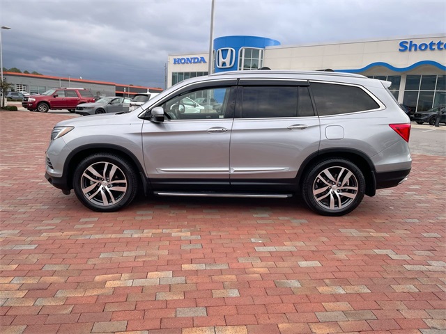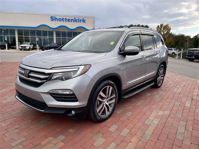 Recent Arrival! CARFAX One-Owner. 2017 Honda Pilot Touring Touring Lunar Silver Metallic 4D Sport Utility 3.5L V6 24V SOHC i-VTEC 9-Speed Automatic FWD This vehicle comes well equipped with 10 Speakers, 20" Alloy Wheels, 3rd row seats: split-bench, 4-Wheel Disc Brakes, 4.334 Axle Ratio, A/V remote, ABS brakes, Air Conditioning, Alloy wheels, AM/FM radio: SiriusXM, Apple CarPlay/Android Auto, Auto-dimming Rear-View mirror, Automatic temperature control, Brake assist, Bumpers: body-color, Compass, Delay-off headlights, Driver door bin, Driver vanity mirror, Dual front impact airbags, Dual front side impact airbags, Electronic Stability Control, Emergency communication system: HondaLink Assist, Exterior Parking Camera Rear, Four wheel independent suspension, Front anti-roll bar, Front Bucket Seats, Front Center Armrest, Front dual zone A/C, Front fog lights, Front reading lights, Fully automatic headlights, Garage door transmitter: HomeLink, Headphones, Heated Front Bucket Seats, Heated front seats, Honda Satellite-Linked Navigation System, Illuminated entry, Leather Shift Knob, Leather-Trimmed Seats, Low tire pressure warning, Memory seat, Navigation System, Occupant sensing airbag, Outside temperature display, Overhead airbag, Overhead console, Panic alarm, Passenger door bin, Passenger vanity mirror, Power door mirrors, Power driver seat, Power Liftgate, Power moonroof, Power passenger seat, Power steering, Power windows, Radio data system, Radio: AM/FM Premium Audio System, Rear air conditioning, Rear anti-roll bar, Rear audio controls, Rear reading lights, Rear seat center armrest, Rear window defroster, Rear window wiper, Remote keyless entry, Roof rack: rails only, Security system, SiriusXM Radio, Speed control, Speed-sensing steering, Speed-Sensitive Wipers, Split folding rear seat, Spoiler, Steering wheel mounted audio controls, Tachometer, Telescoping steering wheel, Tilt steering wheel, Traction control, Trip computer, Turn signal indicator mirrors, and Variably intermittent wipers.