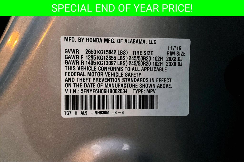 * 2017 IIHS Top Safety Pick+ (When equipped with Honda Sensing and specific headlights) * 2017 KBB.com 10 Best Certified Pre-Owned 3-Row SUVs Under $30,000 * 2017 KBB.com 12 Best Family Cars * 2017 KBB.com Best Buy Awards * 2017 KBB.com 10 Most Awarded Brands * 2017 KBB.com Brand Image Awards