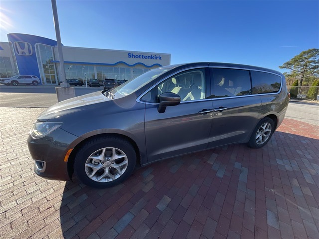 CARFAX One-Owner. 2018 Chrysler Pacifica Touring Plus Touring Plus Granite Crystal Metallic Clearcoat 4D Passenger Van 3.6L V6 24V VVT 9-Speed Automatic FWD This vehicle comes well equipped with Quick Order Package 27W, SafetyTec (DISC) (Blind Spot & Cross Path Detection and ParkSense Rear Park Assist w/Stop), Tire & Wheel Group (18" x 7.5" Painted Aluminum Wheels and Nexen Brand Tires), Trailer Tow Group - 3,600 lb Rating (220 Amp Alternator, 7 & 4 Pin Trailer Tow Wiring Harness, Heavy-Duty Radiator, Hitch w/2" Receiver, and Trailer Sway Damping), 1-Year SiriusXM Guardian Trial, 17" x 7.0" Aluminum Wheels, 3.25 Axle Ratio, 3rd row seats: split-bench, 4-Wheel Disc Brakes, 5-Year SiriusXM Traffic Service, 5-Year SiriusXM Travel Link Service, 6 Speakers, 8-Passenger Seating, 8.4" Touchscreen Display, ABS brakes, Air Conditioning, Alloy wheels, AM/FM radio: SiriusXM, Apple CarPlay, Apple CarPlay/Android Auto, Automatic temperature control, Brake assist, Bumpers: body-color, Cloth Bucket Seats, Compass, Delay-off headlights, Disassociated Touchscreen Display, Driver door bin, Driver vanity mirror, Driver's Seat Mounted Armrest, Dual front impact airbags, Dual front side impact airbags, Electronic Stability Control, For Details, Visit DriveUconnect.com, Four wheel independent suspension, Front anti-roll bar, Front Bucket Seats, Front dual zone A/C, Front fog lights, Front reading lights, Fully automatic headlights, Garage door transmitter, Google Android Auto, GPS Antenna Input, GPS Navigation, HD Radio, Heated door mirrors, Illuminated entry, Integrated Voice Command w/Bluetooth, KeySense, Knee airbag, Low tire pressure warning, Manufacturer's Statement of Origin, Occupant sensing airbag, Outside temperature display, Overhead airbag, Overhead console, Panic alarm, ParkView Rear Back-Up Camera, Passenger door bin, Passenger seat mounted armrest, Passenger vanity mirror, Power door mirrors, Power driver seat, Power Liftgate, Power steering, Power windows, Radio data system, Radio: Uconnect 4 w/7" Display, Radio: Uconnect 4C Nav w/8.4" Display, Rear air conditioning, Rear reading lights, Rear window defroster, Rear window wiper, Reclining 3rd row seat, Remote keyless entry, Security system, Single Rear Overhead DVD System, SiriusXM Satellite Radio, SiriusXM Traffic Plus, SiriusXM Travel Link, Speed control, Split folding rear seat, Spoiler, Steering wheel mounted audio controls, Tachometer, Telescoping steering wheel, Tilt steering wheel, Toffee Seats, Touring Suspension, Traction control, Trip computer, USB Host Flip, Variably intermittent wipers, and VoltmeteR.
