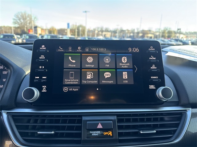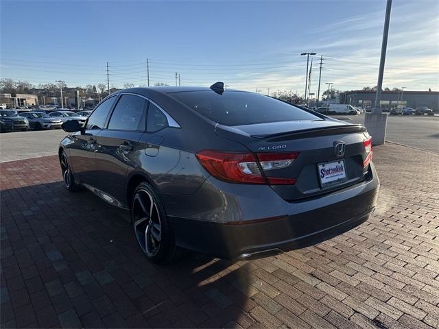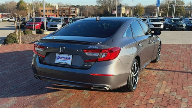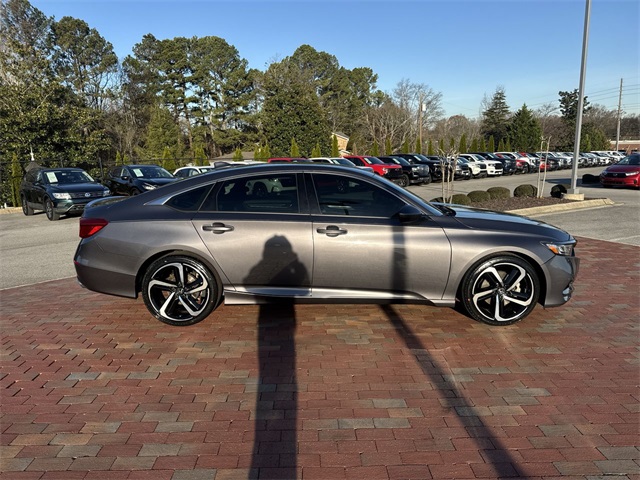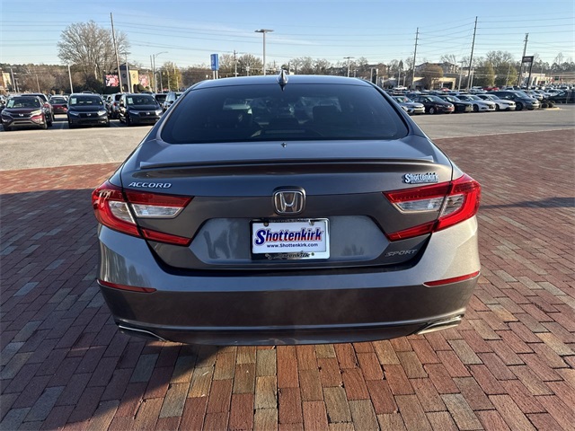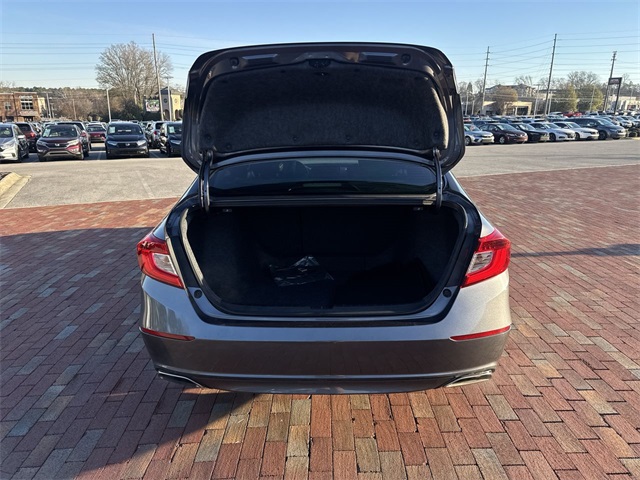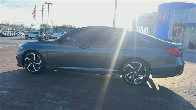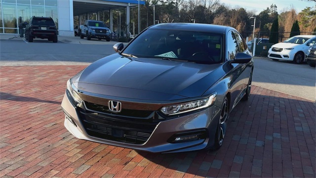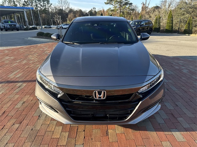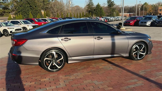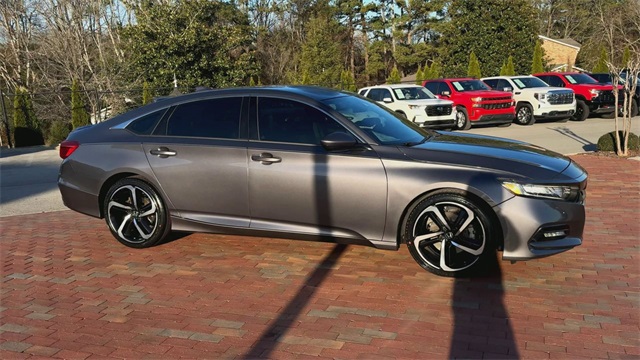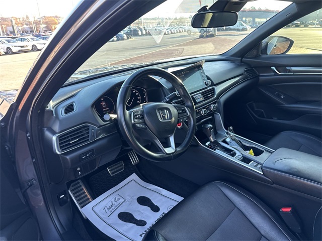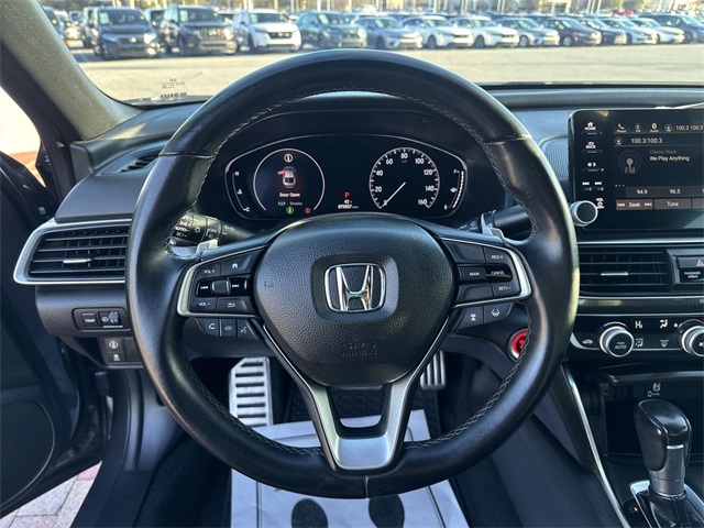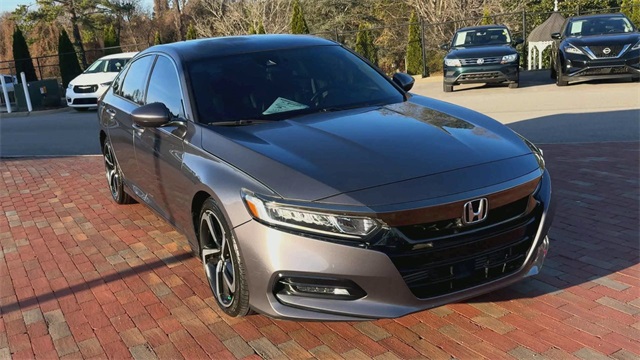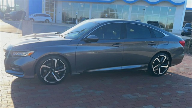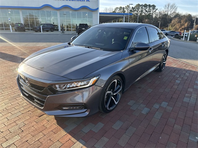 CARFAX One-Owner. 2018 Honda Accord Sport Sport Modern Steel Metallic 4D Sedan 1.5T I4 DOHC 16V Turbocharged VTEC CVT FWD This vehicle comes well equipped with 4-Wheel Disc Brakes, 8 Speakers, ABS brakes, Air Conditioning, Alloy wheels, AM/FM radio, Apple CarPlay/Android Auto, Auto High-beam Headlights, Automatic temperature control, Brake assist, Bumpers: body-color, Cloth Seat Trim, Delay-off headlights, Driver door bin, Driver vanity mirror, Dual front impact airbags, Dual front side impact airbags, Electronic Stability Control, Emergency communication system: HondaLink, Exterior Parking Camera Rear, Four wheel independent suspension, Front anti-roll bar, Front Bucket Seats, Front Center Armrest, Front dual zone A/C, Front fog lights, Front reading lights, Fully automatic headlights, Illuminated entry, Knee airbag, Leather Shift Knob, Leather steering wheel, Low tire pressure warning, Occupant sensing airbag, Outside temperature display, Overhead airbag, Overhead console, Panic alarm, Passenger door bin, Passenger vanity mirror, Power door mirrors, Power driver seat, Power steering, Power windows, Radio data system, Radio: 180-Watt AM/FM Audio System, Rear anti-roll bar, Rear seat center armrest, Rear window defroster, Remote keyless entry, Security system, Speed control, Speed-sensing steering, Speed-Sensitive Wipers, Split folding rear seat, Spoiler, Steering wheel mounted audio controls, Tachometer, Telescoping steering wheel, Tilt steering wheel, Traction control, Trip computer, Variably intermittent wipers, and Wheels: 19" Machine-Finished Alloy w/Black Inserts.