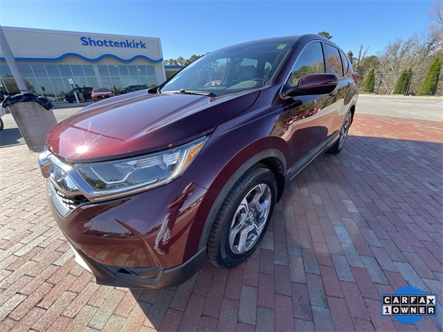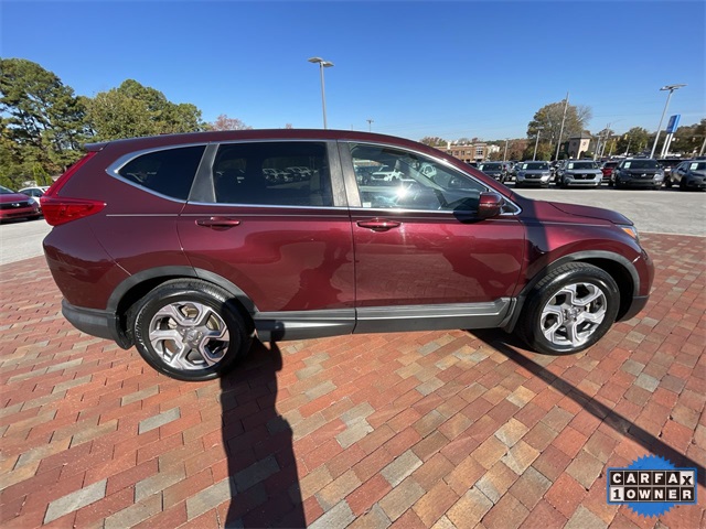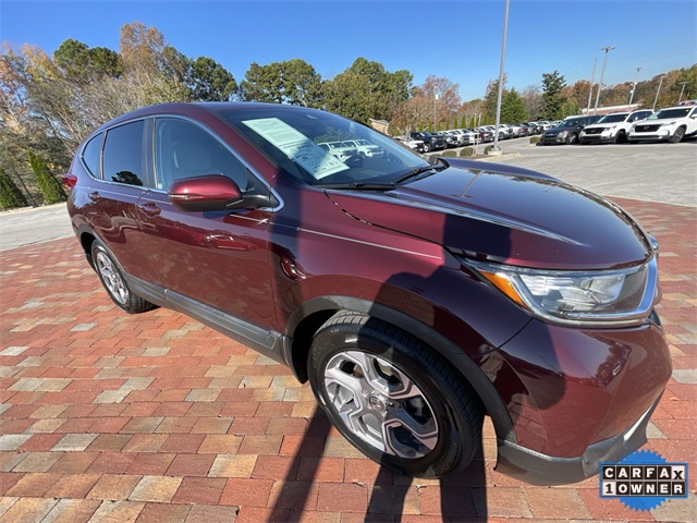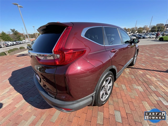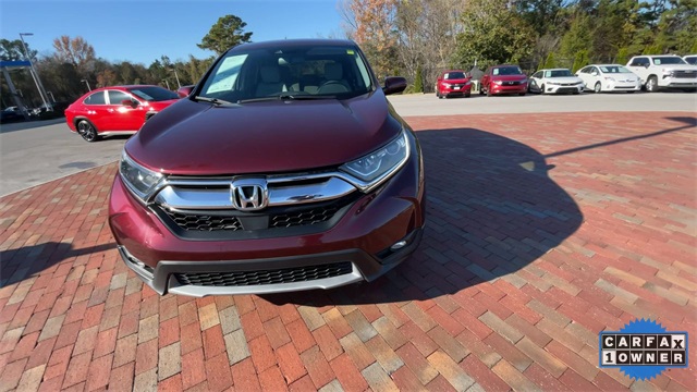 CARFAX One-Owner. 2018 Honda CR-V EX-L EX-L Basque Red Pearl II 4D Sport Utility 1.5L I4 DOHC 16V CVT FWD This vehicle comes well equipped with 18" Alloy Wheels, 4-Wheel Disc Brakes, 5.64 Axle Ratio, 8 Speakers, ABS brakes, Air Conditioning, Alloy wheels, AM/FM radio: SiriusXM, Apple CarPlay/Android Auto, Auto High-beam Headlights, Auto-dimming Rear-View mirror, Automatic temperature control, Blind Spot Information (BSI) System warning, Brake assist, Bumpers: body-color, Compass, Delay-off headlights, Driver door bin, Driver vanity mirror, Dual front impact airbags, Dual front side impact airbags, Electronic Stability Control, Exterior Parking Camera Rear, Four wheel independent suspension, Front anti-roll bar, Front Bucket Seats, Front Center Armrest, Front dual zone A/C, Front fog lights, Front reading lights, Fully automatic headlights, Garage door transmitter: HomeLink, Heated door mirrors, Heated Front Bucket Seats, Heated front seats, Illuminated entry, Leather Seat Trim, Leather Shift Knob, Low tire pressure warning, Memory seat, Occupant sensing airbag, Outside temperature display, Overhead airbag, Overhead console, Panic alarm, Passenger door bin, Passenger vanity mirror, Power door mirrors, Power driver seat, Power Liftgate, Power moonroof, Power passenger seat, Power steering, Power windows, Radio data system, Radio: AM/FM/SiriusXM Audio System, Rear anti-roll bar, Rear seat center armrest, Rear window defroster, Rear window wiper, Remote keyless entry, Security system, Speed control, Speed-sensing steering, Speed-Sensitive Wipers, Split folding rear seat, Spoiler, Steering wheel mounted audio controls, Tachometer, Telescoping steering wheel, Tilt steering wheel, Traction control, Trip computer, Turn signal indicator mirrors, and Variably intermittent wipers.