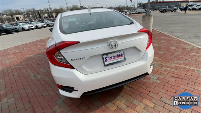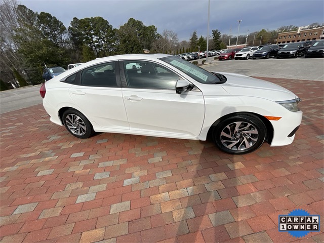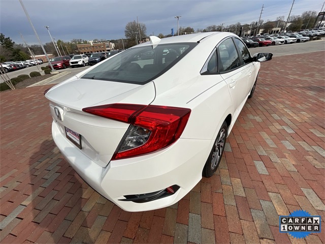 CARFAX One-Owner. 2018 Honda Civic EX EX Taffeta White 4D Sedan 2.0L I4 DOHC 16V i-VTEC CVT FWD This vehicle comes well equipped with 16" Alloy Wheels, 4-Wheel Disc Brakes, 8 Speakers, ABS brakes, Air Conditioning, Alloy wheels, AM/FM radio, Apple CarPlay/Android Auto, Automatic temperature control, Brake assist, Bumpers: body-color, Cloth Seat Trim, Compass, Delay-off headlights, Driver door bin, Driver vanity mirror, Dual front impact airbags, Dual front side impact airbags, Electronic Stability Control, Emergency communication system: HondaLink, Exterior Parking Camera Rear, Four wheel independent suspension, Front anti-roll bar, Front Bucket Seats, Front Center Armrest, Front reading lights, Fully automatic headlights, Heated door mirrors, Illuminated entry, Low tire pressure warning, Occupant sensing airbag, Outside temperature display, Overhead airbag, Panic alarm, Passenger door bin, Passenger vanity mirror, Power door mirrors, Power moonroof, Power steering, Power windows, Radio data system, Radio: 180-Watt AM/FM/HD/SiriusXM Audio System, Rear anti-roll bar, Rear seat center armrest, Rear window defroster, Reclining Front Bucket Seats, Remote keyless entry, Security system, Speed control, Speed-sensing steering, Speed-Sensitive Wipers, Split folding rear seat, Steering wheel mounted audio controls, Tachometer, Telescoping steering wheel, Tilt steering wheel, Traction control, Trip computer, and Variably intermittent wipers.