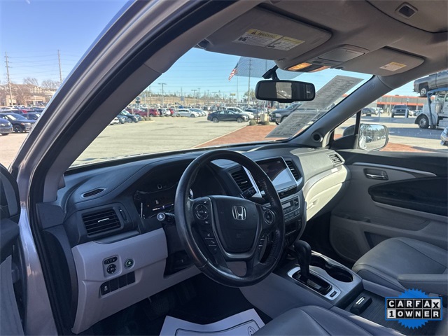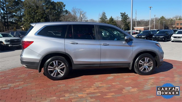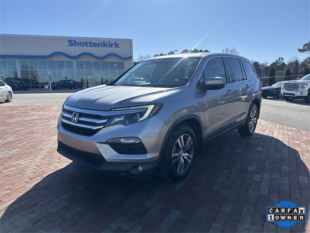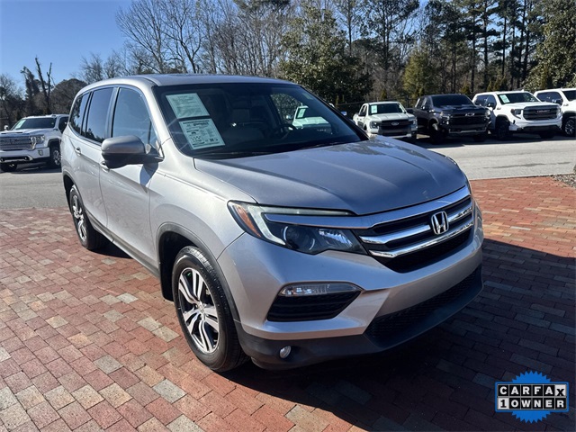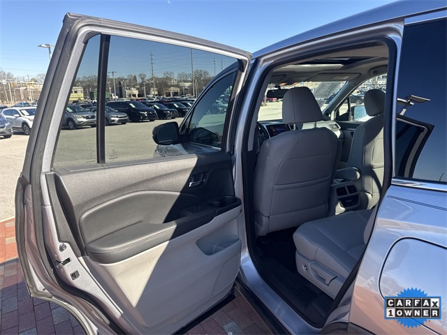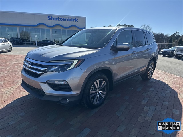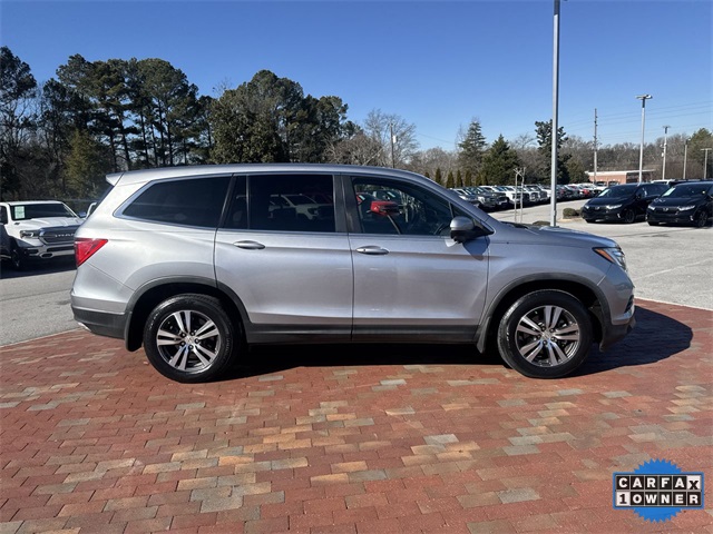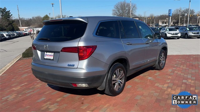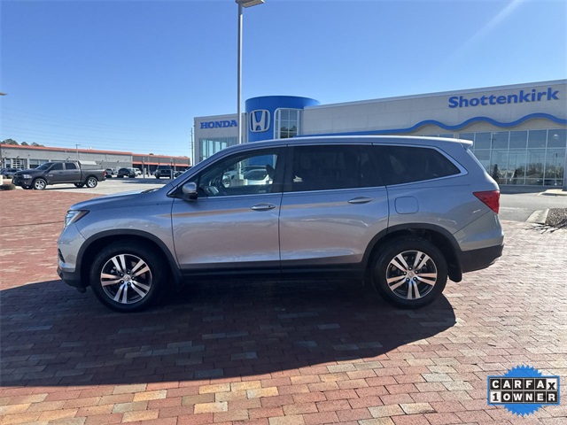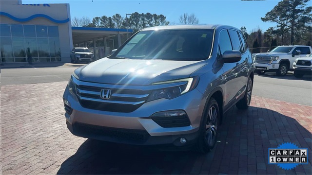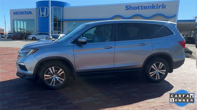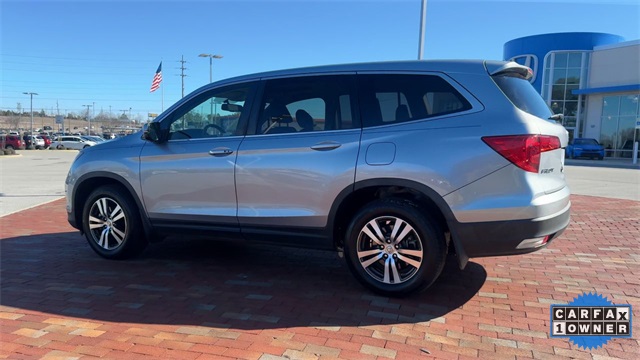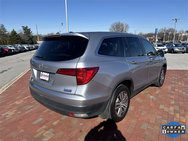 CARFAX One-Owner. 2018 Honda Pilot EX-L w/Navigation EX-L Lunar Silver Metallic 4D Sport Utility w/Navigation 3.5L V6 24V SOHC i-VTEC 6-Speed Automatic FWD This vehicle comes well equipped with 18" Alloy Wheels, 3rd row seats: split-bench, 4-Wheel Disc Brakes, 4.25 Axle Ratio, 7 Speakers, ABS brakes, Air Conditioning, Alloy wheels, AM/FM radio: SiriusXM, Apple CarPlay/Android Auto, Auto-dimming Rear-View mirror, Automatic temperature control, Brake assist, Bumpers: body-color, Compass, Delay-off headlights, Driver door bin, Driver vanity mirror, Dual front impact airbags, Dual front side impact airbags, Electronic Stability Control, Exterior Parking Camera Rear, Four wheel independent suspension, Front anti-roll bar, Front Bucket Seats, Front Center Armrest, Front dual zone A/C, Front fog lights, Front reading lights, Fully automatic headlights, Garage door transmitter: HomeLink, Heated Front Bucket Seats, Heated front seats, Illuminated entry, Leather Shift Knob, Leather-Trimmed Seats, Low tire pressure warning, Navigation System, Occupant sensing airbag, Outside temperature display, Overhead airbag, Overhead console, Panic alarm, Passenger door bin, Passenger vanity mirror, Power door mirrors, Power driver seat, Power Liftgate, Power moonroof, Power passenger seat, Power steering, Power windows, Radio data system, Radio: AM/FM Audio System, Rear air conditioning, Rear anti-roll bar, Rear reading lights, Rear seat center armrest, Rear window defroster, Rear window wiper, Remote keyless entry, Security system, SiriusXM Radio, Speed control, Speed-sensing steering, Speed-Sensitive Wipers, Split folding rear seat, Spoiler, Steering wheel mounted audio controls, Tachometer, Telescoping steering wheel, Tilt steering wheel, Traction control, Trip computer, and Variably intermittent wipers.