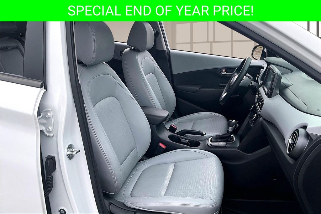 Apple CarPlay, Android Auto, Back Up Camera, Heated Seats, Low Miles, Low Payments, Navigation, Power Drivers Seat, Parking Sensors, Sunroof, Kona Ultimate, I4, 7-Speed Automatic, FWD, Chalk White, Black Leather, 18" x 7.5" Alloy Wheels, 8-Way Power Driver Seat, Apple CarPlay & Android Auto, Auto High-beam Headlights, Auto-dimming Rear-View mirror, Automatic temperature control, Emergency communication system: Blue Link, Exterior Parking Camera Rear, Front fog lights, Garage door transmitter: HomeLink, Heads-Up Display, Heated door mirrors, Heated front seats, Leather Seat Trim, Navigation System, Option Group 01, Power door mirrors, Power driver seat, Power moonroof, Radio: AM/FM/HD Radio/SiriusXM Infinity Premium, Rain sensing wipers, Rear Parking Sensors, Remote keyless entry, Spoiler, Telescoping steering wheel, Tilt steering wheel, Turn signal indicator mirrors.
