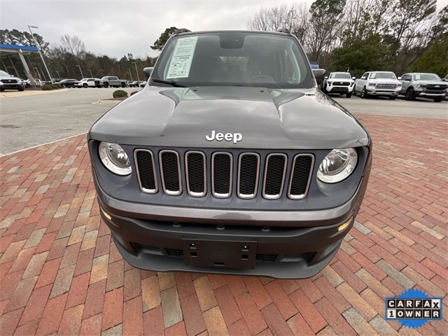 CARFAX One-Owner. 2018 Jeep Renegade Latitude Latitude Granite Crystal Metallic Clearcoat 4D Sport Utility 2.4L I4 MultiAir 9-Speed 948TE Automatic FWD This vehicle comes well equipped with Passive Entry Remote Start Package (Passive Entry/Keyless Go), Quick Order Package 27J, 16" x 6.5" Aluminum Wheels, 17" x 7.0" Aluminum Wheels, 4-Wheel Disc Brakes, 6 Speakers, ABS brakes, Air Conditioning, Alloy wheels, AM/FM radio: SiriusXM, Anti-whiplash front head restraints, Apple CarPlay/Android Auto, Automatic temperature control, Brake assist, Compass, Delay-off headlights, Driver door bin, Driver vanity mirror, Dual front impact airbags, Dual front side impact airbags, Electronic Stability Control, Four wheel independent suspension, Front anti-roll bar, Front Bucket Seats, Front Center Armrest, Front dual zone A/C, Front fog lights, Front reading lights, Fully automatic headlights, Heated door mirrors, Illuminated entry, Knee airbag, Leather steering wheel, Low tire pressure warning, Normal Duty Suspension, Occupant sensing airbag, Outside temperature display, Overhead airbag, Overhead console, Panic alarm, ParkView Rear Back-Up Camera, Passenger door bin, Passenger vanity mirror, Power door mirrors, Power steering, Power windows, Premium Cloth Bucket Seats, Radio data system, Radio: Uconnect 4 w/7" Display, Rear anti-roll bar, Rear window defroster, Rear window wiper, Remote keyless entry, Roof rack: rails only, Speed control, Split folding rear seat, Spoiler, Steering wheel mounted audio controls, Tachometer, Telescoping steering wheel, Tilt steering wheel, Traction control, Trip computer, Variably intermittent wipers, and Voltmeter.