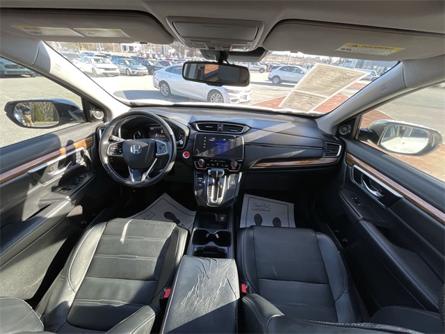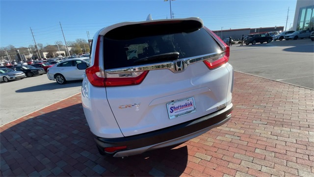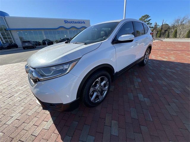 2019 Honda CR-V EX-L EX-L Platinum White Pearl 4D Sport Utility 1.5L I4 DOHC 16V CVT FWD This vehicle comes well equipped with 18" Alloy Wheels, 4-Wheel Disc Brakes, 5.64 Axle Ratio, 8 Speakers, ABS brakes, Air Conditioning, Alloy wheels, AM/FM radio: SiriusXM, Apple CarPlay/Android Auto, Auto High-beam Headlights, Auto-dimming Rear-View mirror, Automatic temperature control, Blind Spot Information (BSI) System warning, Brake assist, Bumpers: body-color, Compass, Delay-off headlights, Driver door bin, Driver vanity mirror, Dual front impact airbags, Dual front side impact airbags, Electronic Stability Control, Exterior Parking Camera Rear, Forward collision: Collision Mitigation Braking System (CMBS) + FCW mitigation, Four wheel independent suspension, Front anti-roll bar, Front Bucket Seats, Front Center Armrest, Front dual zone A/C, Front fog lights, Front reading lights, Fully automatic headlights, Garage door transmitter: HomeLink, Heated door mirrors, Heated Front Bucket Seats, Heated front seats, Illuminated entry, Lane departure: Lane Keeping Assist System (LKAS) active, Leather Seat Trim, Leather Shift Knob, Low tire pressure warning, Memory seat, Occupant sensing airbag, Outside temperature display, Overhead airbag, Overhead console, Panic alarm, Passenger door bin, Passenger vanity mirror, Power door mirrors, Power driver seat, Power Liftgate, Power moonroof, Power passenger seat, Power steering, Power windows, Radio data system, Radio: AM/FM/SiriusXM Audio System, Rear anti-roll bar, Rear seat center armrest, Rear window defroster, Rear window wiper, Remote keyless entry, Security system, Speed control, Speed-sensing steering, Speed-Sensitive Wipers, Split folding rear seat, Spoiler, Steering wheel mounted audio controls, Tachometer, Telescoping steering wheel, Tilt steering wheel, Traction control, Trip computer, Turn signal indicator mirrors, and Variably intermittent wipers.