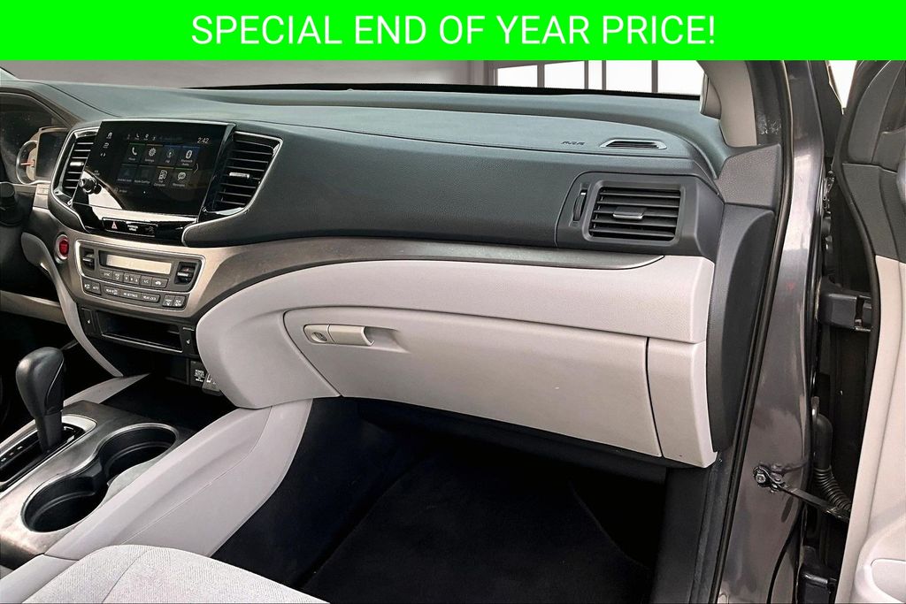 Apple CarPlay, Android Auto, Back Up Camera, Heated Seats, Local Trade-In, Power Drivers Seat, Remote Start, Sunroof, Pilot EX, 3.5L V6 24V SOHC i-VTEC, 6-Speed Automatic, AWD, Gray, Gray w/Cloth Seat Trim, 18" Machine-Finished Alloy Wheels, 3rd row seats: split-bench, 4-Wheel Disc Brakes, Air Conditioning, AM/FM radio: SiriusXM, Apple CarPlay/Android Auto, Automatic temperature control, Blind Spot Information (BSI) System warning, Cloth Seat Trim, Emergency communication system: HondaLink Assist, Exterior Parking Camera Rear, Forward collision: Collision Mitigation Braking System (CMBS) + FCW mitigation, Four wheel independent suspension, Front dual zone A/C, Front fog lights, Fully automatic headlights, Heated door mirrors, Heated Front Bucket Seats, Lane departure: Lane Keeping Assist System (LKAS) active, Low tire pressure warning, Outside temperature display, Power door mirrors, Power driver seat, Radio: AM/FM Audio System, Reclining 3rd row seat, Remote keyless entry, Spoiler, Steering wheel mounted audio controls, Telescoping steering wheel, Tilt steering wheel, Turn signal indicator mirrors.