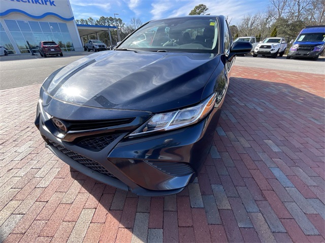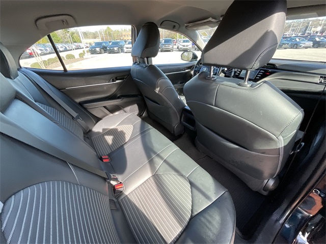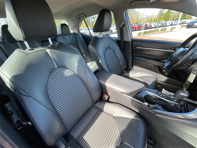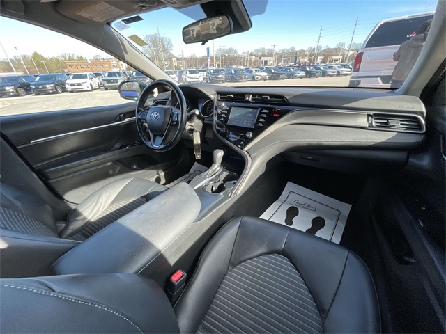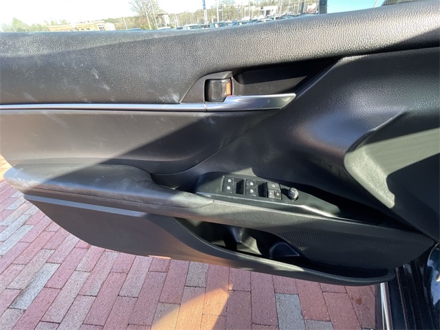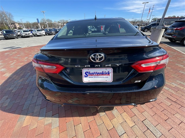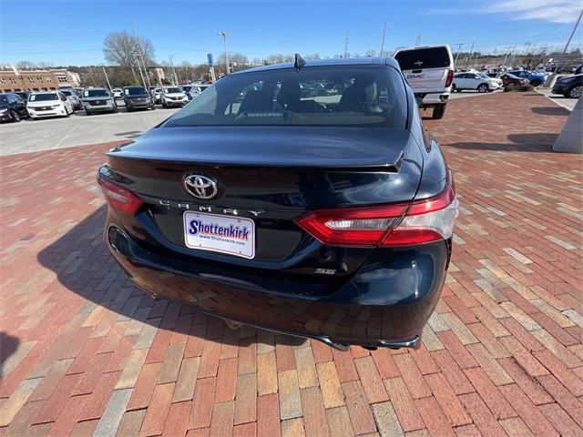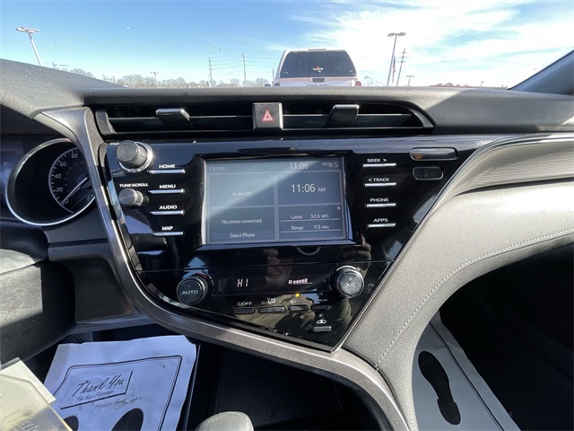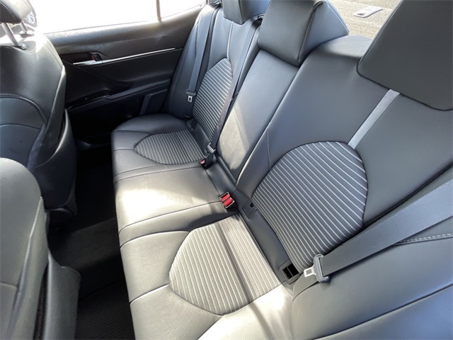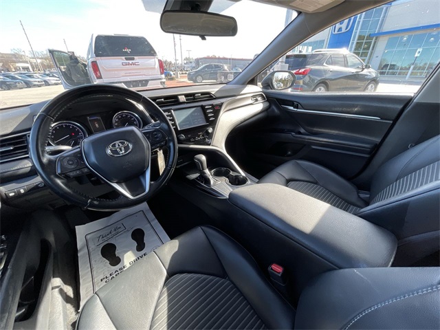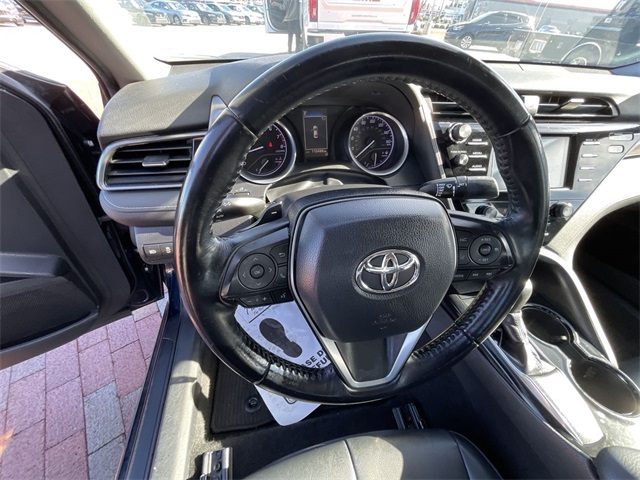 2019 Toyota Camry SE SE Midnight Black Metallic 4D Sedan 2.5L I4 DOHC 16V 8-Speed Automatic FWD This vehicle comes well equipped with ABS brakes, Active Cruise Control, Alloy wheels, Electronic Stability Control, Illuminated entry, Low tire pressure warning, Navigation System, Remote keyless entry, and Traction control ABS brakes, Active Cruise Control, Alloy wheels, Electronic Stability Control, Illuminated entry, Low tire pressure warning, Navigation System, Remote keyless entry, Traction control, 4-Wheel Disc Brakes, 6 Speakers, Air Conditioning, AM/FM radio, Apple CarPlay, Auto High-beam Headlights, Automatic temperature control, Brake assist, Bumpers: body-color, Delay-off headlights, Driver door bin, Driver vanity mirror, Dual front impact airbags, Dual front side impact airbags, Emergency communication system: Safety Connect, Exterior Parking Camera Rear, Fabric Seat Trim w/SofTex, Four wheel independent suspension, Front anti-roll bar, Front Bucket Seats, Front Bucket Sport Seats, Front Center Armrest, Front reading lights, Fully automatic headlights, Knee airbag, Leather Shift Knob, Occupant sensing airbag, Outside temperature display, Overhead airbag, Overhead console, Panic alarm, Passenger door bin, Passenger vanity mirror, Power door mirrors, Power driver seat, Power steering, Power windows, Radio data system, Radio: Entune 3.0 Audio w/App Suite, Rear anti-roll bar, Rear reading lights, Rear seat center armrest, Rear side impact airbag, Rear window defroster, Security system, Speed control, Speed-sensing steering, Split folding rear seat, Spoiler, Sport steering wheel, Steering wheel mounted audio controls, Tachometer, Telescoping steering wheel, Tilt steering wheel, Trip computer, Variably intermittent wipers, and Wheels: 8.0J x 18" Black Machined-Finish Alloy.