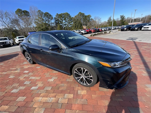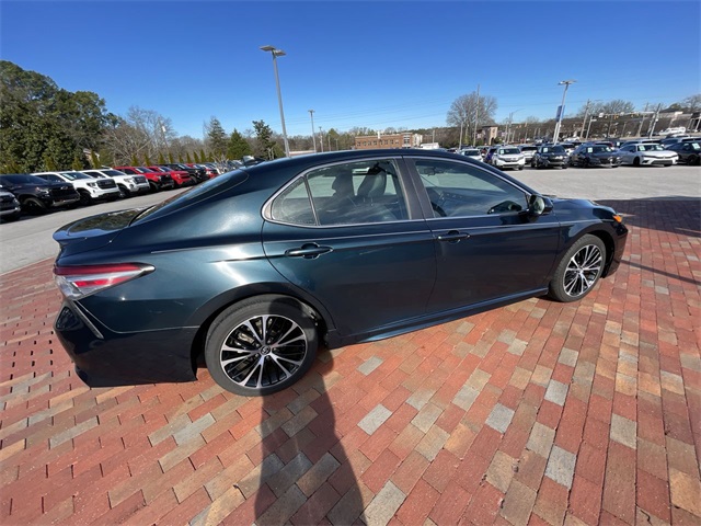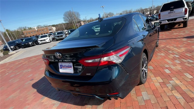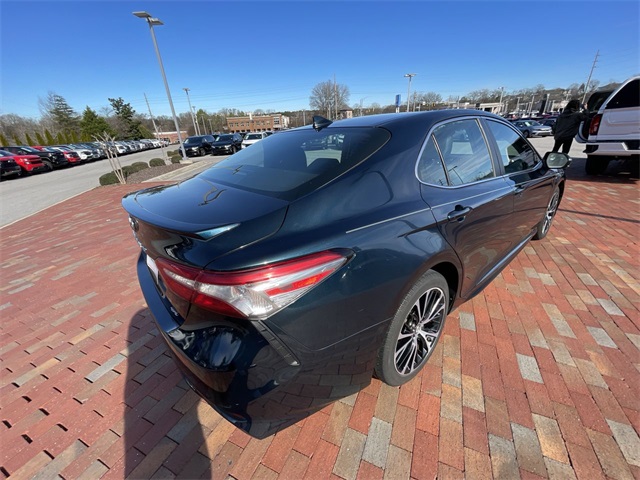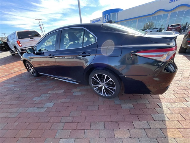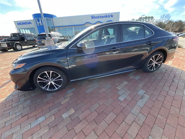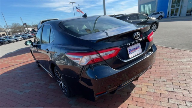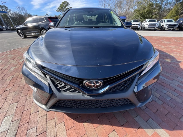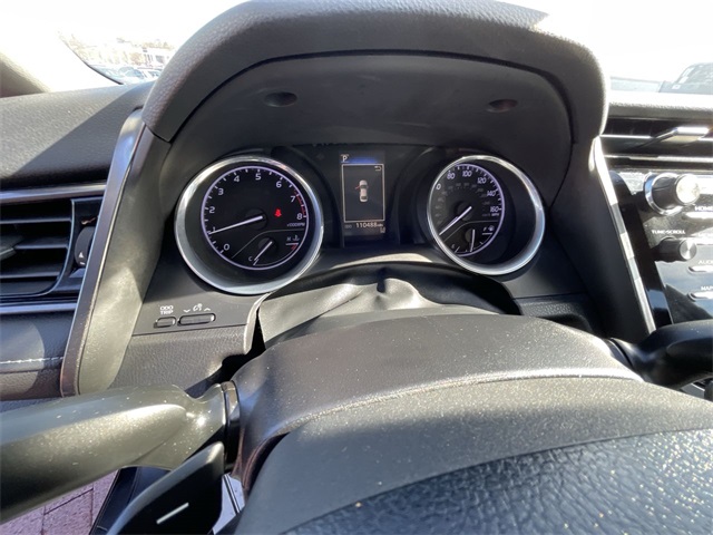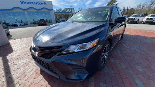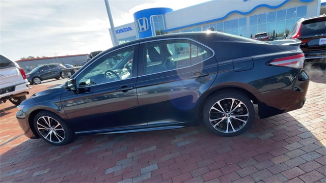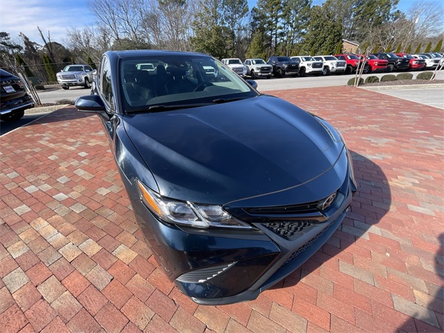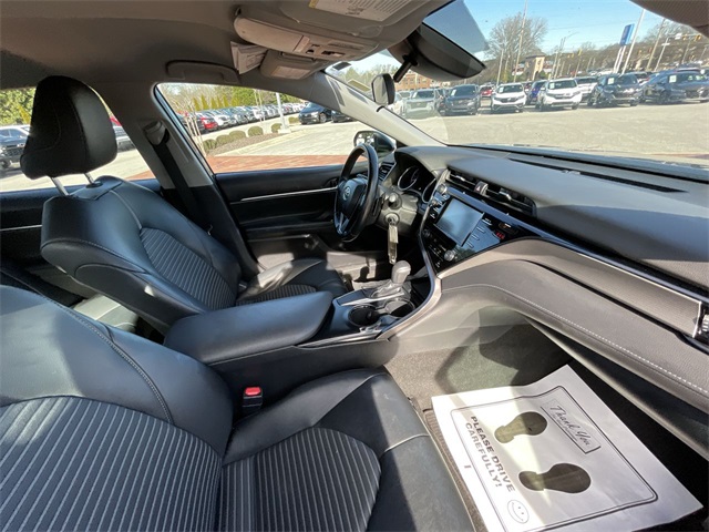 2019 Toyota Camry SE SE Midnight Black Metallic 4D Sedan 2.5L I4 DOHC 16V 8-Speed Automatic FWD This vehicle comes well equipped with ABS brakes, Active Cruise Control, Alloy wheels, Electronic Stability Control, Illuminated entry, Low tire pressure warning, Navigation System, Remote keyless entry, and Traction control ABS brakes, Active Cruise Control, Alloy wheels, Electronic Stability Control, Illuminated entry, Low tire pressure warning, Navigation System, Remote keyless entry, Traction control, 4-Wheel Disc Brakes, 6 Speakers, Air Conditioning, AM/FM radio, Apple CarPlay, Auto High-beam Headlights, Automatic temperature control, Brake assist, Bumpers: body-color, Delay-off headlights, Driver door bin, Driver vanity mirror, Dual front impact airbags, Dual front side impact airbags, Emergency communication system: Safety Connect, Exterior Parking Camera Rear, Fabric Seat Trim w/SofTex, Four wheel independent suspension, Front anti-roll bar, Front Bucket Seats, Front Bucket Sport Seats, Front Center Armrest, Front reading lights, Fully automatic headlights, Knee airbag, Leather Shift Knob, Occupant sensing airbag, Outside temperature display, Overhead airbag, Overhead console, Panic alarm, Passenger door bin, Passenger vanity mirror, Power door mirrors, Power driver seat, Power steering, Power windows, Radio data system, Radio: Entune 3.0 Audio w/App Suite, Rear anti-roll bar, Rear reading lights, Rear seat center armrest, Rear side impact airbag, Rear window defroster, Security system, Speed control, Speed-sensing steering, Split folding rear seat, Spoiler, Sport steering wheel, Steering wheel mounted audio controls, Tachometer, Telescoping steering wheel, Tilt steering wheel, Trip computer, Variably intermittent wipers, and Wheels: 8.0J x 18" Black Machined-Finish Alloy.