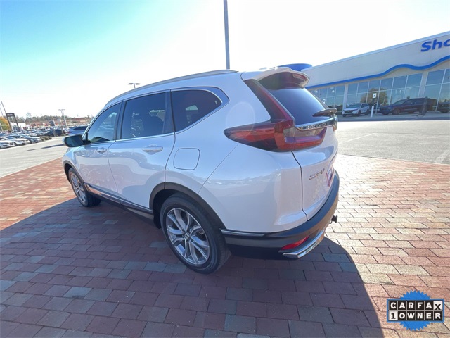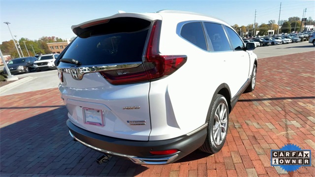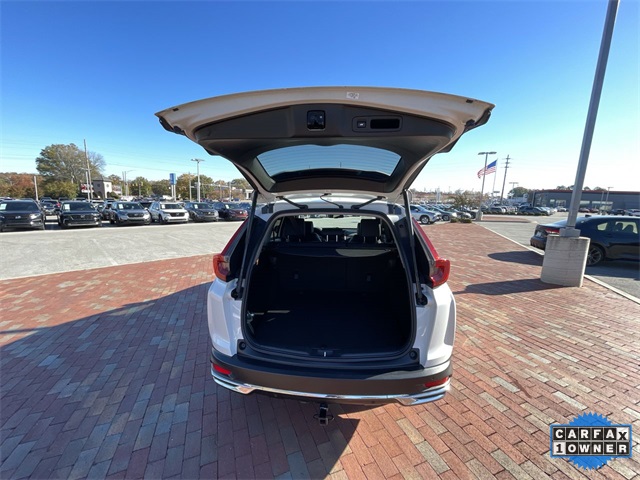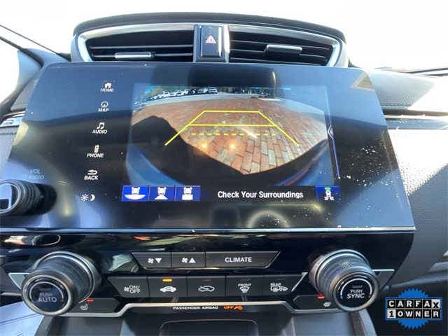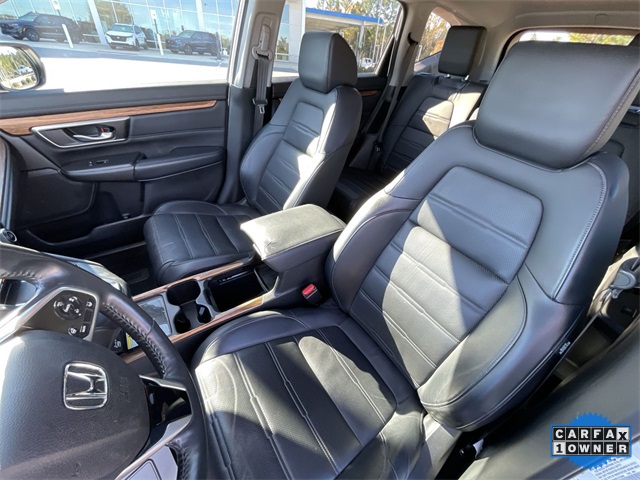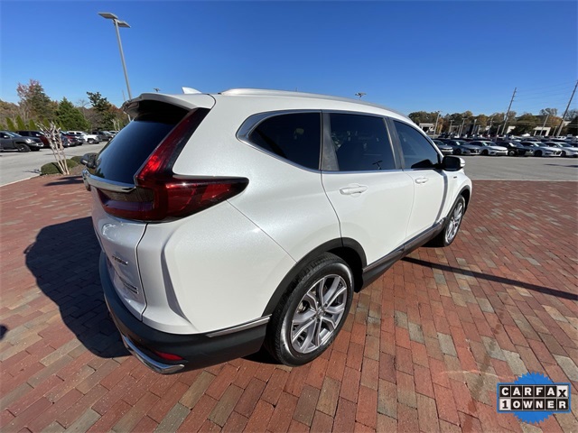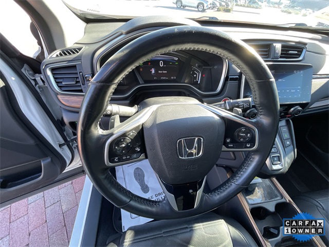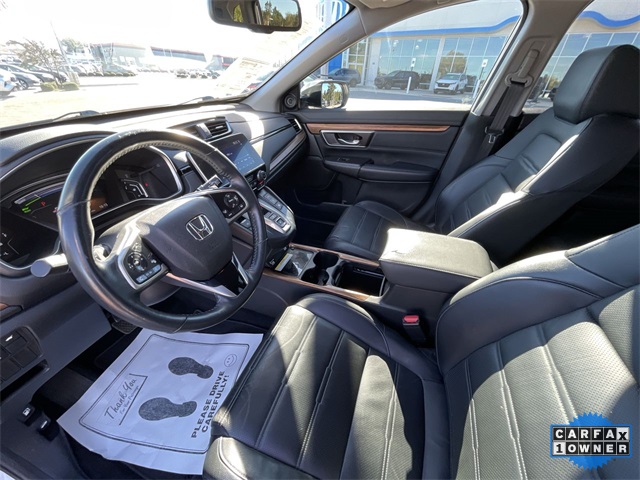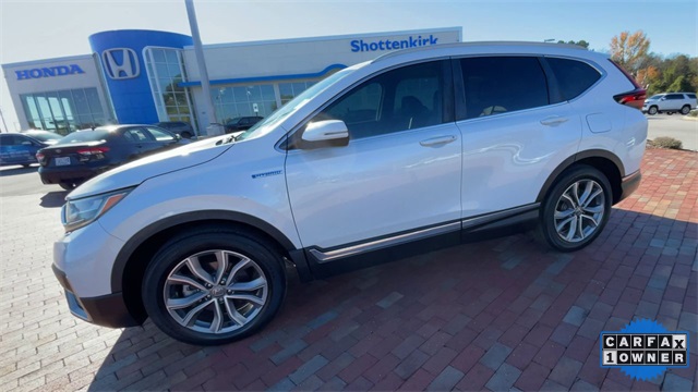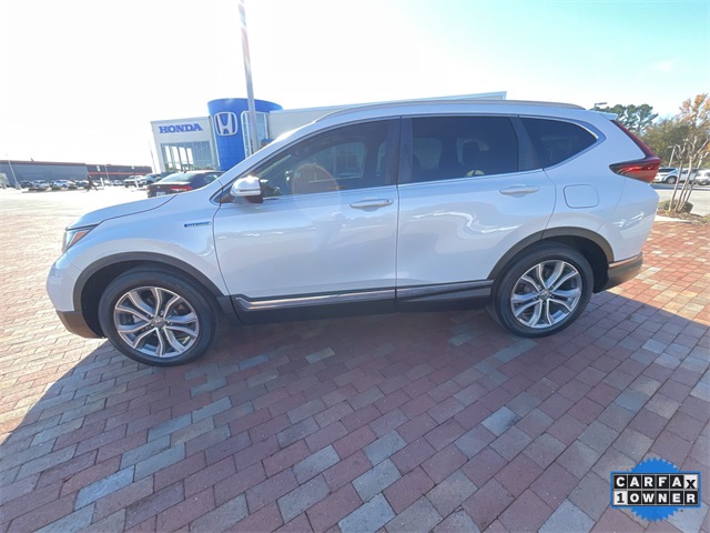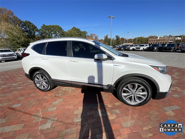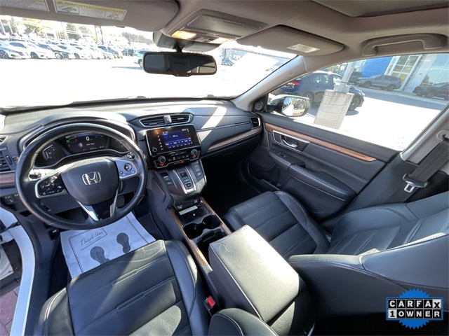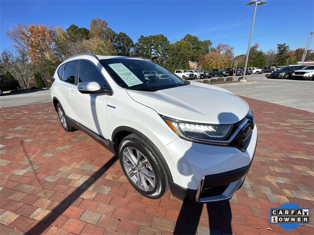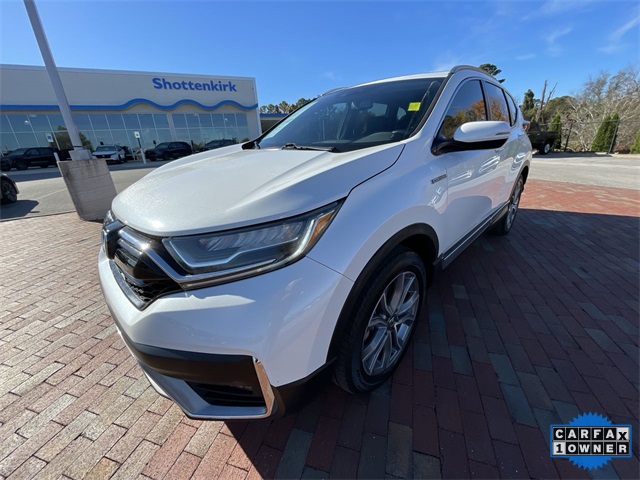 CARFAX One-Owner. Certified. 2020 Honda CR-V Hybrid Touring Touring Platinum White Pearl 4D Sport Utility 2.0L I4 DOHC 16V eCVT AWD This vehicle comes well equipped with 4-Wheel Disc Brakes, 9 Speakers, ABS brakes, Adaptive Cruise Control: Adaptive Cruise Control (ACC) with Low-Speed Follow, Air Conditioning, Alloy wheels, AM/FM radio: SiriusXM, Apple CarPlay/Android Auto, Auto High-beam Headlights, Auto-dimming Rear-View mirror, Automatic temperature control, Blind Spot Information (BSI) System warning, Brake assist, Bumpers: body-color, Compass, Delay-off headlights, Driver door bin, Driver vanity mirror, Dual front impact airbags, Dual front side impact airbags, Electronic Stability Control, Exterior Parking Camera Rear, Forward collision: Collision Mitigation Braking System (CMBS) + FCW mitigation, Four wheel independent suspension, Front anti-roll bar, Front Bucket Seats, Front Center Armrest, Front dual zone A/C, Front fog lights, Front reading lights, Garage door transmitter: HomeLink, Heated door mirrors, Heated Front Bucket Seats, Heated front seats, Heated steering wheel, Illuminated entry, Leather Seat Trim, Low tire pressure warning, Memory seat, Navigation system: Honda Satellite-Linked Navigation System, Occupant sensing airbag, Outside temperature display, Overhead airbag, Overhead console, Panic alarm, Passenger door bin, Passenger vanity mirror, Power door mirrors, Power driver seat, Power Liftgate, Power moonroof, Power passenger seat, Power steering, Power windows, Radio data system, Radio: 330-Watt AM/FM/HD/SiriusXM Prem Audio System, Rain sensing wipers, Rear anti-roll bar, Rear seat center armrest, Rear window defroster, Rear window wiper, Remote keyless entry, Roof rack: rails only, Security system, Speed control, Speed-sensing steering, Speed-Sensitive Wipers, Split folding rear seat, Spoiler, Steering wheel mounted audio controls, TBD Axle Ratio, Telescoping steering wheel, Tilt steering wheel, Traction control, Trip computer, Turn signal indicator mirrors, Variably intermittent wipers, and Wheels: 19" Machine-Finished Alloy w/Gray Inserts.