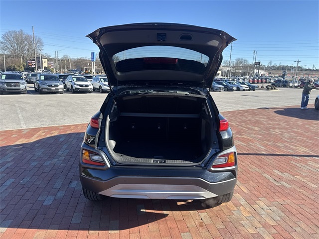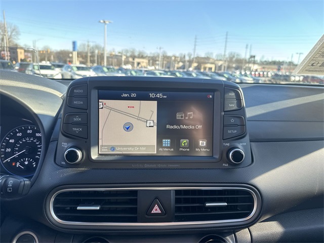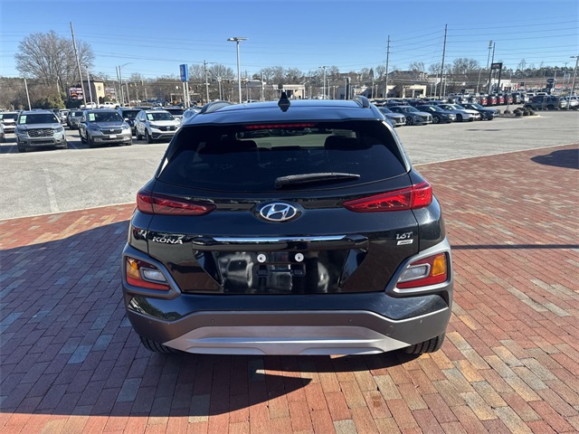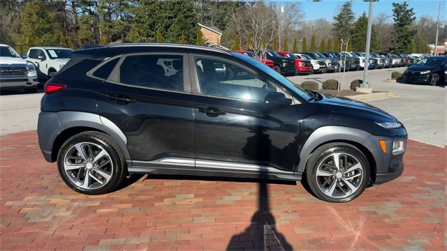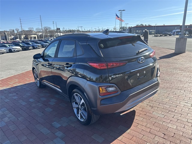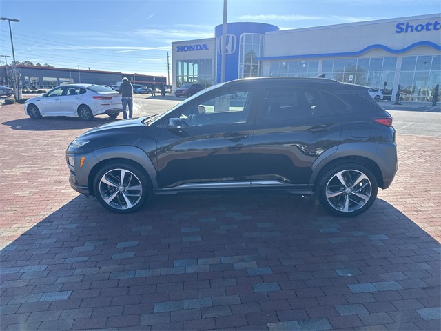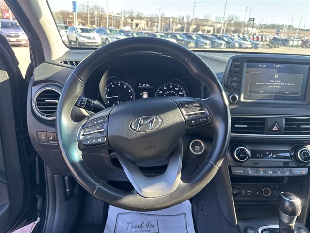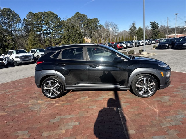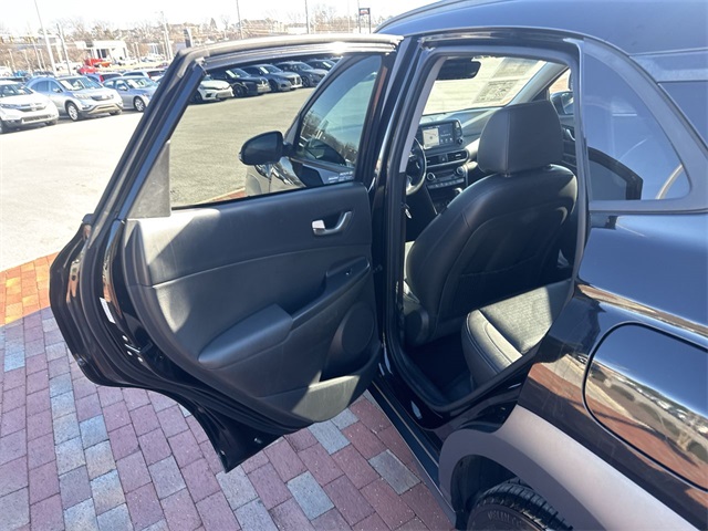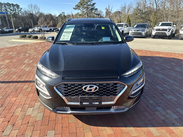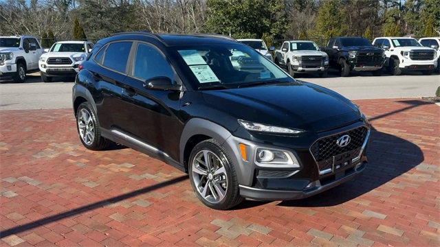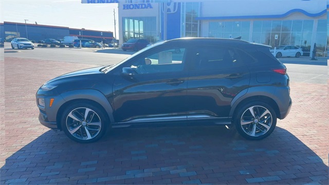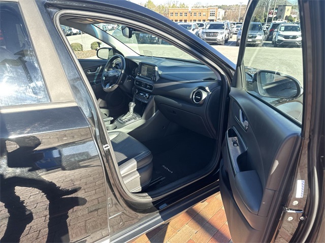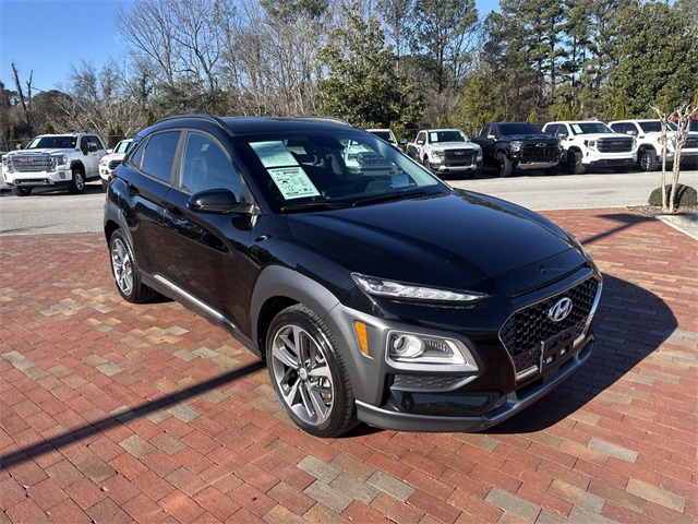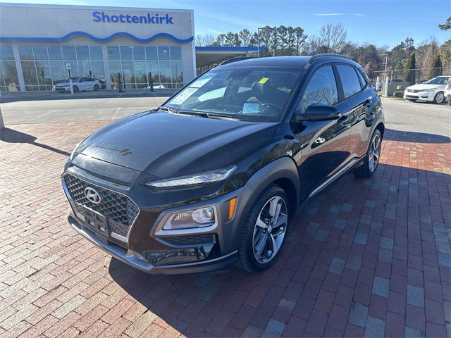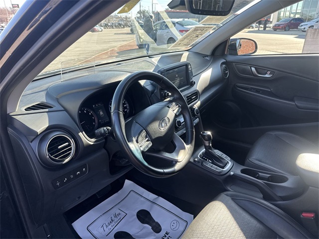 2021 Hyundai Kona Ultimate Ultimate Ultra Black Pearl 4D Sport Utility I4 7-Speed Automatic AWD This vehicle comes well equipped with Option Group 01, 3.579 Axle Ratio, 4-Wheel Disc Brakes, 8 Speakers, ABS brakes, Air Conditioning, Alloy wheels, AM/FM radio: SiriusXM, Apple CarPlay & Android Auto, Auto High-beam Headlights, Auto-dimming Rear-View mirror, Automatic temperature control, Brake assist, Bumpers: body-color, Delay-off headlights, Driver door bin, Driver vanity mirror, Dual front impact airbags, Dual front side impact airbags, Electronic Stability Control, Emergency communication system, Exterior Parking Camera Rear, Four wheel independent suspension, Front anti-roll bar, Front Bucket Seats, Front Center Armrest, Front fog lights, Front reading lights, Fully automatic headlights, Garage door transmitter: HomeLink, Heads-Up Display, Heated door mirrors, Heated Front Bucket Seats, Heated front seats, Illuminated entry, Leather Seat Trim, Leather Shift Knob, Leather steering wheel, Low tire pressure warning, Navigation System, Occupant sensing airbag, Outside temperature display, Overhead airbag, Overhead console, Panic alarm, Passenger door bin, Passenger vanity mirror, Power door mirrors, Power driver seat, Power moonroof, Power steering, Power windows, Radio: AM/FM/MP3/HD Radio/SiriusXM Audio System, Rain sensing wipers, Rear anti-roll bar, Rear seat center armrest, Rear window defroster, Rear window wiper, Remote keyless entry, Roof rack: rails only, Security system, Speed control, Speed-sensing steering, Split folding rear seat, Spoiler, Steering wheel mounted audio controls, Tachometer, Telescoping steering wheel, Tilt steering wheel, Traction control, Trip computer, Turn signal indicator mirrors, Variably intermittent wipers, and Wheels: 18 x 7.5J Alloy.