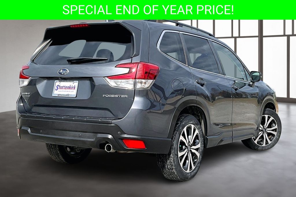Apple CarPlay, Android Auto, Back Up Camera, Heated Seats, Heated Steering Wheel, Leather Interior, Local Trade-In, Navigation, Power Drivers Seat, Sunroof, CD Player, Harman Kardon Audio, Forester Limited, 2.5L 4-Cylinder DOHC 16V VVT, Lineartronic CVT, AWD, Magnetite Gray Metallic, Black Leather, All-Weather Floor Liners, AM/FM radio: SiriusXM, Audio Sys & Driver Assist Tech & Htd Steer Wheel, Auto-Dimming Exterior Mirror w/Approach Lighting, Auto-Dimming Mirror w/Compass & HomeLink, Automatic temperature control, Cargo Net, CD player, Dome Light LED Upgrade, Electronic Stability Control, Emergency communication system: STARLINK Safety and Security (Subscription Required), Exterior Parking Camera Rear, Front dual zone A/C, Front fog lights, harman kardon 576W Amp & Speaker System, Heated door mirrors, Heated Front Bucket Seats, Heated Steering Wheel, Navigation System, Outside temperature display, Perforated Leather-Trimmed Upholstery, Popular Package #3, Power door mirrors, Power driver seat, Power Liftgate, Power moonroof: Panoramic, Radio: Subaru Starlink 8.0" Multimedia Nav System, Rear Bumper Cover, Remote keyless entry, Reverse Automatic Braking System (RAB), Roof rack: rails only, Spoiler, STARLINK/Apple CarPlay/Android Auto, Telescoping steering wheel, Tilt steering wheel, Wheels: 18" x 7.0J Black Machine Finish Alum Alloy.