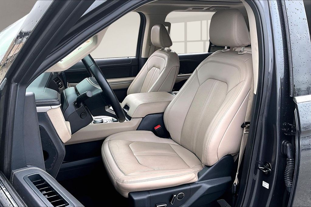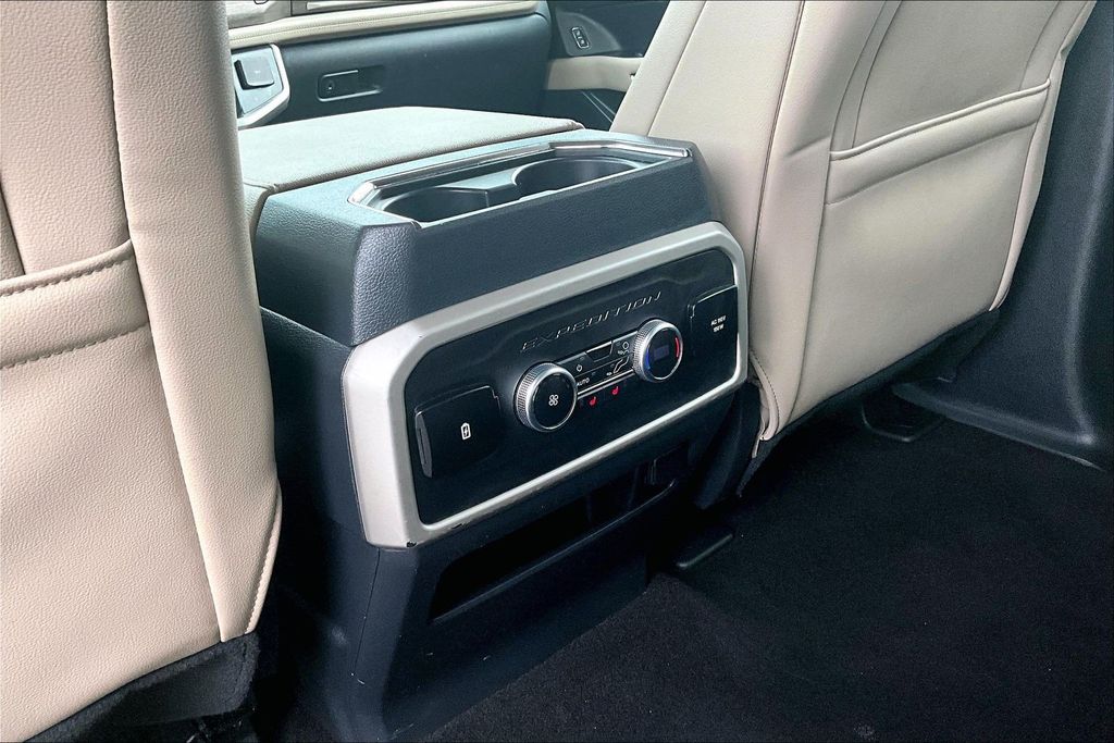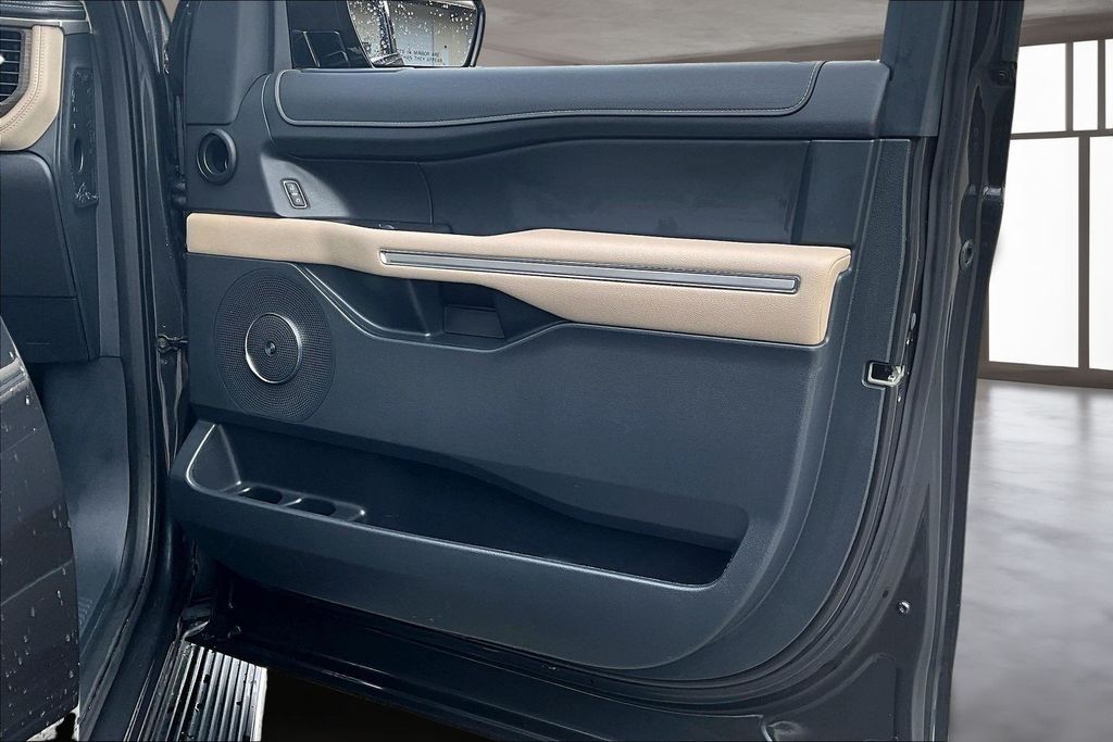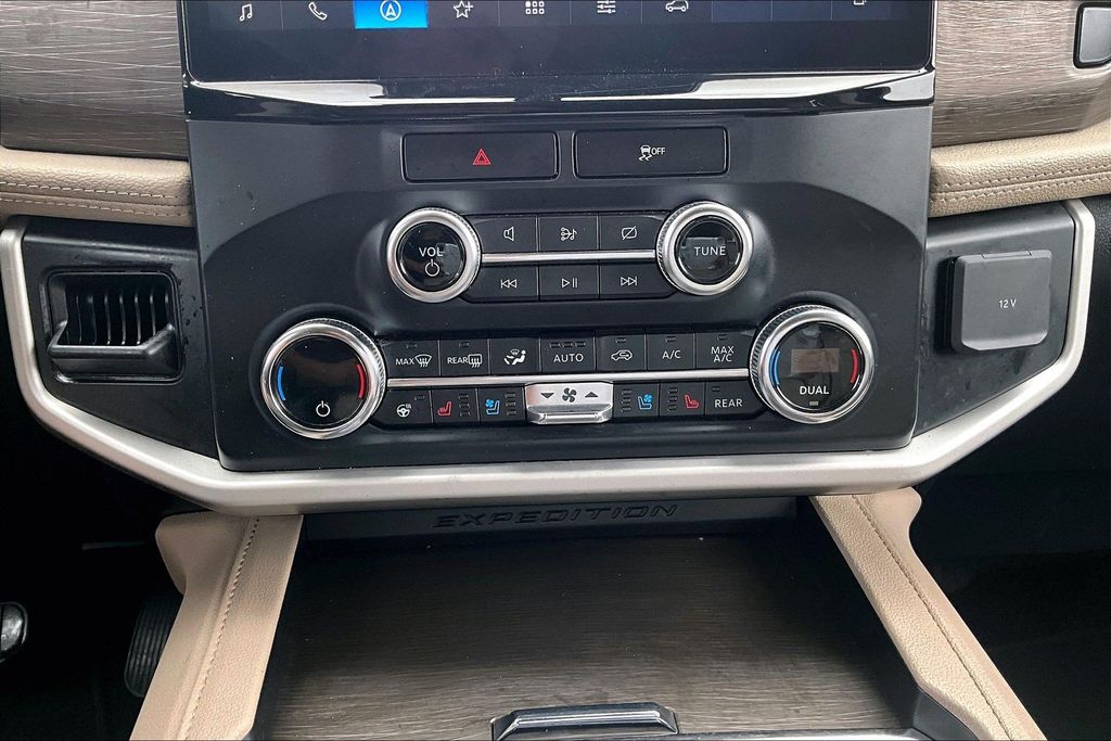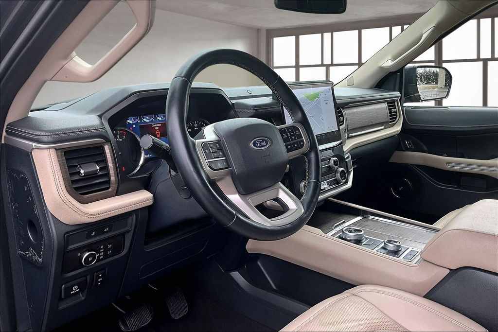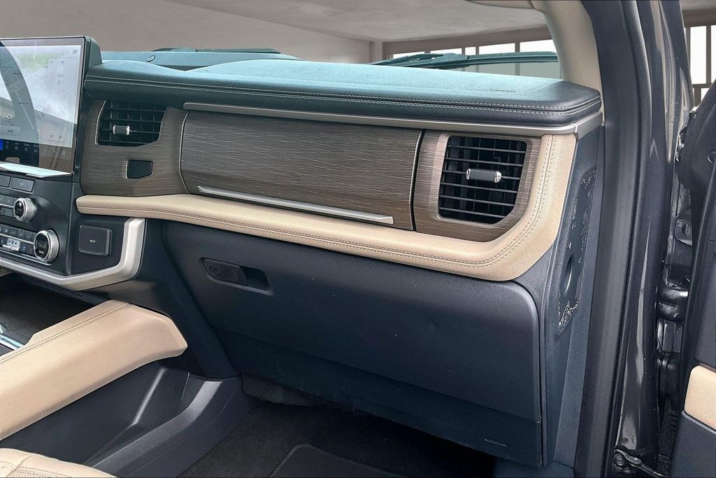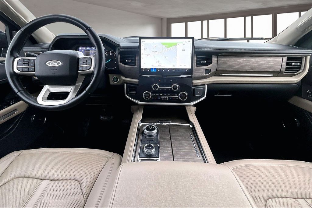 Apple CarPlay, Android Auto, Expedition Limited, EcoBoost 3.5L V6 GTDi DOHC 24V Twin Turbocharged, 10-Speed Automatic, 4WD, Dark Matter Metallic, Sandstone Leather, 3rd row seats: split-bench, AM/FM radio: SiriusXM with 360L, Auto-dimming door mirrors, Auto-dimming Rear-View mirror, Automatic temperature control, Emergency communication system: SYNC 4 911 Assist, Equipment Group 301A Mid Package, Exterior Parking Camera Rear, Front dual zone A/C, Front fog lights, Garage door transmitter, Heated & Ventilated Leather Front Captain's Chairs, Heated front seats, Heated steering wheel, Leather steering wheel, Memory seat, Navigation system: Connected Navigation, Panoramic Vista Roof, Pedal memory, Power door mirrors, Power Liftgate, Power passenger seat, Radio: B&O Sound System by Bang & Olufsen, Rain sensing wipers, Remote keyless entry, SiriusXM w/360L, Spoiler, SYNC 4 w/Enhanced Voice Recognition, Telescoping steering wheel, Tilt steering wheel, Turn signal indicator mirrors, Ventilated front seats, Wheels: 20" Bright Machined Aluminum.