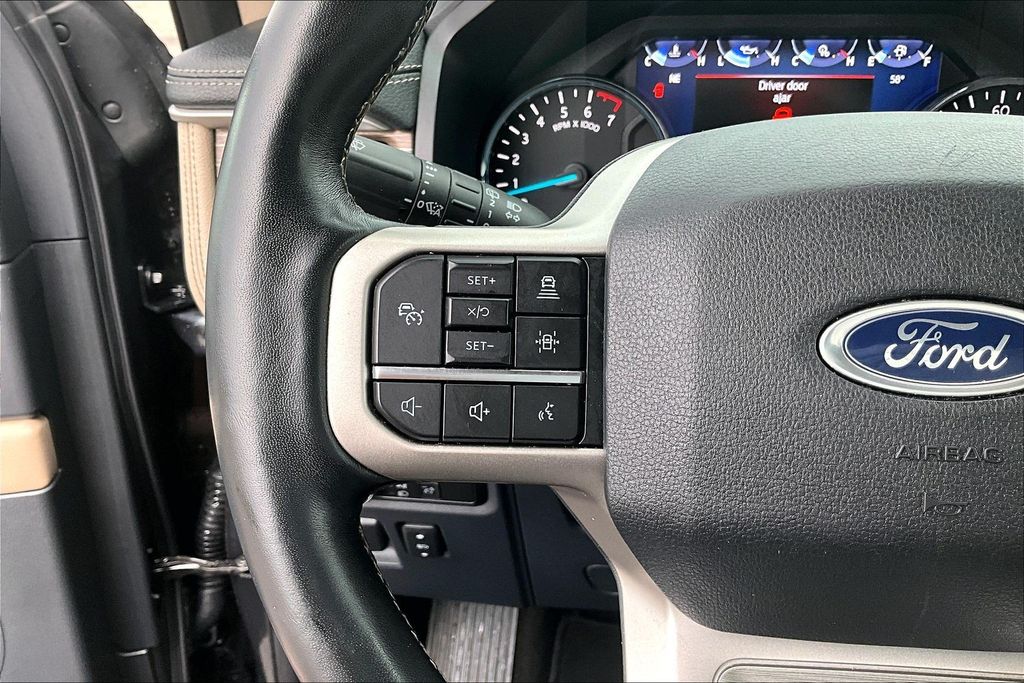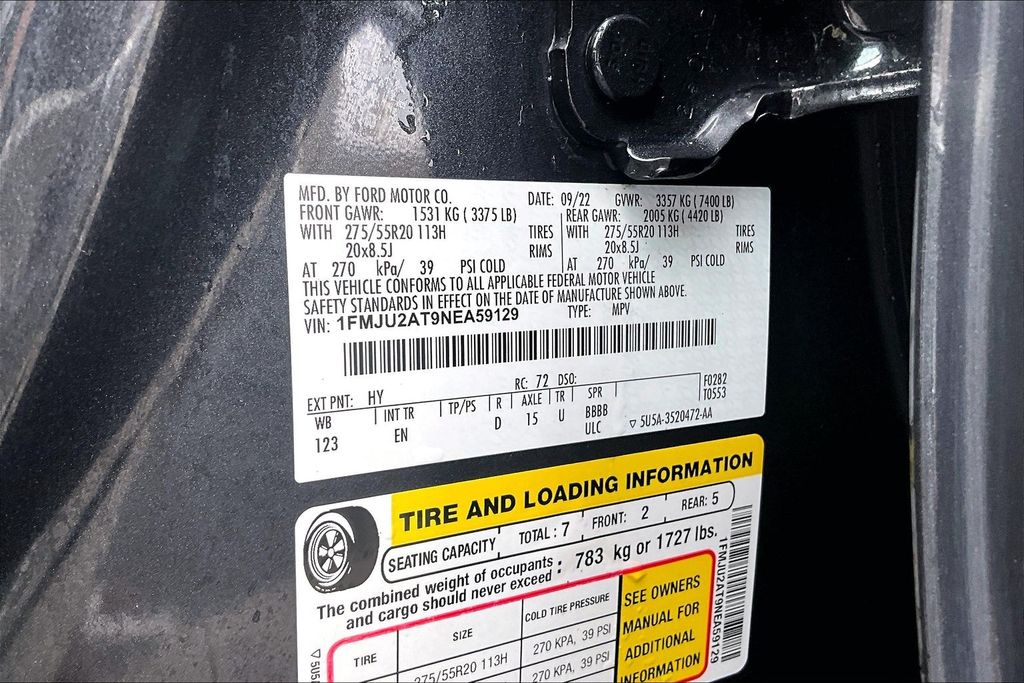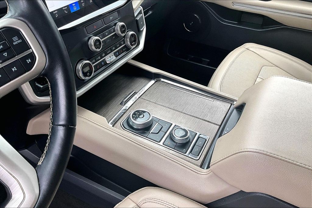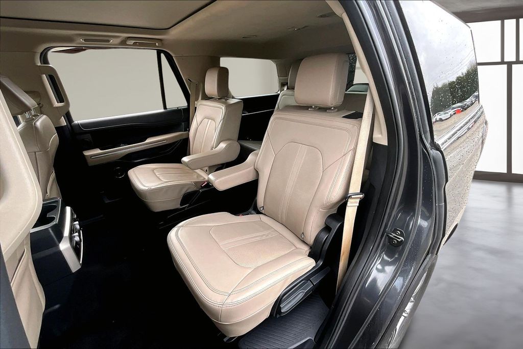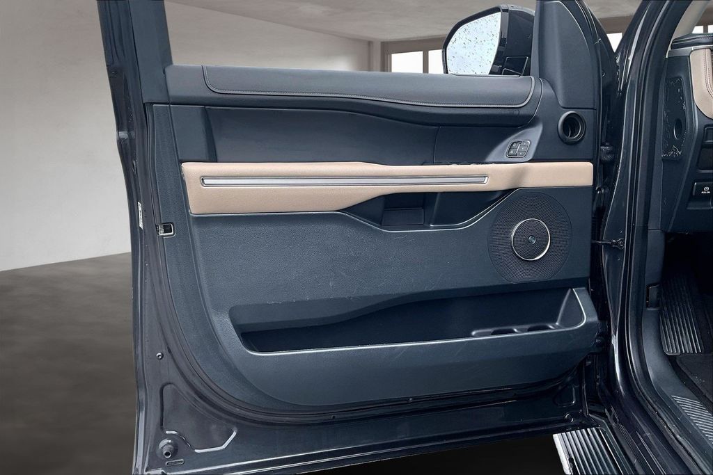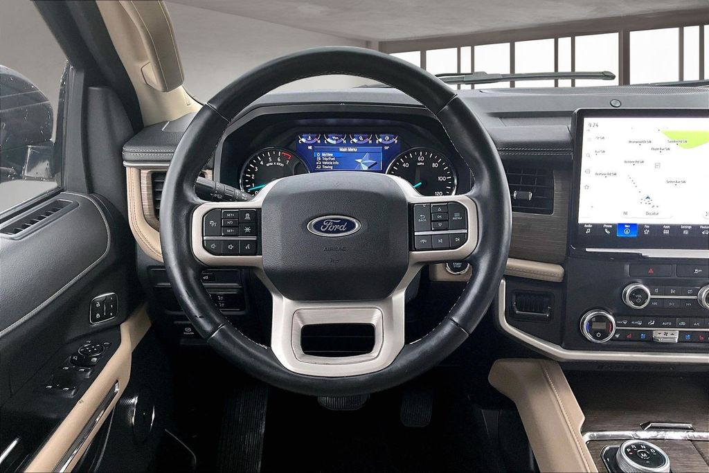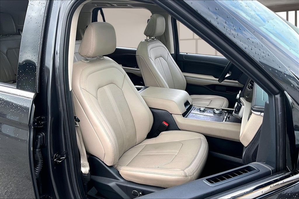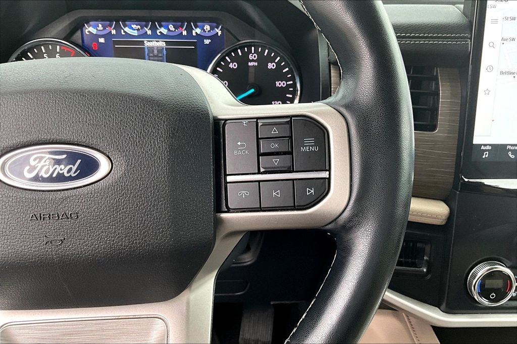 Apple CarPlay, Android Auto, Expedition Limited, EcoBoost 3.5L V6 GTDi DOHC 24V Twin Turbocharged, 10-Speed Automatic, 4WD, Dark Matter Metallic, Sandstone Leather, 3rd row seats: split-bench, AM/FM radio: SiriusXM with 360L, Auto-dimming door mirrors, Auto-dimming Rear-View mirror, Automatic temperature control, Emergency communication system: SYNC 4 911 Assist, Equipment Group 301A Mid Package, Exterior Parking Camera Rear, Front dual zone A/C, Front fog lights, Garage door transmitter, Heated & Ventilated Leather Front Captain's Chairs, Heated front seats, Heated steering wheel, Leather steering wheel, Memory seat, Navigation system: Connected Navigation, Panoramic Vista Roof, Pedal memory, Power door mirrors, Power Liftgate, Power passenger seat, Radio: B&O Sound System by Bang & Olufsen, Rain sensing wipers, Remote keyless entry, SiriusXM w/360L, Spoiler, SYNC 4 w/Enhanced Voice Recognition, Telescoping steering wheel, Tilt steering wheel, Turn signal indicator mirrors, Ventilated front seats, Wheels: 20" Bright Machined Aluminum.