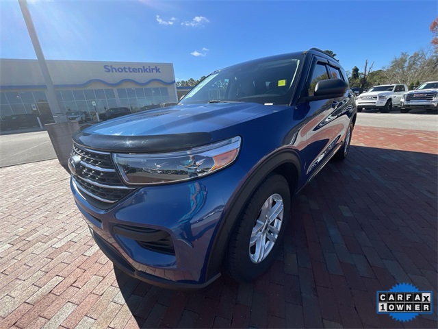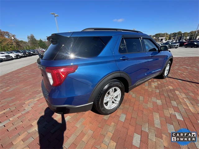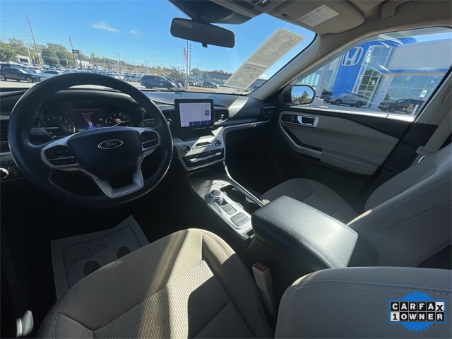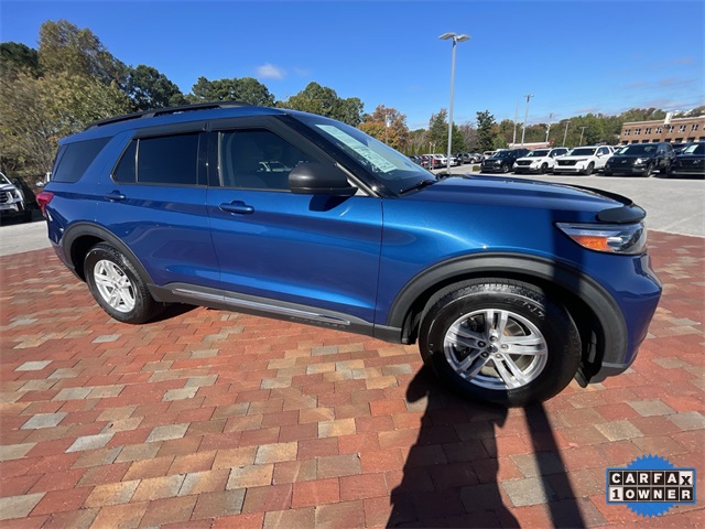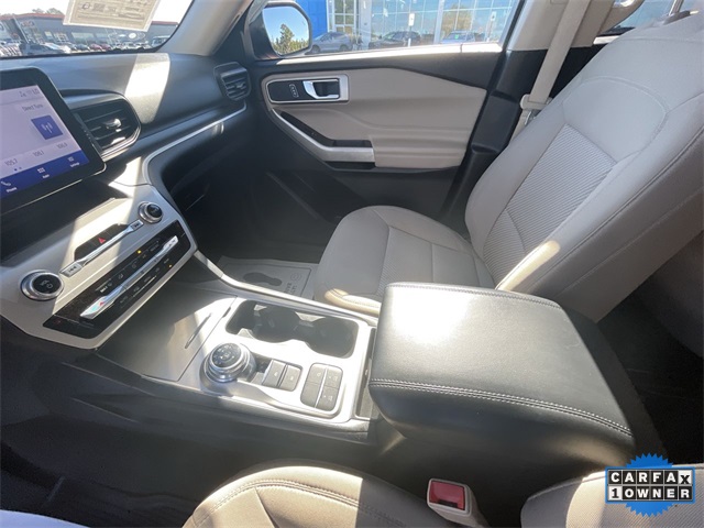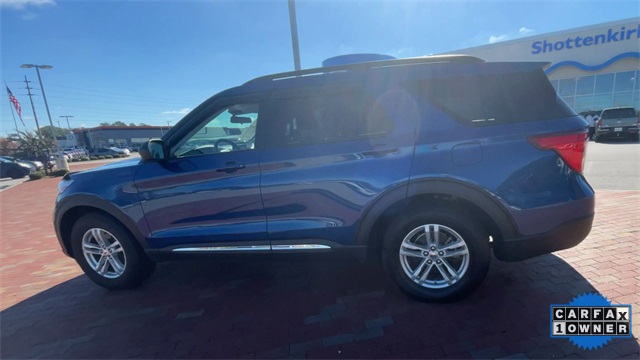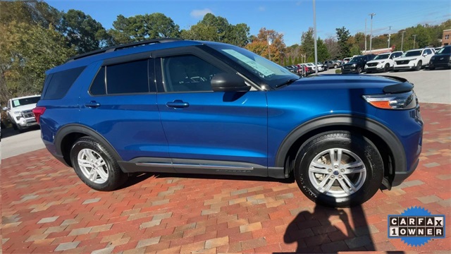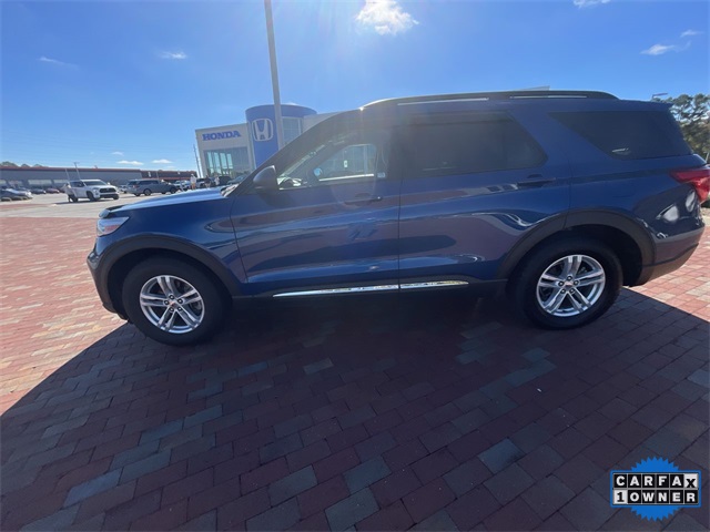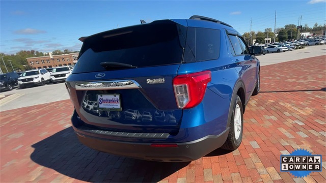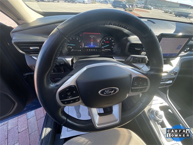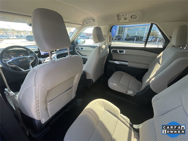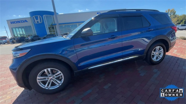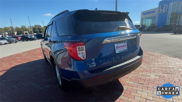 CARFAX One-Owner. 2022 Ford Explorer XLT XLT Atlas Blue Metallic 4D Sport Utility 2.3L EcoBoost I-4 10-Speed Automatic RWD This vehicle comes well equipped with Equipment Group 200A, 1st Row Heated Seats, 3.58 Non-Limited-Slip Rear Axle Ratio, 3rd row seats: bench, 4-Wheel Disc Brakes, 6 Speakers, ABS brakes, Air Conditioning, Alloy wheels, AM/FM radio: SiriusXM, AM/FM Stereo, Auto High-beam Headlights, Auto Start-Stop Removal, Automatic temperature control, Brake assist, Bumpers: body-color, Compass, Delay-off headlights, Driver door bin, Driver vanity mirror, Dual front impact airbags, Dual front side impact airbags, Electronic Stability Control, Emergency communication system: SYNC 3 911 Assist, Exterior Parking Camera Rear, FordPass Connect, Four wheel independent suspension, Front anti-roll bar, Front Bucket Seats, Front Center Armrest, Front dual zone A/C, Front reading lights, Fully automatic headlights, Heated door mirrors, Heated front seats, Illuminated entry, Knee airbag, Leather steering wheel, Low tire pressure warning, Occupant sensing airbag, Outside temperature display, Overhead airbag, Overhead console, Panic alarm, Passenger door bin, Passenger vanity mirror, Power door mirrors, Power driver seat, Power Liftgate, Power passenger seat, Power steering, Power windows, Rear air conditioning, Rear anti-roll bar, Rear Auxiliary Controls Credit, Rear reading lights, Rear window defroster, Rear window wiper, Remote keyless entry, Roof rack: rails only, Security system, Speed control, Speed-sensing steering, Speed-Sensitive Wipers, Split folding rear seat, Spoiler, Steering wheel mounted audio controls, SYNC 3 Communications & Entertainment System, SYNC 3/Apple CarPlay/Android Auto, Tachometer, Telescoping steering wheel, Tilt steering wheel, Traction control, Trip computer, Unique Cloth Captain's Chairs, Variably intermittent wipers, and Wheels: 18" 5-Spoke Silver-Painted Aluminum.