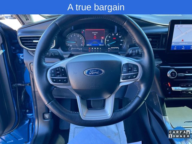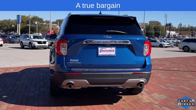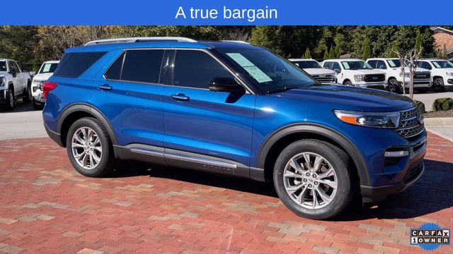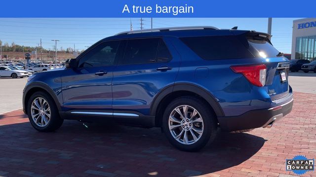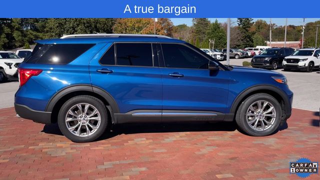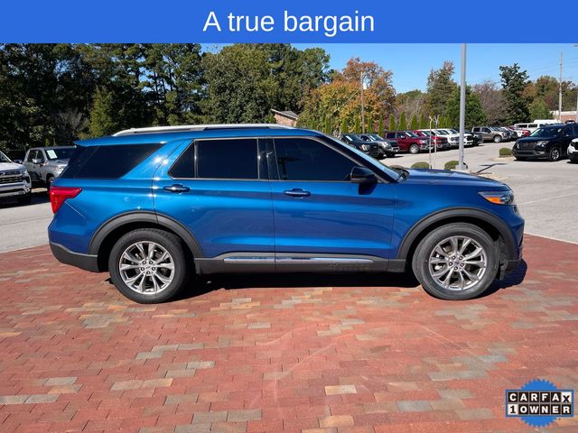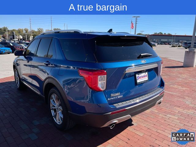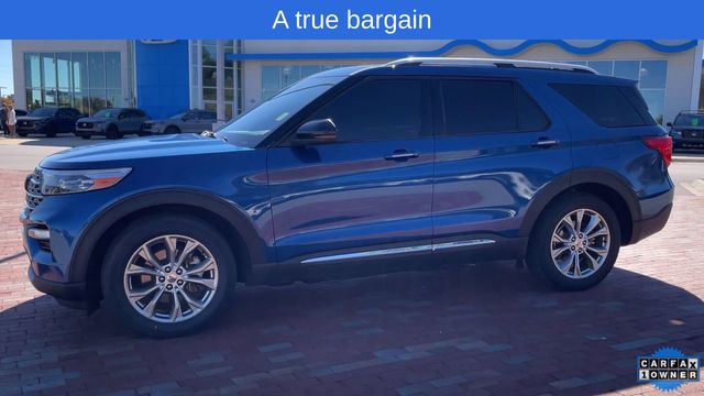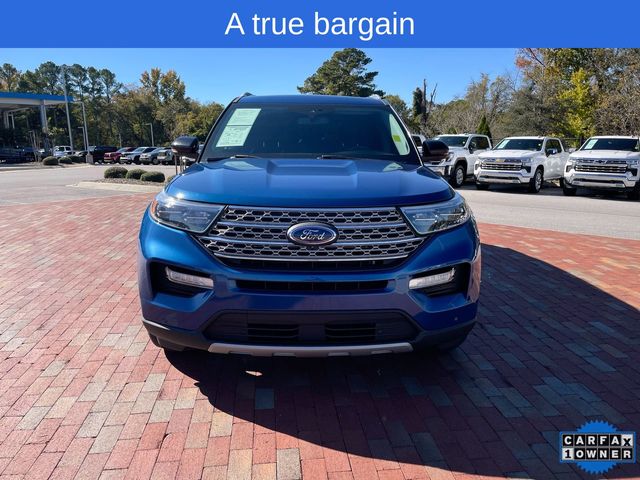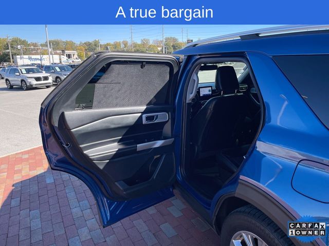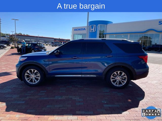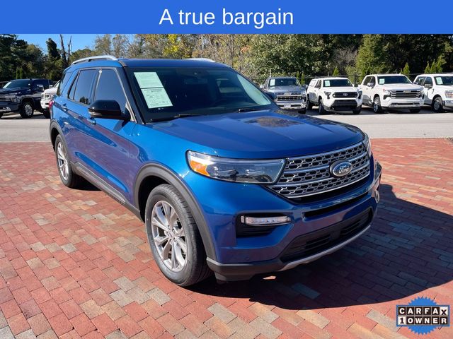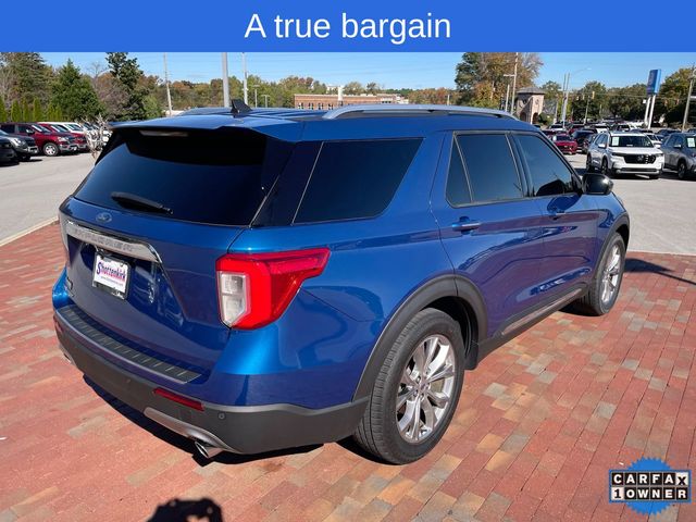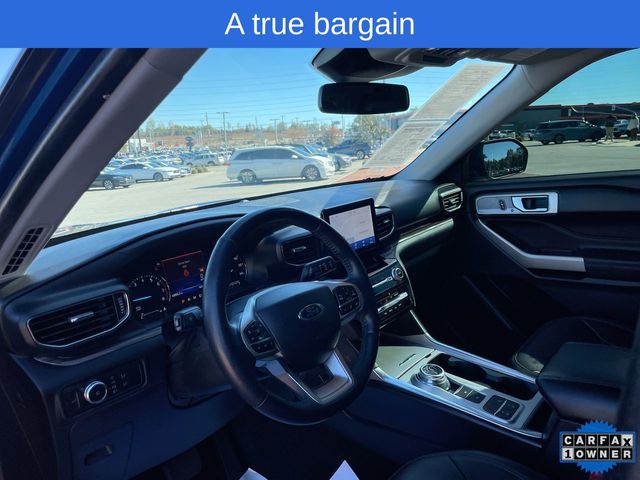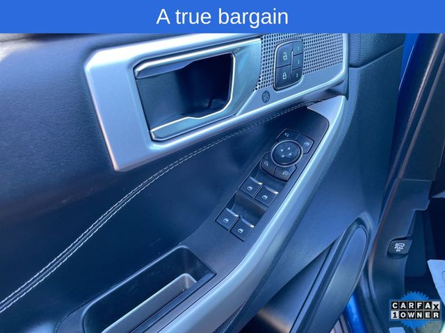 CARFAX One-Owner. 2022 Ford Explorer Limited Limited Atlas Blue Metallic 4D Sport Utility 2.3L EcoBoost I-4 10-Speed Automatic RWD This vehicle comes well equipped with Equipment Group 301A, Limited Convenience Package (110V/150W AC Power Outlet, 3rd Row PowerFold Seat, Hands-Free Foot-Activated Liftgate, Memory Driver's Seat, Power Tilt/Telescoping Steering Column, and Sideview Mirrors w/Gloss Black Caps), 12 Speakers, 1st Row Heated Seats, 20" Premium Painted Aluminum Wheels, 3.58 Non-Limited-Slip Rear Axle Ratio, 3rd row seats: bench, 4-Wheel Disc Brakes, ABS brakes, Air Conditioning, Alloy wheels, AM/FM radio: SiriusXM, Auto High-beam Headlights, Auto Start-Stop Removal, Auto-dimming Rear-View mirror, Automatic temperature control, Brake assist, Bumpers: body-color, Cargo Area Management System, Compass, Delay-off headlights, Driver door bin, Driver vanity mirror, Dual front impact airbags, Dual front side impact airbags, Electronic Stability Control, Emergency communication system: SYNC 3 911 Assist, Exterior Parking Camera Rear, FordPass Connect, Four wheel independent suspension, Front anti-roll bar, Front Bucket Seats, Front Center Armrest, Front dual zone A/C, Front fog lights, Front reading lights, Fully automatic headlights, Garage door transmitter, Heated door mirrors, Heated front seats, Heated rear seats, Heated steering wheel, Illuminated entry, Knee airbag, Leather Heated/Ventilated Captain's Chairs, Leather steering wheel, Low tire pressure warning, Navigation System, Occupant sensing airbag, Outside temperature display, Overhead airbag, Overhead console, Panic alarm, Passenger door bin, Passenger vanity mirror, Power door mirrors, Power driver seat, Power Liftgate, Power passenger seat, Power steering, Power windows, Radio data system, Radio: B&O Sound System by Bang & Olufsen, Rain sensing wipers, Rear air conditioning, Rear anti-roll bar, Rear reading lights, Rear window defroster, Rear window wiper, Remote keyless entry, Roof rack: rails only, Security system, Speed control, Speed-sensing steering, Speed-Sensitive Wipers, Split folding rear seat, Spoiler, Steering wheel mounted audio controls, SYNC 3 Communications & Entertainment System, SYNC 3/Apple CarPlay/Android Auto, Tachometer, Telescoping steering wheel, Tilt steering wheel, Traction control, Trip computer, Twin Panel Moonroof, Variably intermittent wipers, Ventilated front seats, and Voice-Activated Touchscreen Navigation System.
