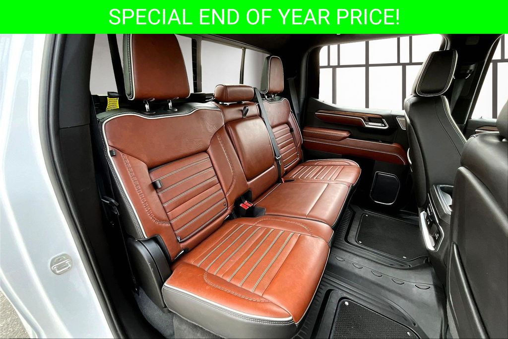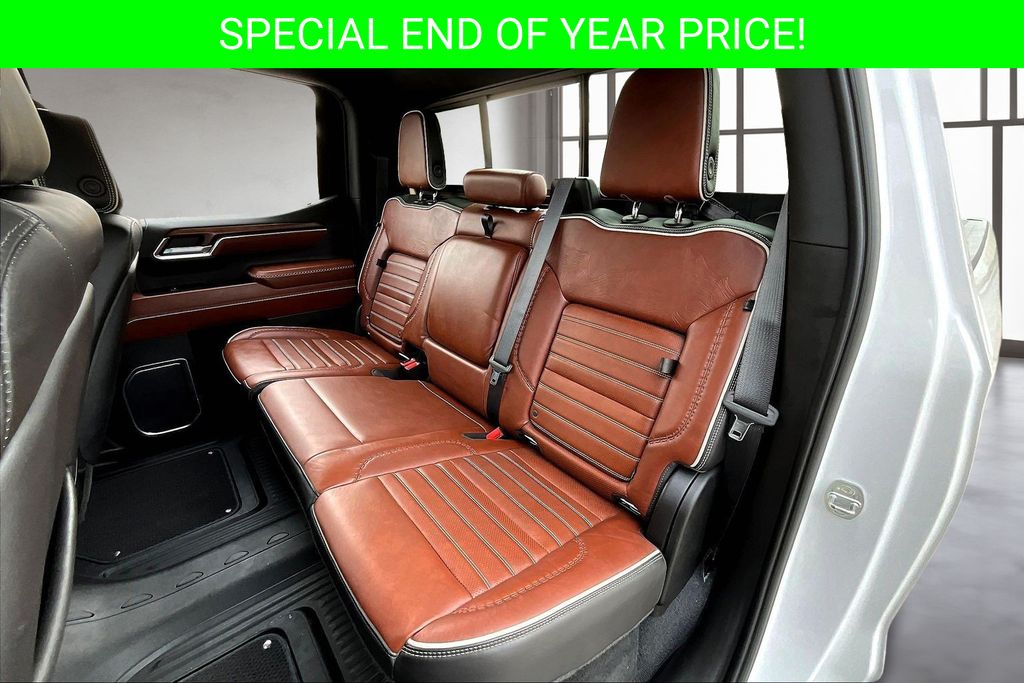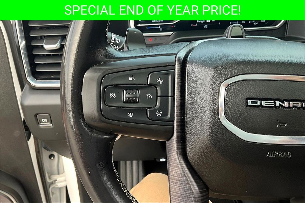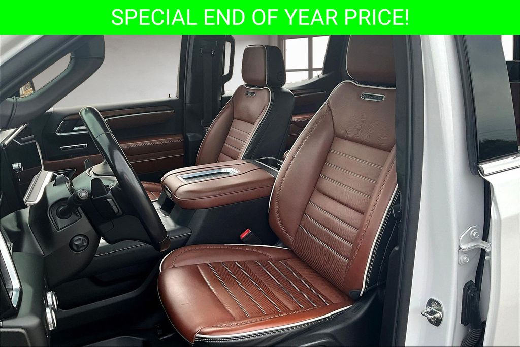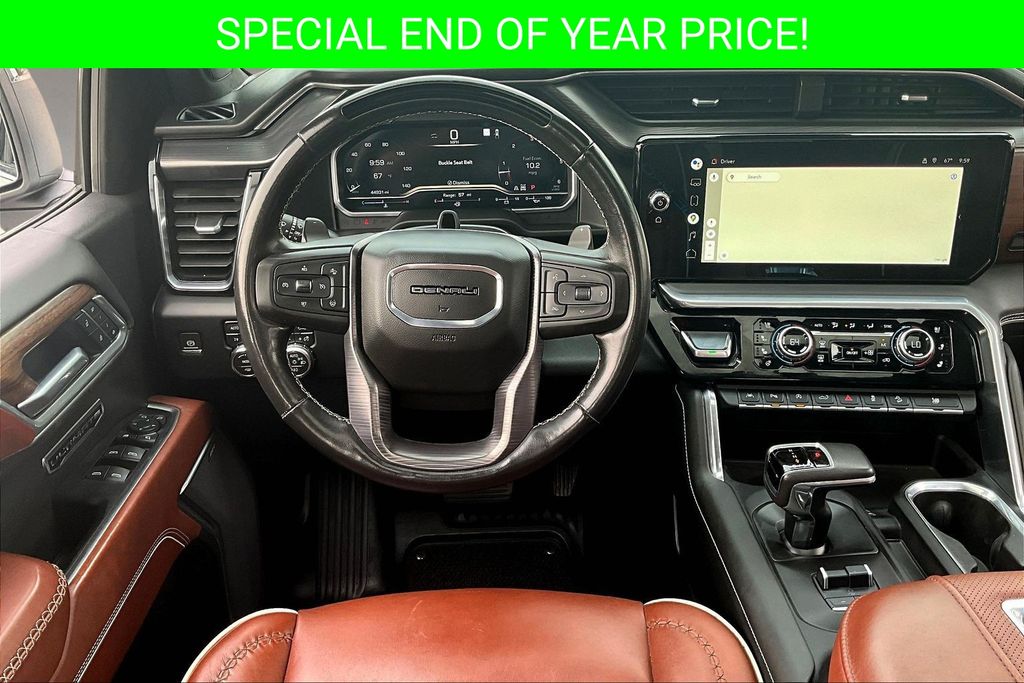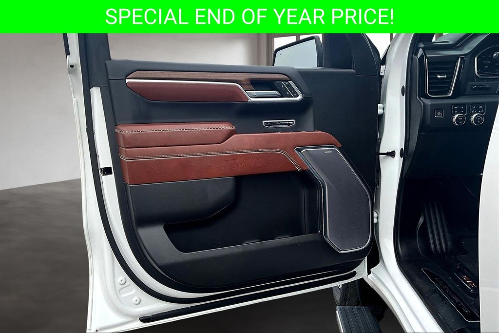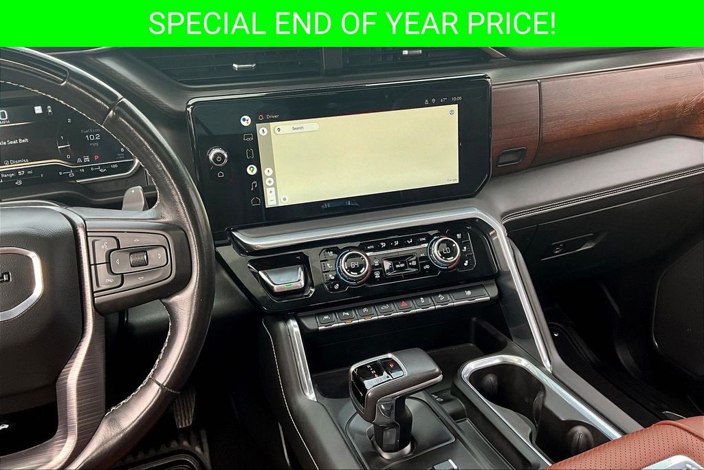 Apple CarPlay, Android Auto, Adaptive Cruise Control, Back Up Camera, Blind Spot Monitoring System, Heads Up Display, Heated Seats, Heated Steering Wheel, Leather Interior, Lane Departure, Memory Seats, Navigation, Power Drivers Seat, Power Passenger Seat, Parking Sensors, Remote Start, Sunroof, Tow Package, Ventilated Seats, Sierra 1500 Denali Ultimate, EcoTec3 6.2L V8, 10-Speed Automatic, 4WD, White Frost Tricoat, Alpine Umber Leather, 120-Volt Bed Mounted Power Outlet, 120-Volt Instrument Panel Power Outlet, 2 Charge/Data USB Ports Inside Center Console, 2 Type-C Charge-Only Rear USB Ports, 2 USB Ports, Apple CarPlay/Android Auto, Auto High-beam Headlights, Auto-dimming door mirrors, Auto-dimming Rear-View mirror, Auto-Locking Rear Differential, Automatic temperature control, Bed View Camera, Bose Premium Series w/12-Speaker System, Carbon Fiber Composite Bed, Chrome Recovery Hooks, Color-Keyed Carpeting Floor Covering, Compass, Deep-Tinted Glass, Denali Premium Suspension w/Adaptive Ride Control, Driver Memory, Electric Rear-Window Defogger, Electrical Steering Column Lock, Emergency communication system: OnStar and GMC Connected Services capable, Enhanced Automatic Emergency Braking, Floor-Mounted Center Console, Following Distance Indicator, Forward Collision Alert, Front dual zone A/C, Front fog lights, Front Rainsensing Wipers, Full Grain Leather Seat Trim, Garage door transmitter, Genuine wood console insert, GMC Connected Access Capable, HD Surround Vision, Heads-Up Display, Heated 2nd Row Outboard Seats, Heated door mirrors, Heated Driver & Front Outboard Passenger Seating, Heated steering wheel, Heavy-Duty Air Filter, Hill Descent Control, Hitch Guidance, Hitch Guidance w/Hitch View, In-Vehicle Trailering App, Integrated Trailer Brake Controller, Keyless Open & Start, LED Cargo Area Lighting, Multicolor 15" Diagonal Head-Up Display, MultiPro Audio System by Kicker (LPO), Navigation System, OnStar & GMC Connected Services Capable, Outside temperature display, Perimeter Lighting, Power Door Locks, Power Front Passenger Windows w/Express Up/Down, Power Front Windows w/Driver Express Up/Down, Power moonroof, Power Rake & Telescoping Steering Column, Power Rear Windows w/Express Down, Power Sliding Rear Window w/Rear Defogger, Power Sunroof, Preferred Equipment Group 5SB, Push Button Start, Rain sensing wipers, Rear Cross Traffic Braking, Rear Pedestrian Detection, Remote Vehicle Starter System, SiriusXM w/360L, Steering Wheel Audio Controls, Super Cruise, Telescoping steering wheel, Theft Deterrent System (Unauthorized Entry), Trailer Camera Provisions, Trailer Side Blind Zone Alert, Trailer Tire Pressure Monitor System, Trailering Package, Ultrasonic Front & Rear Park Assist, Universal Home Remote, Vader Chrome Header w/Signature Denali Grille, Ventilated Driver & Front Passenger Seats, Wi-Fi Hotspot Capable, Wireless Charging, Wireless Phone Projection.
