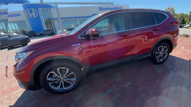 Recent Arrival! Certified. 2022 Honda CR-V Hybrid EX-L EX-L Radiant Red Metallic 4D Sport Utility 2.0L I4 DOHC 16V eCVT AWD This vehicle comes well equipped with 18" Alloy Wheels, 3.89 Axle Ratio, 4-Wheel Disc Brakes, 8 Speakers, ABS brakes, Adaptive Cruise Control: Adaptive Cruise Control (ACC) with Low-Speed Follow, Air Conditioning, Alloy wheels, AM/FM radio: SiriusXM, Apple CarPlay/Android Auto, Auto High-beam Headlights, Auto-dimming Rear-View mirror, Automatic temperature control, Blind Spot Information (BSI) System warning, Brake assist, Bumpers: body-color, Compass, Delay-off headlights, Driver door bin, Driver vanity mirror, Dual front impact airbags, Dual front side impact airbags, Electronic Stability Control, Exterior Parking Camera Rear, Forward collision: Collision Mitigation Braking System (CMBS) + FCW mitigation, Four wheel independent suspension, Front anti-roll bar, Front Bucket Seats, Front Center Armrest, Front dual zone A/C, Front fog lights, Front reading lights, Garage door transmitter: HomeLink, Heated door mirrors, Heated Front Bucket Seats, Heated front seats, Heated steering wheel, Illuminated entry, Leather Seat Trim, Low tire pressure warning, Memory seat, Occupant sensing airbag, Outside temperature display, Overhead airbag, Overhead console, Panic alarm, Passenger door bin, Passenger vanity mirror, Power door mirrors, Power driver seat, Power Liftgate, Power moonroof, Power passenger seat, Power steering, Power windows, Radio data system, Radio: 180-Watt AM/FM/HD/SiriusXM Audio System, Rear anti-roll bar, Rear seat center armrest, Rear window defroster, Rear window wiper, Remote keyless entry, Security system, Speed control, Speed-sensing steering, Speed-Sensitive Wipers, Split folding rear seat, Spoiler, Steering wheel mounted audio controls, Telescoping steering wheel, Tilt steering wheel, Traction control, Trip computer, Turn signal indicator mirrors, and Variably intermittent wipers.