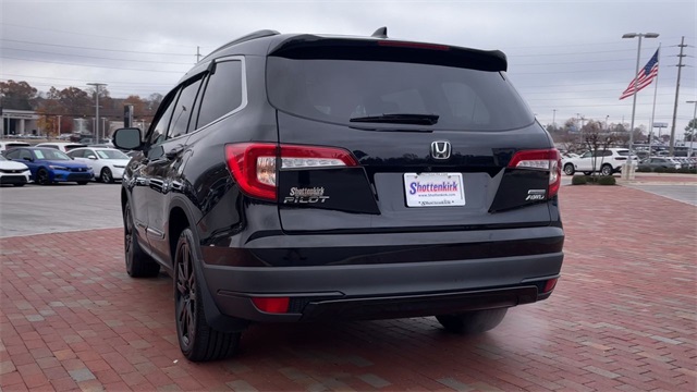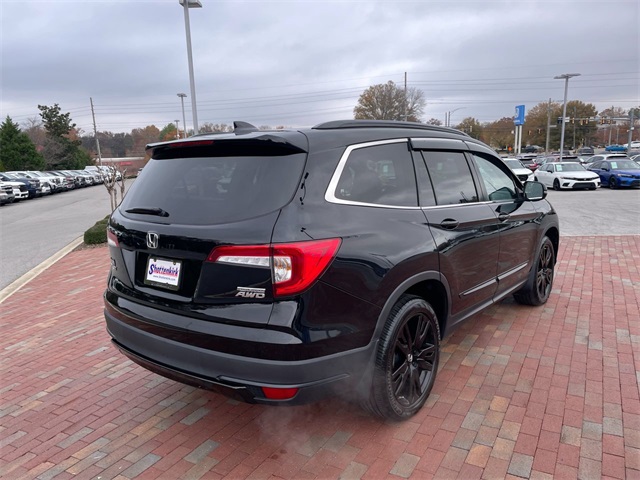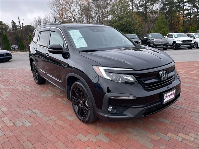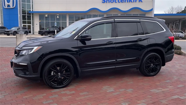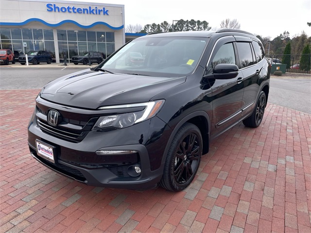 2022 Honda Pilot Special Edition Special Edition Crystal Black Pearl 4D Sport Utility 3.5L V6 24V SOHC i-VTEC 9-Speed Automatic AWD This vehicle comes well equipped with 3rd row seats: split-bench, 4-Wheel Disc Brakes, 4.33 Axle Ratio, 7 Speakers, A/V remote: CabinControl, ABS brakes, Air Conditioning, Alloy wheels, AM/FM radio: SiriusXM, Apple CarPlay/Android Auto, Auto High-beam Headlights, Auto-dimming Rear-View mirror, Automatic temperature control, Blind Spot Information (BSI) System warning, Brake assist, Bumpers: body-color, Delay-off headlights, Driver door bin, Driver vanity mirror, Dual front impact airbags, Dual front side impact airbags, Electronic Stability Control, Emergency communication system: HondaLink Assist, Exterior Parking Camera Rear, Forward collision: Collision Mitigation Braking System (CMBS) + FCW mitigation, Four wheel independent suspension, Front anti-roll bar, Front Bucket Seats, Front Center Armrest, Front dual zone A/C, Front fog lights, Front reading lights, Fully automatic headlights, Garage door transmitter: HomeLink, Heated door mirrors, Heated Front Bucket Seats, Heated front seats, Illuminated entry, Lane departure: Lane Keeping Assist System (LKAS) active, Leather Seat Trim, Low tire pressure warning, Memory seat, Occupant sensing airbag, Outside temperature display, Overhead airbag, Overhead console, Panic alarm, Passenger door bin, Passenger vanity mirror, Power door mirrors, Power driver seat, Power Liftgate, Power moonroof, Power passenger seat, Power steering, Power windows, Radio data system, Radio: 215-Watt Audio System, Rear air conditioning, Rear anti-roll bar, Rear reading lights, Rear seat center armrest, Rear window defroster, Rear window wiper, Reclining 3rd row seat, Remote keyless entry, Roof rack: rails only, Security system, Speed control, Speed-sensing steering, Speed-Sensitive Wipers, Split folding rear seat, Spoiler, Steering wheel mounted audio controls, Tachometer, Telescoping steering wheel, Tilt steering wheel, Traction control, Trip computer, Turn signal indicator mirrors, Variably intermittent wipers, and Wheels: 20" Exclusive Gloss Black Alloy.