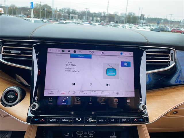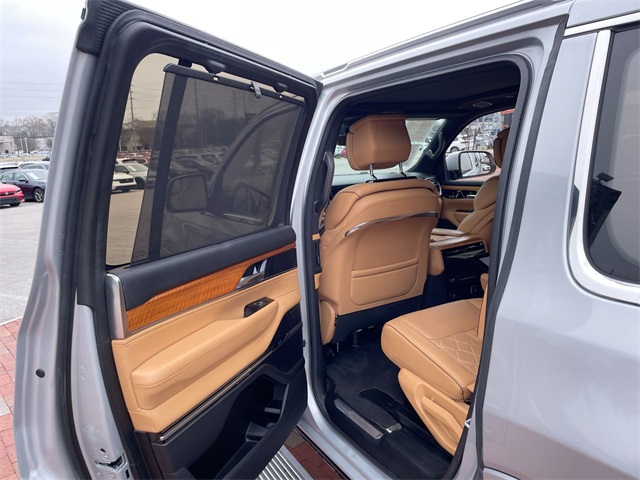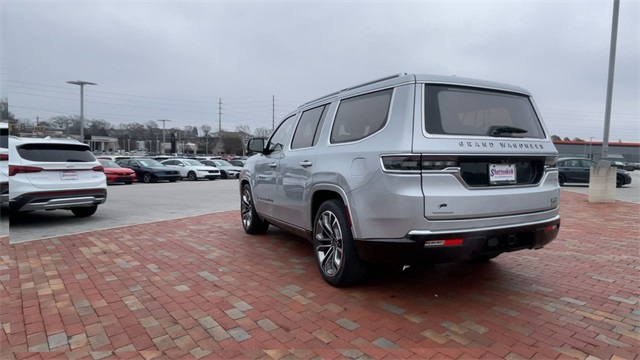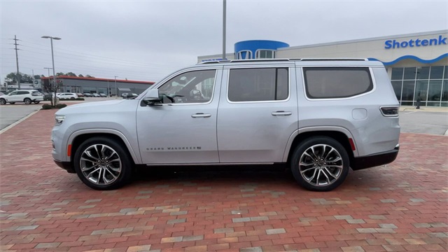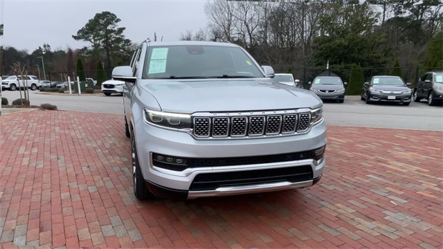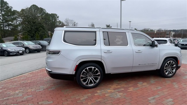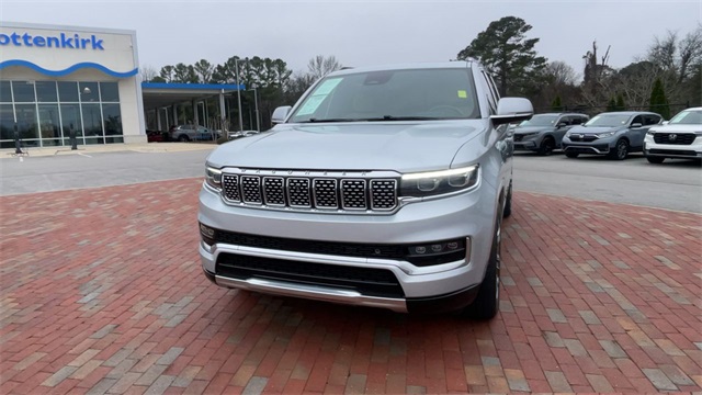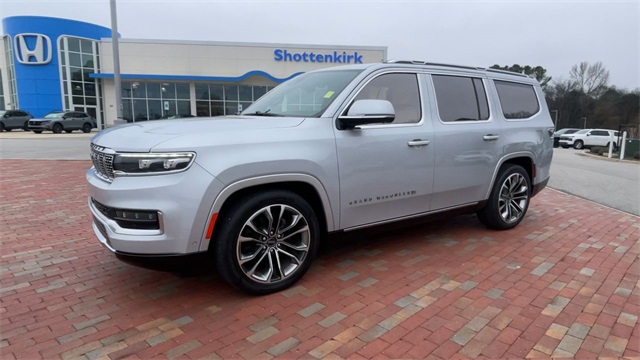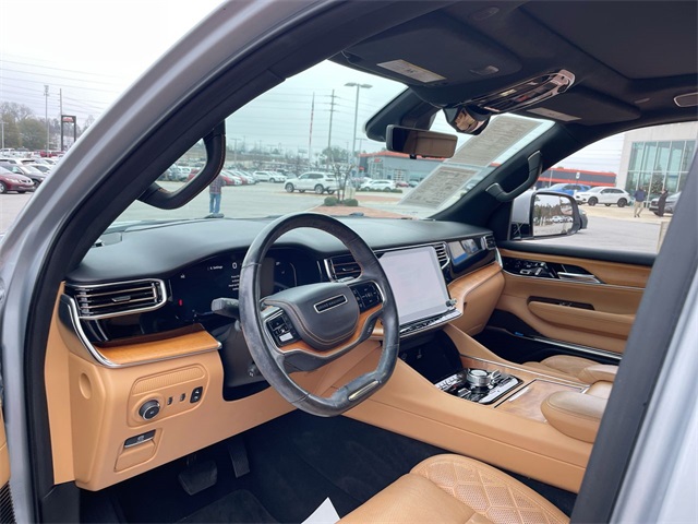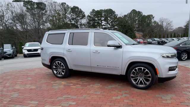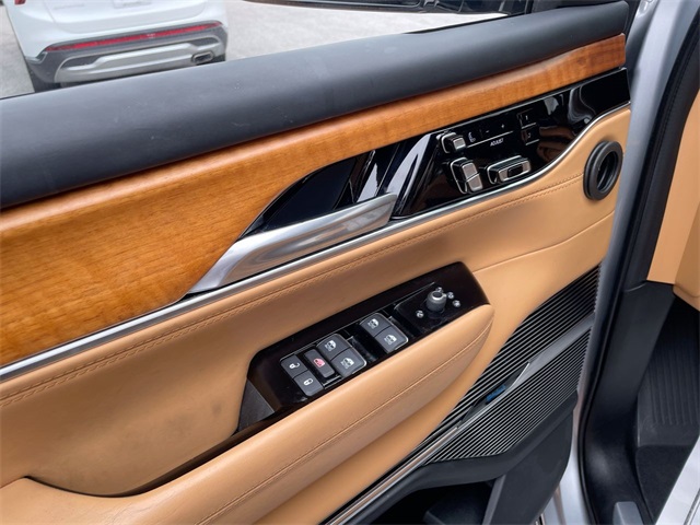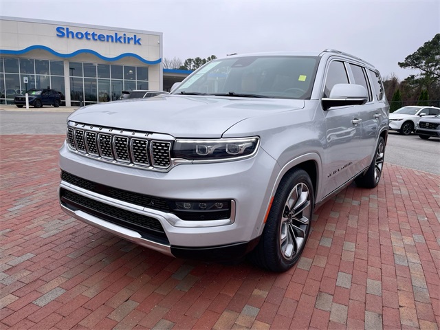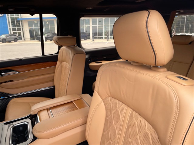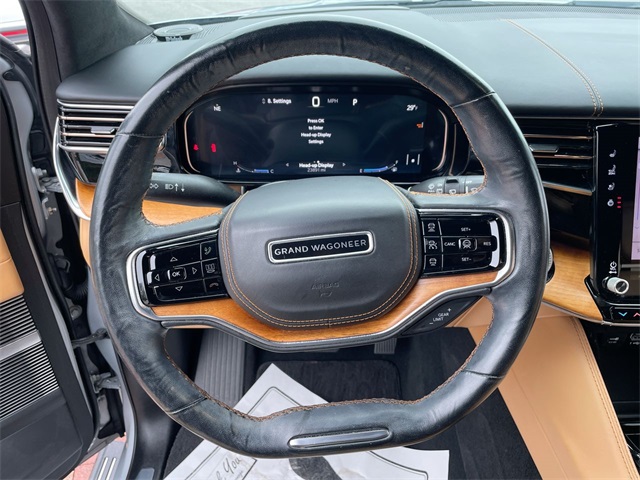 Recent Arrival! CARFAX One-Owner. 2022 Jeep Grand Wagoneer Series III Series III Silver Zynith 4D Sport Utility 6.4L V8 8-Speed Automatic 4WD This vehicle comes well equipped with Quick Order Package 23W, Two Tone Paint Group, 3.92 Rear Axle Ratio, 3rd row seats: bench, 4-Wheel Disc Brakes, ABS brakes, Adjustable pedals, Air Conditioning, Alloy wheels, AM/FM radio: SiriusXM with 360L, Anti-whiplash front head restraints, Audio memory, Auto High-beam Headlights, Auto-dimming door mirrors, Auto-dimming Rear-View mirror, Auto-leveling suspension, Automatic temperature control, Body Color Roof, Brake assist, Bumpers: body-color, Compass, Delay-off headlights, Driver door bin, Driver vanity mirror, Driver's Seat Mounted Armrest, Dual front impact airbags, Dual front side impact airbags, Electronic Stability Control, Four wheel independent suspension, Front anti-roll bar, Front Bucket Seats, Front Center Armrest w/Storage, Front dual zone A/C, Front fog lights, Front reading lights, Fully automatic headlights, Garage door transmitter, Genuine wood console insert, Genuine wood dashboard insert, Genuine wood door panel insert, Heads-Up Display, Heated door mirrors, Heated front seats, Heated rear seats, Heated steering wheel, Illuminated entry, Knee airbag, Leather steering wheel, Low tire pressure warning, Memory seat, Navigation System, Night vision lights, Normal Duty Suspension, Occupant sensing airbag, Outside temperature display, Overhead airbag, Overhead console, Panic alarm, Passenger door bin, Passenger seat mounted armrest, Passenger vanity mirror, Pedal memory, Power adjustable front head restraints, Power door mirrors, Power driver seat, Power Liftgate, Power moonroof, Power passenger seat, Power steering, Power windows, Premium Leather Trimmed Bucket Seats, Radio data system, Radio: Uconnect 5 Nav w/12.0" Display, Rain sensing wipers, Rear air conditioning, Rear anti-roll bar, Rear dual zone A/C, Rear reading lights, Rear seat center armrest, Rear window defroster, Rear window wiper, Reclining 3rd row seat, Remote keyless entry, Roof rack, Security system, Speed control, Speed-sensing steering, Speed-Sensitive Wipers, Split folding rear seat, Steering wheel memory, Steering wheel mounted audio controls, Tachometer, Telescoping steering wheel, Tilt steering wheel, Traction control, Trip computer, Turn signal indicator mirrors, Variably intermittent wipers, Ventilated front seats, Ventilated rear seats, Voltmeter, Wheels: 22" x 9.0" Painted Aluminum, and Wheels: 22" x 9.0" Premium 4 Aluminum.