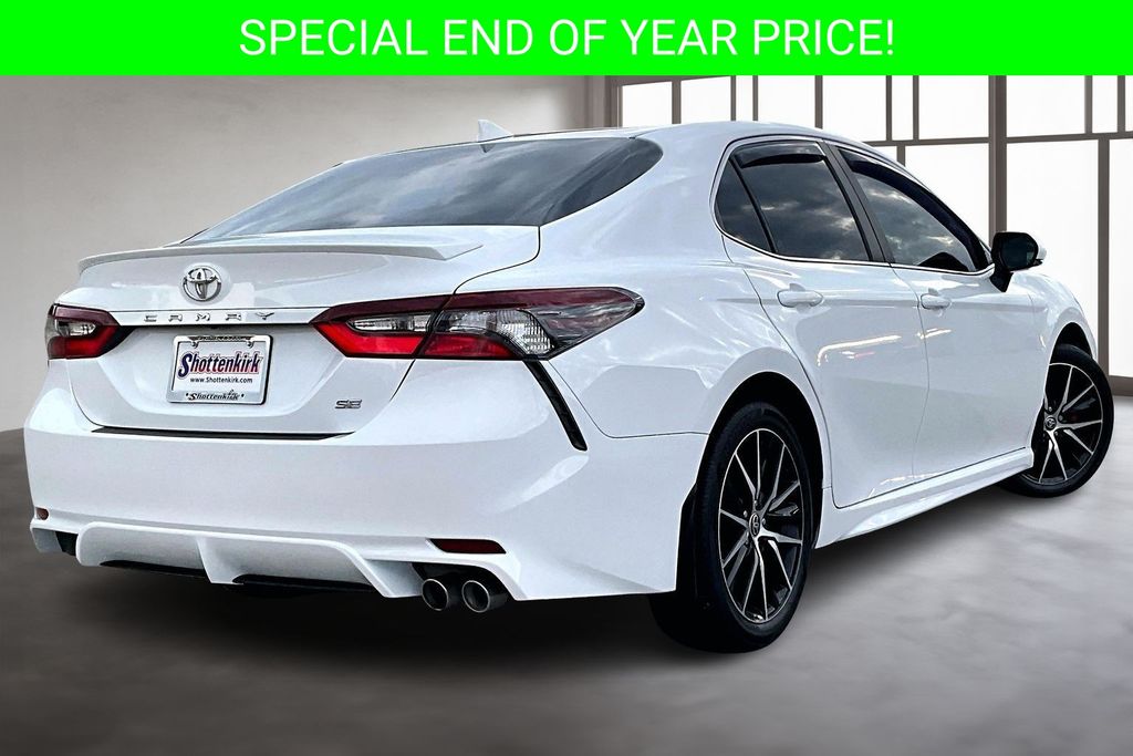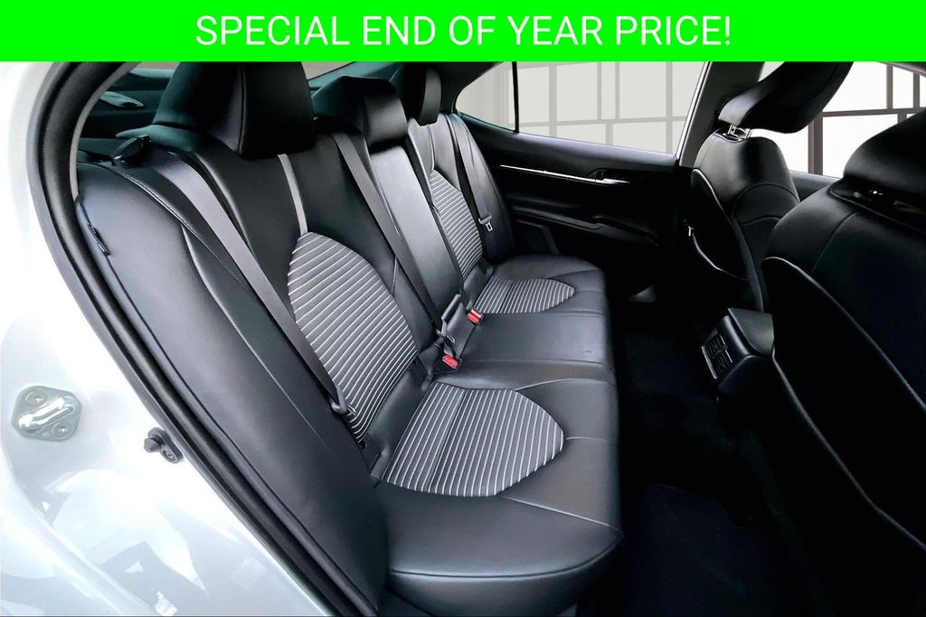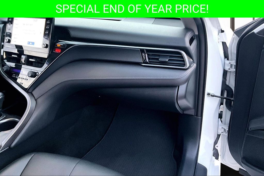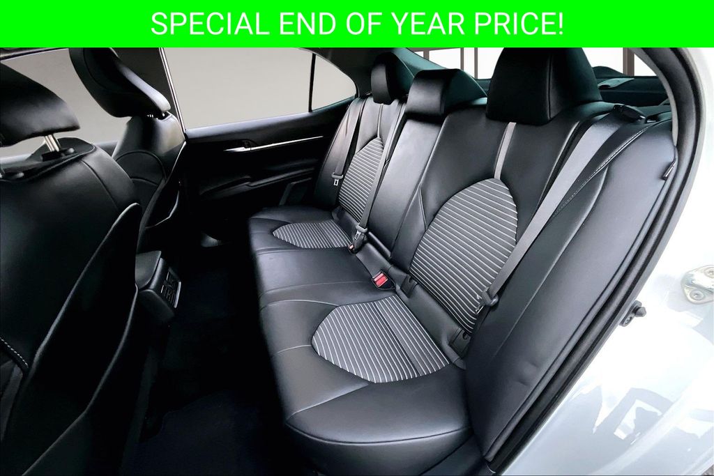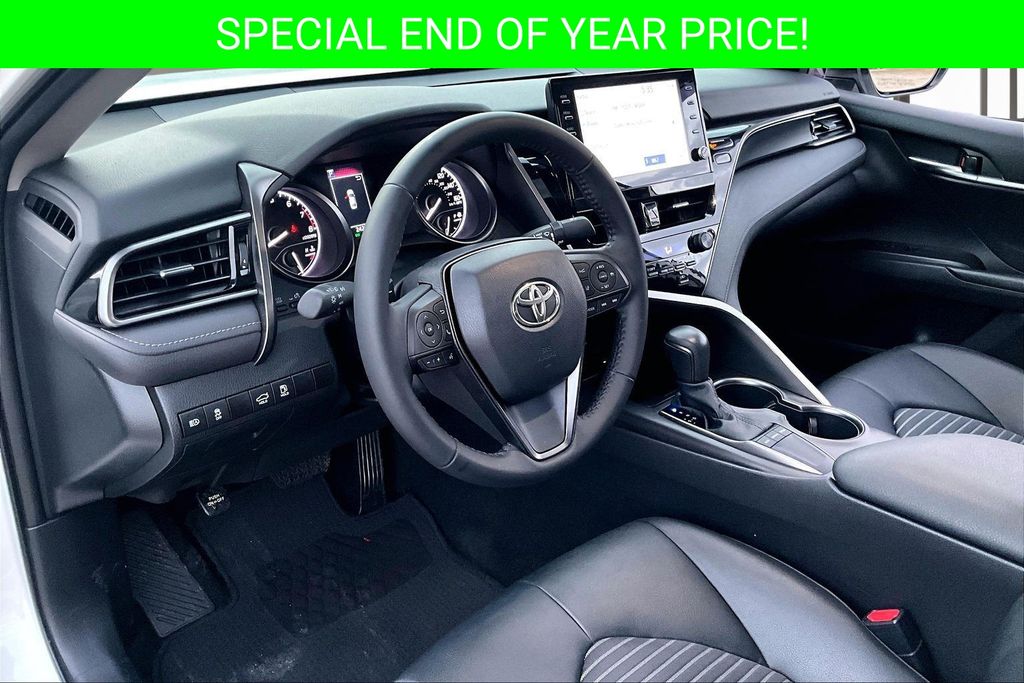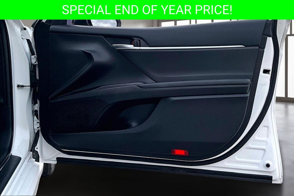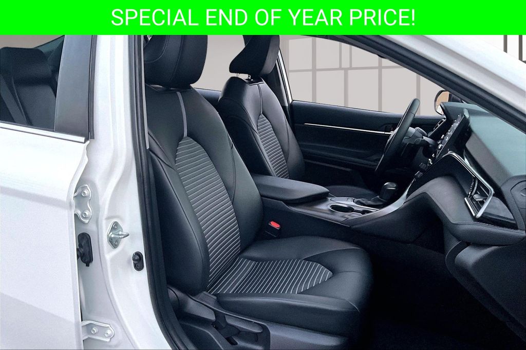 Apple CarPlay, Android Auto, Power Drivers Seat, Camry SE, 4D Sedan, 2.5L I4 DOHC 16V, 8-Speed Automatic, FWD, White, Black w/Perforated Leather Seat Trim, AM/FM radio: SiriusXM, Apple CarPlay/Android Auto, Auto High-beam Headlights, Automatic temperature control, Brake assist, Emergency communication system: Safety Connect with 1-year trial, Exterior Parking Camera Rear, Fabric Seat Trim w/Sport SofTex, Four wheel independent suspension, Front Bucket Seats, Front dual zone A/C, Heated door mirrors, Outside temperature display, Power door mirrors, Power driver seat, Power windows, Radio: AM/FM Audio System, Remote keyless entry, Spoiler, Telescoping steering wheel, Tilt steering wheel, Turn signal indicator mirrors.