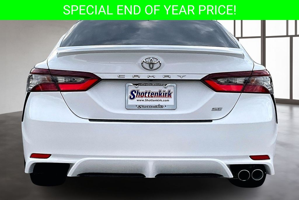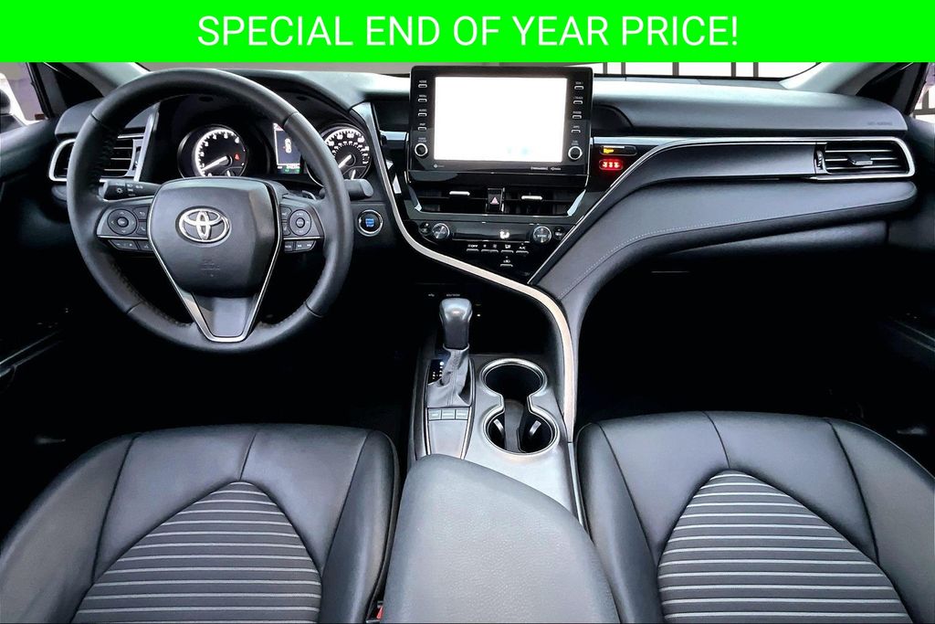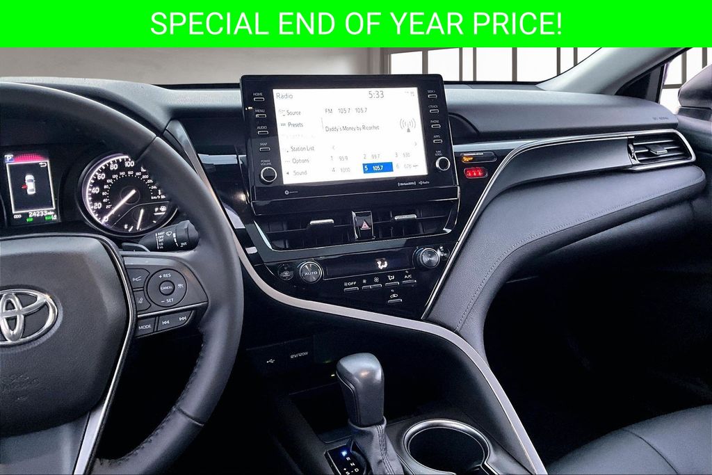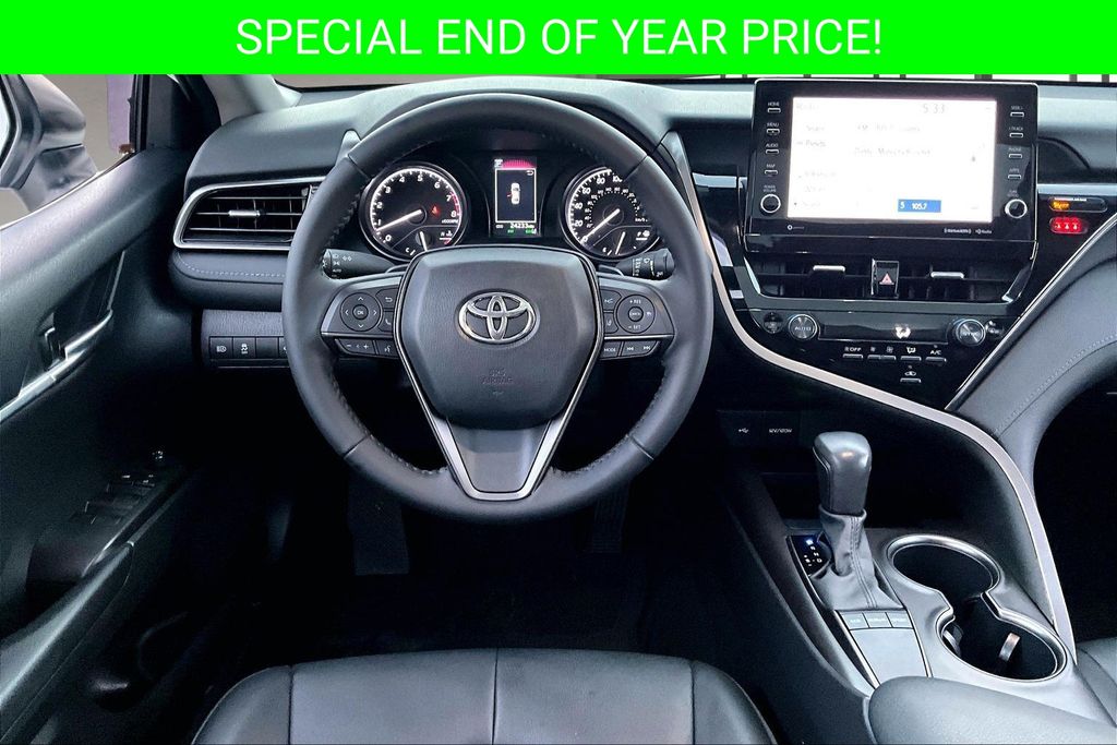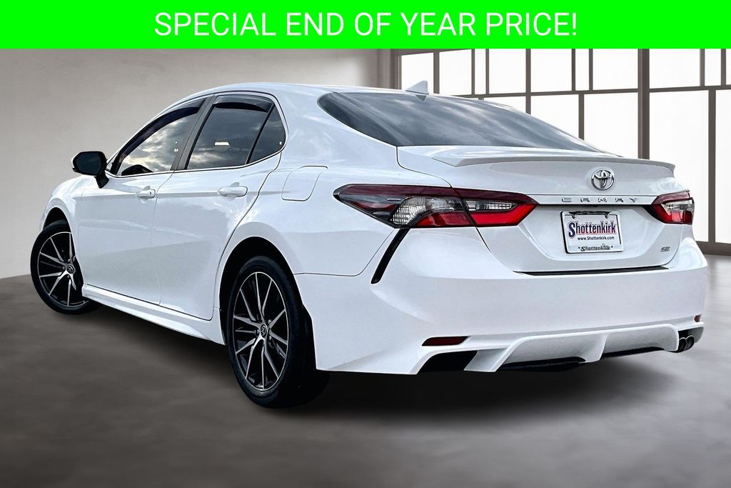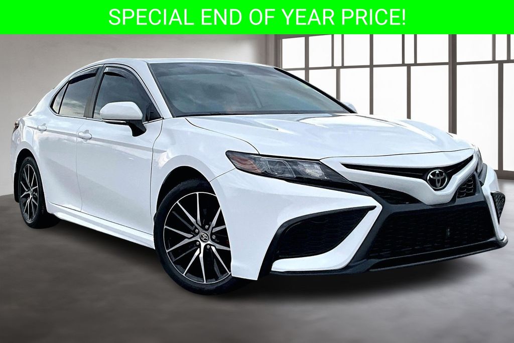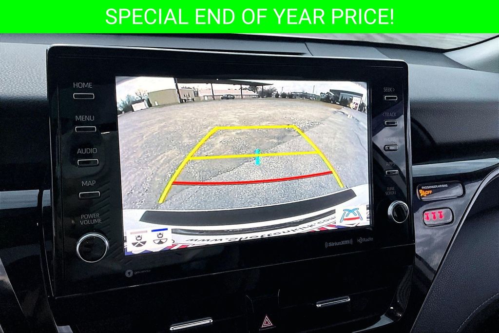 Apple CarPlay, Android Auto, Power Drivers Seat, Camry SE, 4D Sedan, 2.5L I4 DOHC 16V, 8-Speed Automatic, FWD, White, Black w/Perforated Leather Seat Trim, AM/FM radio: SiriusXM, Apple CarPlay/Android Auto, Auto High-beam Headlights, Automatic temperature control, Brake assist, Emergency communication system: Safety Connect with 1-year trial, Exterior Parking Camera Rear, Fabric Seat Trim w/Sport SofTex, Four wheel independent suspension, Front Bucket Seats, Front dual zone A/C, Heated door mirrors, Outside temperature display, Power door mirrors, Power driver seat, Power windows, Radio: AM/FM Audio System, Remote keyless entry, Spoiler, Telescoping steering wheel, Tilt steering wheel, Turn signal indicator mirrors.