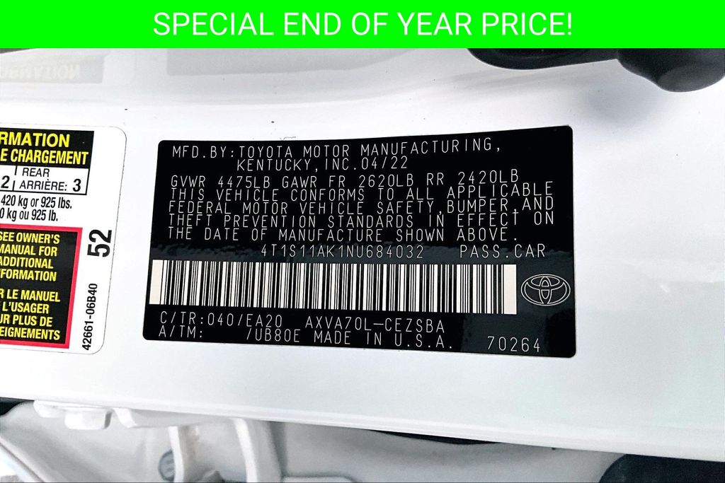 2022 Toyota Camry White 2.5L I4 DOHC 16V 8-Speed Automatic 4D Sedan SE