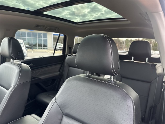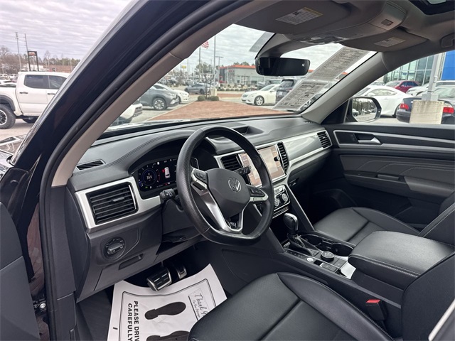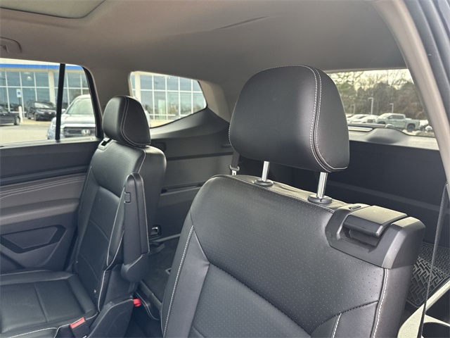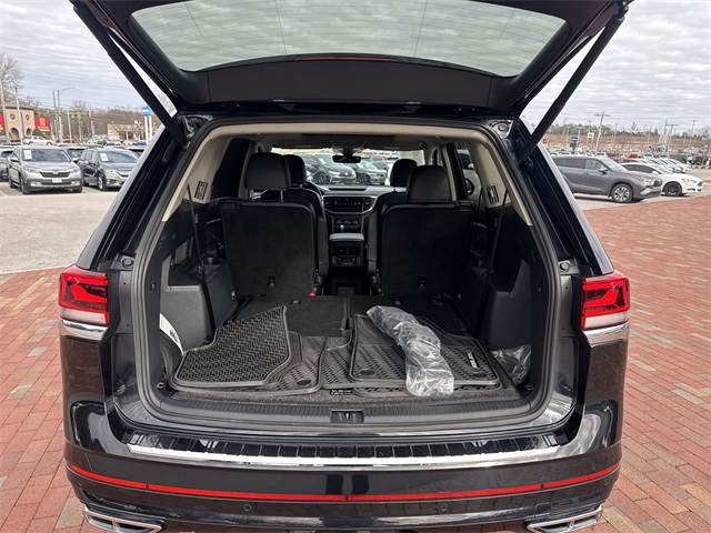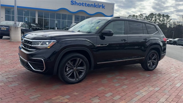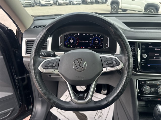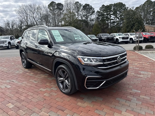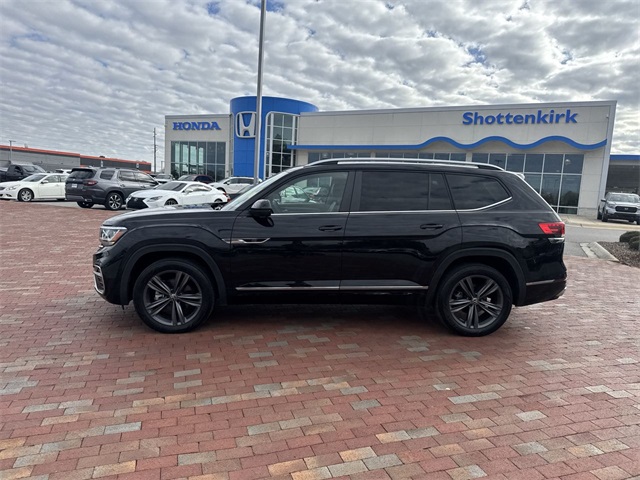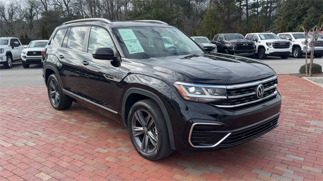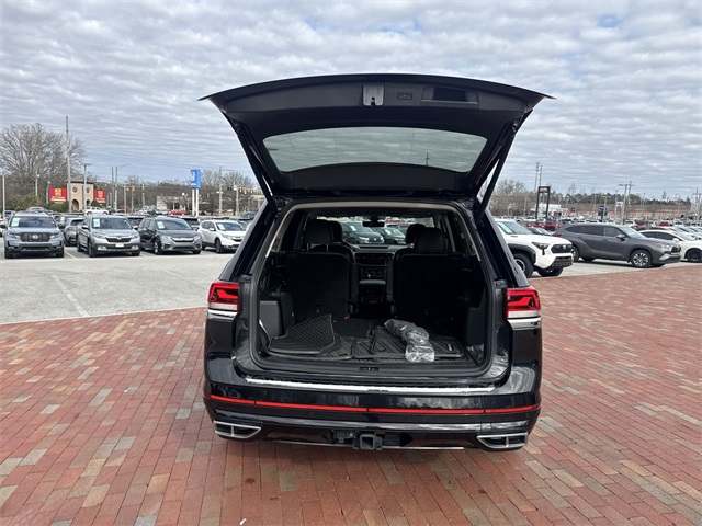 CARFAX One-Owner. 2022 Volkswagen Atlas 3.6L V6 SEL R-Line 3.6L V6 SEL R-Line Deep Black 4D Sport Utility 3.6L VR6 8-Speed Automatic with Tiptronic AWD This vehicle comes well equipped with 2nd-Row Dual Captain's Chairs, 3.60 Axle Ratio, 3rd row seats: split-bench, 4-Wheel Disc Brakes, 6 Speakers, ABS brakes, Air Conditioning, Alloy wheels, AM/FM radio: SiriusXM with 360L, Auto High-beam Headlights, Auto-Dimming Rear-View Mirror, Auto-dimming Rear-View mirror, Automatic temperature control, Brake assist, Bumpers: body-color, Carpeted Mats Kit - Captain's Chairs, Compass, Delay-off headlights, Driver door bin, Driver vanity mirror, Dual front impact airbags, Dual front side impact airbags, Electronic Stability Control, Emergency communication system, Exterior Parking Camera Rear, First Aid Kit, Four wheel independent suspension, Front anti-roll bar, Front Bucket Seats, Front Center Armrest, Front dual zone A/C, Front fog lights, Front reading lights, Fully automatic headlights, Heated Comfort Front Bucket Seats, Heated door mirrors, Heated front seats, Heated steering wheel, Illuminated entry, Leather Shift Knob, Low tire pressure warning, Memory seat, Navigation System, Occupant sensing airbag, Outside temperature display, Overhead airbag, Overhead console, Panic alarm, Passenger door bin, Passenger vanity mirror, Perforated V-Tex Leatherette Seating Surfaces, Power door mirrors, Power driver seat, Power Liftgate, Power moonroof: Panoramic, Power passenger seat, Power steering, Power windows, Privacy Cover, Radio data system, Radio: MIB3 Discover Media w/8" Touchscreen Nav, Rain sensing wipers, Rear air conditioning, Rear anti-roll bar, Rear reading lights, Rear seat center armrest, Rear window defroster, Rear window wiper, Remote keyless entry, Roadside Assistance Kit, Roof rack: rails only, Security system, Speed control, Speed-sensing steering, Split folding rear seat, Spoiler, Sport steering wheel, Standard Suspension, Steering wheel mounted audio controls, Tachometer, Telescoping steering wheel, Tilt steering wheel, Traction control, Trip computer, Trunk Liner w/VW CarGo Blocks, Turn signal indicator mirrors, Variably intermittent wipers, and Wheels: 20" x 8J Twin 5-Spoke Dark Graphite Alloy.