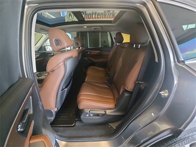 Certified. Liquid Carbon Metallic 2023 Acura MDX Technology FWD 10-Speed Automatic 3.5L V6 SOHC i-VTEC 24V 12 Speakers, 3rd row seats: split-bench, 4-Wheel Disc Brakes, 4.17 Axle Ratio, A/V remote: CabinControl, ABS brakes, Air Conditioning, Alloy wheels, AM/FM radio: SiriusXM, Anti-whiplash front head restraints, Apple CarPlay/Android Auto, Audio memory, Auto High-beam Headlights, Auto tilt-away steering wheel, Auto-dimming Rear-View mirror, Automatic temperature control, Brake assist, Bumpers: body-color, Compass, Delay-off headlights, Driver door bin, Driver vanity mirror, Dual front impact airbags, Dual front side impact airbags, Electronic Stability Control, Emergency communication system: AcuraLink, Exterior Parking Camera Rear, Four wheel independent suspension, Front anti-roll bar, Front Bucket Seats, Front Center Armrest, Front dual zone A/C, Front reading lights, Fully automatic headlights, Garage door transmitter: HomeLink, Heated door mirrors, Heated front seats, Heated Front Sport Seats, HVAC memory, Illuminated entry, Knee airbag, Lane departure: Lane Keeping Assist System (LKAS) active, Leather steering wheel, Low tire pressure warning, Memory seat, Navigation system: Acura Navigation System with 3D View, Occupant sensing airbag, Outside temperature display, Overhead airbag, Overhead console, Panic alarm, Passenger door bin, Passenger vanity mirror, Perforated Premium Milano Leather Trimmed Seats, Power door mirrors, Power driver seat, Power Liftgate, Power moonroof, Power passenger seat, Power steering, Power windows, Premium audio system: Acura/ELS Surround, Radio data system, Radio: ELS Studio Premium Audio System, Rain sensing wipers, Rear air conditioning, Rear anti-roll bar, Rear reading lights, Rear seat center armrest, Rear window defroster, Rear window wiper, Remote keyless entry, Security system, Speed control, Speed-sensing steering, Speed-Sensitive Wipers, Split folding rear seat, Spoiler, Steering wheel memory, Steering wheel mounted audio controls, Tachometer, Telescoping steering wheel, Tilt steering wheel, Traction control, Trip computer, Turn signal indicator mirrors, Variably intermittent wipers, Wheels: 20" x 9" Aluminum Alloy.