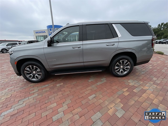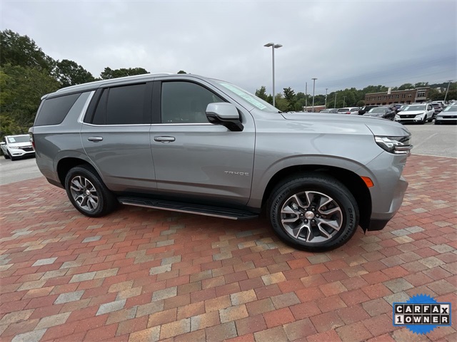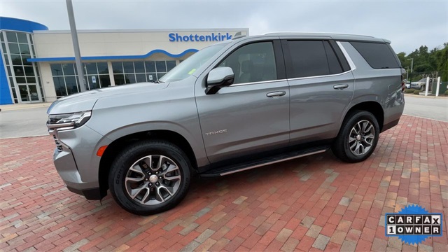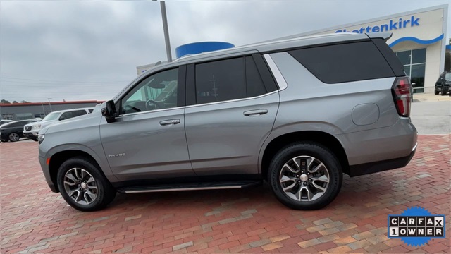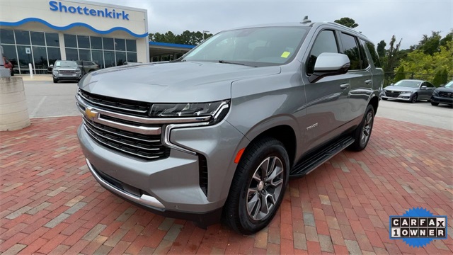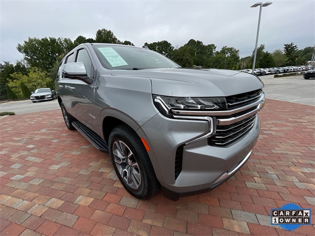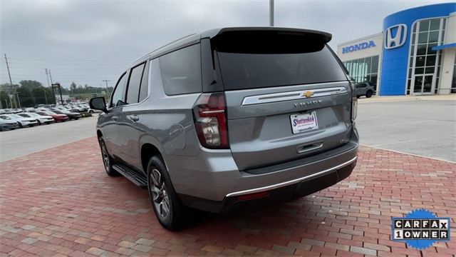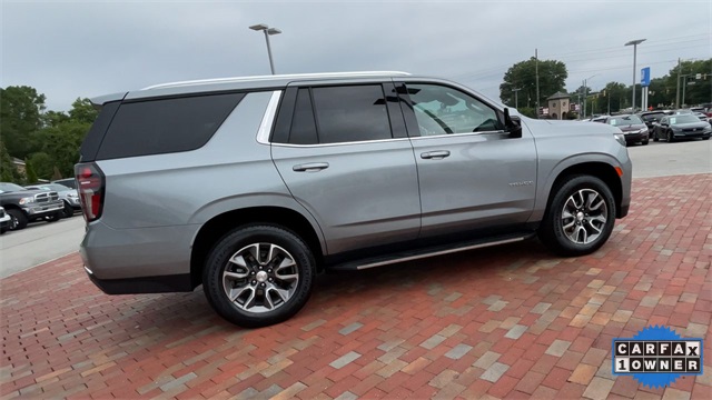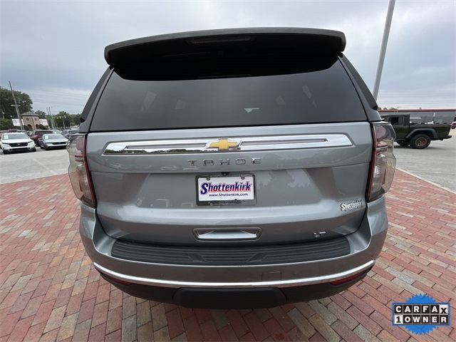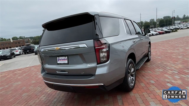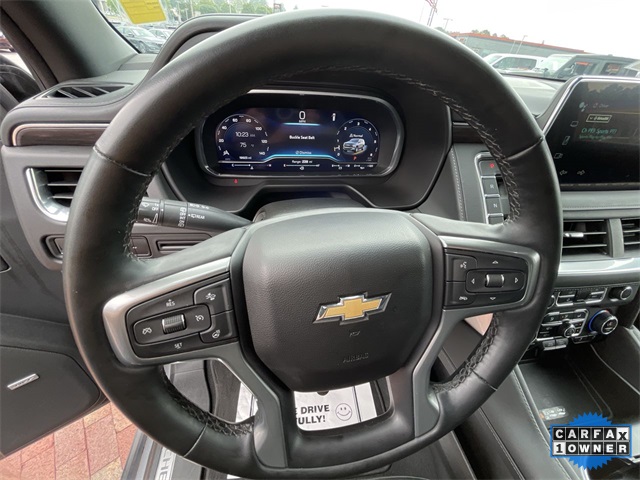 CARFAX One-Owner. 2023 Chevrolet Tahoe LT LT Sterling Gray Metallic 4D Sport Utility EcoTec3 5.3L V8 10-Speed Automatic with Overdrive RWD This vehicle comes well equipped with Driver Alert Package (Lane Change Alert w/Side Blind Zone Alert and Rear Cross Traffic Alert), License Plate Front Mounting Package, Luxury Package (2nd Row Pwr Release 60/40 Split-Folding Bench Seat, 3rd Row 60/40 Power-Folding Split-Bench Seat, HD Surround Vision, Heated 2nd Row Outboard Seats, Heated Steering Wheel, Memory Settings, Outside Heated Power-Adjustable Mirrors, Power Tilt & Telescopic Steering Column, and Rear Pedestrian Alert), Preferred Equipment Group 1LT (1st & 2nd Row Color-Keyed Carpeted Floor Mats, Auto-Dimming Inside Rear-View Mirror, Bose 9-Speaker Stereo Audio System Feature, Bright Front & Rear Door Sill Plates, Color-Keyed Carpeting Floor Covering, Driver & Front Outboard Passenger Airbags, Enhanced Driver Information Center, Floor Console w/Storage Area, Hands-Free Rear Power Programmable Liftgate, Infotainment Display, LED Daytime Running Lamps, Memory Settings for Driver, Remote Start, SiriusXM Radio w/360L, Universal Home Remote, Wireless Charging, and Wrapped Steering Wheel), 10-Way Power Driver & Passenger Seat Adjusters, 3.23 Rear Axle Ratio, 3rd row seats: split-bench, 4-Wheel Disc Brakes, 9 Speakers, ABS brakes, Air Conditioning, Alloy wheels, AM/FM radio: SiriusXM with 360L, Apple CarPlay/Android Auto, Auto High-beam Headlights, Auto-dimming Rear-View mirror, Automatic temperature control, Brake assist, Bumpers: body-color, Compass, Delay-off headlights, Deleted 3 Years of Remote Access, Driver door bin, Driver vanity mirror, Dual front impact airbags, Dual front side impact airbags, Electronic Stability Control, Emergency communication system: OnStar and Chevrolet connected services capable, Four wheel independent suspension, Front anti-roll bar, Front Bucket Seats, Front Center Armrest, Front dual zone A/C, Front High-Back Reclining Bucket Seats, Front reading lights, Fully automatic headlights, Garage door transmitter, Heated door mirrors, Heated Driver & Front Passenger Seats, Heated front seats, Illuminated entry, Leather-Appointed Seat Trim, Low tire pressure warning, Memory seat, Navigation System, Occupant sensing airbag, Outside temperature display, Overhead airbag, Overhead console, Panic alarm, Passenger door bin, Passenger vanity mirror, Power door mirrors, Power driver seat, Power Liftgate, Power passenger seat, Power steering, Power windows, Premium audio system: Chevrolet Infotainment 3 Premium, Premium Smooth Ride Suspension, Radio: Chevrolet Infotainment 3 Premium System, Rain sensing wipers, Rear air conditioning, Rear anti-roll bar, Rear reading lights, Rear seat center armrest, Rear window defroster, Rear window wiper, Remote keyless entry, Roof rack: rails only, Security system, Speed control, Speed-sensing steering, Split folding rear seat, Spoiler, Steering wheel mounted audio controls, Tachometer, Telescoping steering wheel, Tilt steering wheel, Traction control, Trip computer, Variably intermittent wipers, Voltmeter, Wheels: 18" x 8.5" Bright Silver Painted Aluminum, and Wheels: 20" x 9" Painted Aluminum.