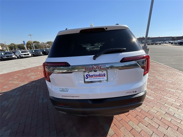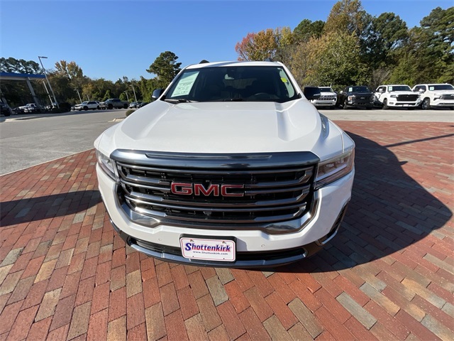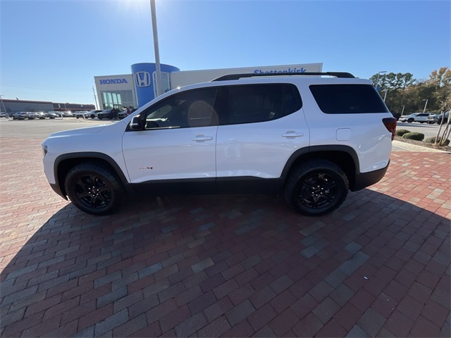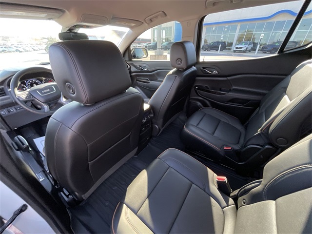 Recent Arrival! CARFAX One-Owner. 2023 GMC Acadia AT4 AT4 White Frost Tricoat 4D Sport Utility 3.6L V6 SIDI 9-Speed Automatic AWD This vehicle comes well equipped with Preferred Equipment Group 4SB, Technology Package (8" Multi-Color Enhanced Dr Instrument Info Display, HD Surround Vision, and Heads-Up Display), and Trailering Package (170 Amp Alternator, Heavy-Duty Cooling System, Hitch Guidance w/Hitch View, and Trailering Assist Guidelines) Preferred Equipment Group 4SB, Technology Package (8" Multi-Color Enhanced Dr Instrument Info Display, HD Surround Vision, and Heads-Up Display), Trailering Package (170 Amp Alternator, Heavy-Duty Cooling System, Hitch Guidance w/Hitch View, and Trailering Assist Guidelines), Cargo Package (LPO) (Cargo Net and Retractable Cargo Shade), Floor Liner Package (LPO) (1st & 2nd Row All-Weather Floor Liner (LPO), 3rd Row All-Weather Floor Liner (LPO), and Integrated Cargo Liner (LPO)), Luxury Package (8-Way Power Passenger Seat Adjuster, Heated & Ventilated Driver & Front Passenger Seats, Heated Rear Outboard Seating Positions, Power Passenger Lumbar Control Seat Adjuster, Power Tilt & Telescopic Steering Column, and Power-Adjustable Body-Color Outside Heated Mirrors), Memory Package, Preferred Package (Heated Steering Wheel), 3.49 Final Drive Axle Ratio, 3rd row seats: split-bench, 4-Way Manual Passenger Seat Adjuster, 4-Wheel Disc Brakes, 6-Passenger (2-2-2 Seating Configuration), 8 Speakers, 8-Way Power Driver Seat Adjuster, ABS brakes, Air Conditioning, Alloy wheels, AM/FM radio: SiriusXM with 360L, Apple CarPlay/Android Auto, Auto High-beam Headlights, Auto-dimming Rear-View mirror, Automatic temperature control, Bose Premium 8-Speaker Audio System Feature, Brake assist, Bumpers: body-color, Compass, Delay-off headlights, Driver door bin, Driver vanity mirror, Dual front impact airbags, Dual front side impact airbags, Electronic Stability Control, Emergency communication system: OnStar and GMC connected services capable, Four wheel independent suspension, Front anti-roll bar, Front Bucket Seats, Front Center Armrest, Front dual zone A/C, Front fog lights, Front License Plate Bracket, Front reading lights, Fully automatic headlights, Garage door transmitter, Heated door mirrors, Heated Driver & Front Passenger Seats, Heated front seats, Illuminated entry, Knee airbag, Low tire pressure warning, Navigation System, Occupant sensing airbag, Outside temperature display, Overhead airbag, Overhead console, Panic alarm, Passenger door bin, Passenger vanity mirror, Power door mirrors, Power Driver Lumbar Control Seat Adjuster, Power driver seat, Power Liftgate, Power steering, Power windows, Premium Cloth Seat Trim, Radio data system, Radio: AM/FM 8" Diagonal Multi-Touch Navigation, Rear air conditioning, Rear anti-roll bar, Rear reading lights, Rear window defroster, Rear window wiper, Remote keyless entry, Roof rack: rails only, Security system, SiriusXM w/360L, Speed control, Speed-sensing steering, Spoiler, Steering wheel mounted audio controls, Tachometer, Telescoping steering wheel, Tilt steering wheel, Traction control, Trip computer, Turn signal indicator mirrors, Variably intermittent wipers, Voltmeter, Wheels: 17" Gloss Black Aluminum, and Wireless Apple CarPlay/Wireless Android Auto.