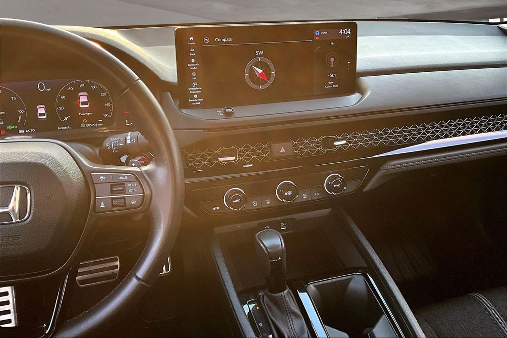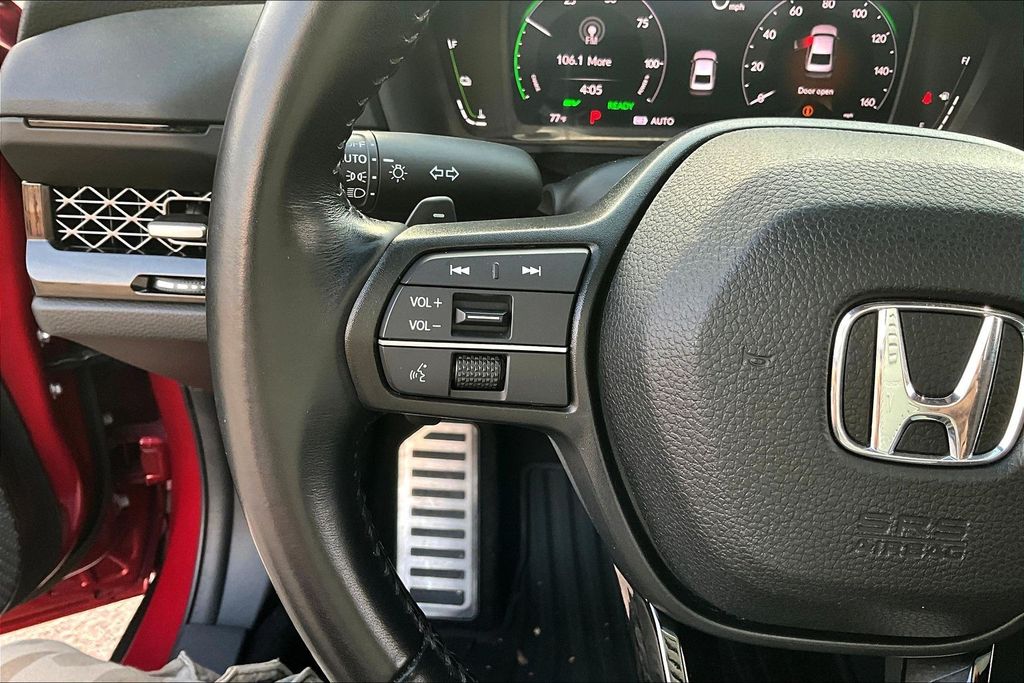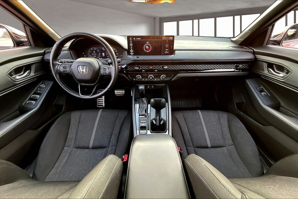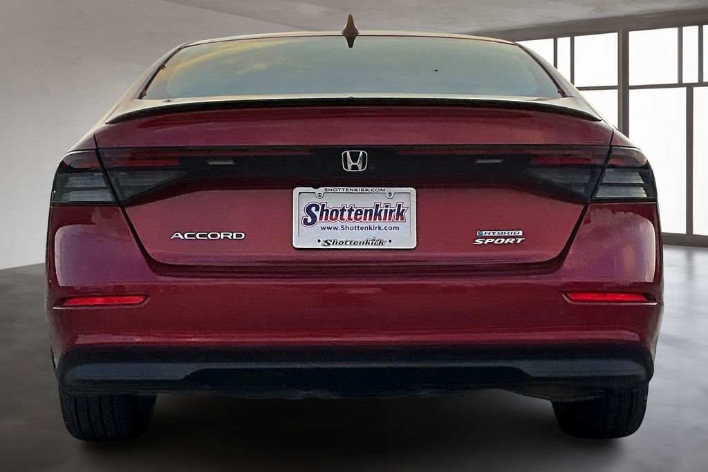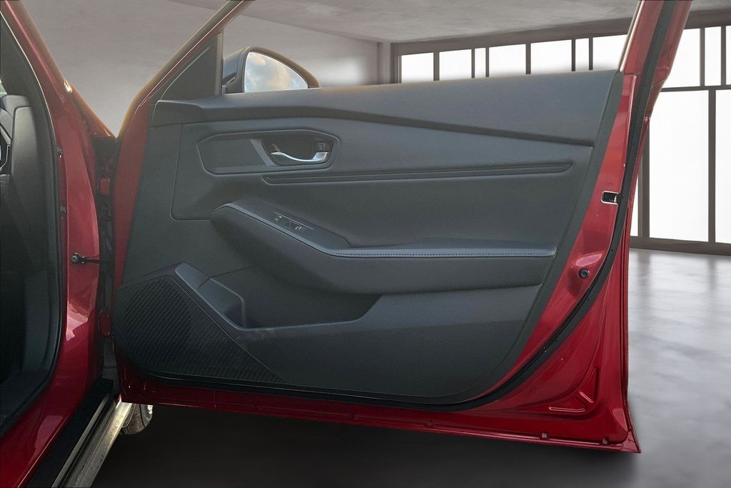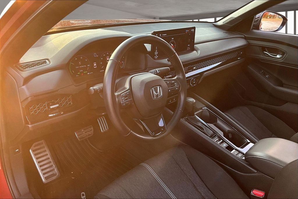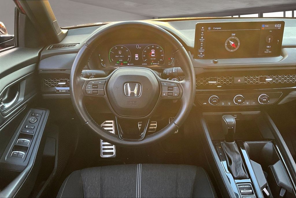 Accord Hybrid Sport, 4D Sedan, 2.0L 16V DOHC, FWD, Red, Black w/Fabric Seat Trim, 8 Speakers, Adaptive Cruise Control: Adaptive Cruise Control (ACC) with Low-Speed Follow, Apple CarPlay/Android Auto, Auto High-beam Headlights, Automatic temperature control, Brake assist, Emergency communication system: HondaLink, Exterior Parking Camera Rear, Fabric Seat Trim, Four wheel independent suspension, Front Bucket Seats, Front dual zone A/C, Lane departure: Lane Keeping Assist System (LKAS) active, Leather steering wheel, Outside temperature display, Power door mirrors, Power driver seat, Power moonroof, Radio: 180-Watt Audio System, Remote keyless entry, Spoiler, Telescoping steering wheel, Tilt steering wheel, Wheels: 19" x 8.5J Berlina Black.