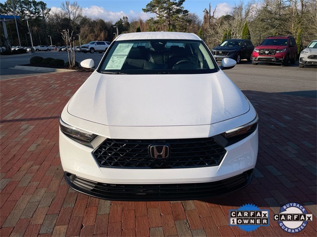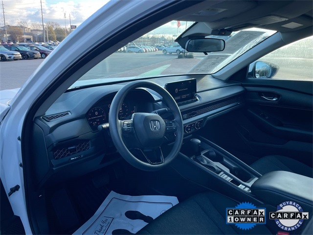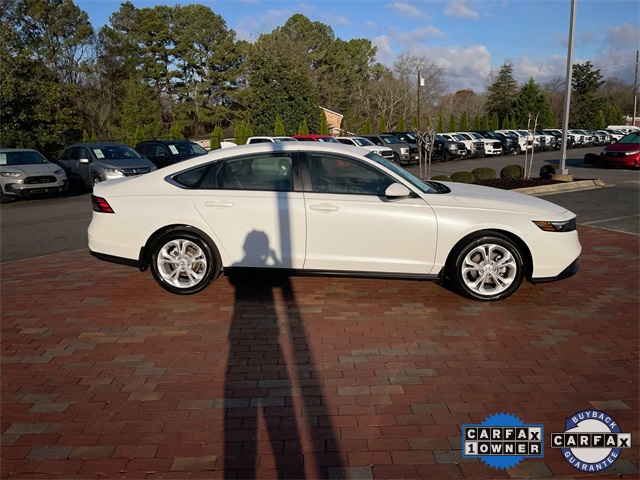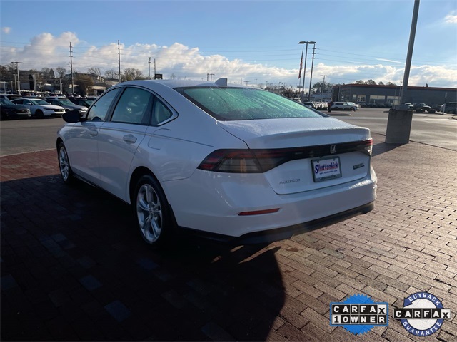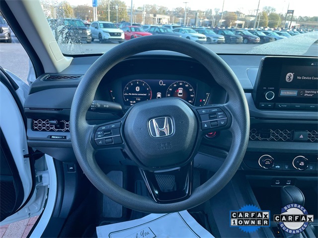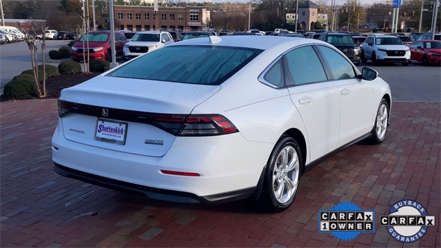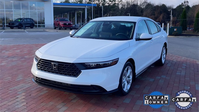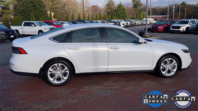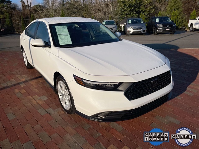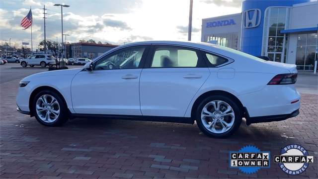 CARFAX One-Owner. Certified. 2023 Honda Accord LX LX Platinum White Pearl 4D Sedan 1.5T I4 DOHC 16V Turbocharged VTEC CVT FWD This vehicle comes well equipped with 4 Speakers, 4-Wheel Disc Brakes, ABS brakes, Adaptive Cruise Control: Adaptive Cruise Control (ACC) with Low-Speed Follow, Air Conditioning, Alloy wheels, AM/FM radio, Apple CarPlay/Android Auto, Auto High-beam Headlights, Automatic temperature control, Brake assist, Bumpers: body-color, Compass, Delay-off headlights, Driver door bin, Driver vanity mirror, Dual front impact airbags, Dual front side impact airbags, Electronic Stability Control, Emergency communication system: HondaLink Assist, Exterior Parking Camera Rear, Fabric Seat Trim, Four wheel independent suspension, Front anti-roll bar, Front Bucket Seats, Front Center Armrest, Front reading lights, Fully automatic headlights, Illuminated entry, Knee airbag, Lane departure: Lane Keeping Assist System (LKAS) active, Low tire pressure warning, Occupant sensing airbag, Outside temperature display, Overhead airbag, Overhead console, Panic alarm, Passenger door bin, Passenger vanity mirror, Power door mirrors, Power steering, Power windows, Radio data system, Radio: 160-Watt AM/FM Audio System, Rear anti-roll bar, Rear reading lights, Rear seat center armrest, Rear side impact airbag, Rear window defroster, Remote keyless entry, Security system, Speed control, Speed-sensing steering, Speed-Sensitive Wipers, Steering wheel mounted audio controls, Tachometer, Telescoping steering wheel, Tilt steering wheel, Traction control, Trip computer, Variably intermittent wipers, and Wheels: 17" x 7.5" Blade Silver.