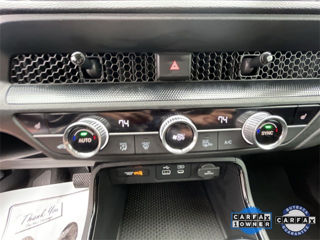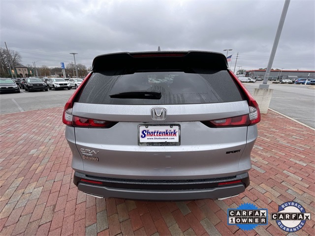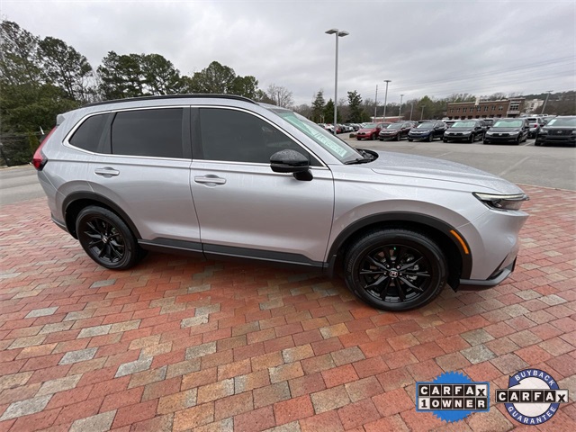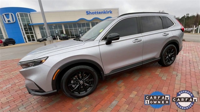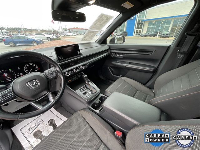 CARFAX One-Owner. Certified. 2023 Honda CR-V Hybrid Sport Sport Lunar Silver Metallic 4D Sport Utility 2.0L I4 DOHC 16V eCVT FWD This vehicle comes well equipped with 4-Wheel Disc Brakes, 4.438 Axle Ratio, 6 Speakers, ABS brakes, Adaptive Cruise Control: Adaptive Cruise Control (ACC) with Low-Speed Follow, Air Conditioning, Alloy wheels, Apple CarPlay/Android Auto, Auto High-beam Headlights, Automatic temperature control, Brake assist, Bumpers: body-color, Cloth Seat Trim, Compass, Delay-off headlights, Driver door bin, Driver vanity mirror, Dual front impact airbags, Dual front side impact airbags, Electronic Stability Control, Exterior Parking Camera Rear, Four wheel independent suspension, Front anti-roll bar, Front Bucket Seats, Front Center Armrest, Front dual zone A/C, Front reading lights, Fully automatic headlights, Heated door mirrors, Heated Front Bucket Seats, Heated front seats, Illuminated entry, Knee airbag, Leather Shift Knob, Leather steering wheel, Low tire pressure warning, Occupant sensing airbag, Outside temperature display, Overhead airbag, Overhead console, Panic alarm, Passenger door bin, Passenger vanity mirror, Power door mirrors, Power driver seat, Power moonroof, Power steering, Power windows, Radio data system, Radio: 240-Watt AM/FM Audio System, Rear anti-roll bar, Rear reading lights, Rear seat center armrest, Rear side impact airbag, Rear window defroster, Rear window wiper, Remote keyless entry, Security system, Speed control, Speed-sensing steering, Speed-Sensitive Wipers, Split folding rear seat, Spoiler, Steering wheel mounted audio controls, Telescoping steering wheel, Tilt steering wheel, Traction control, Trip computer, Turn signal indicator mirrors, Variably intermittent wipers, and Wheels: 18" Berlina Black Alloy.