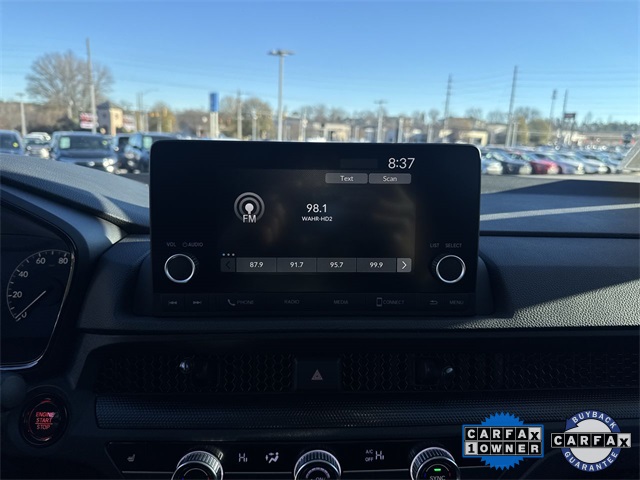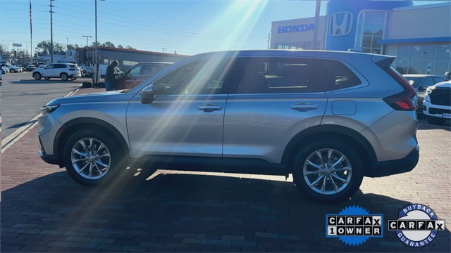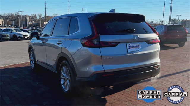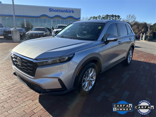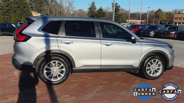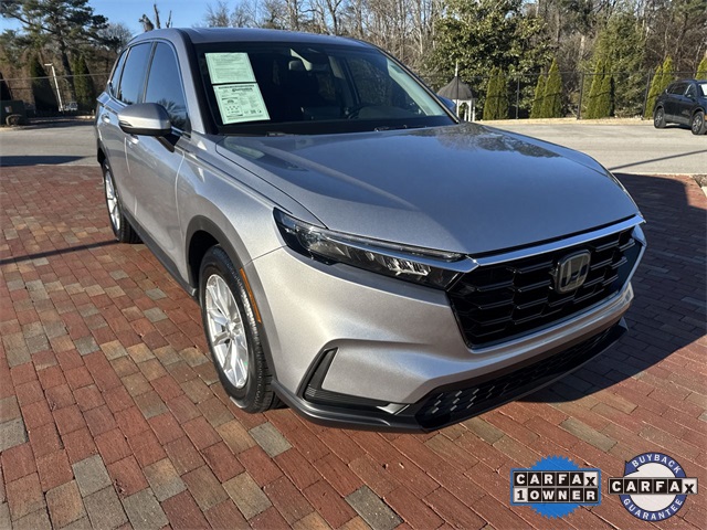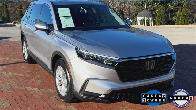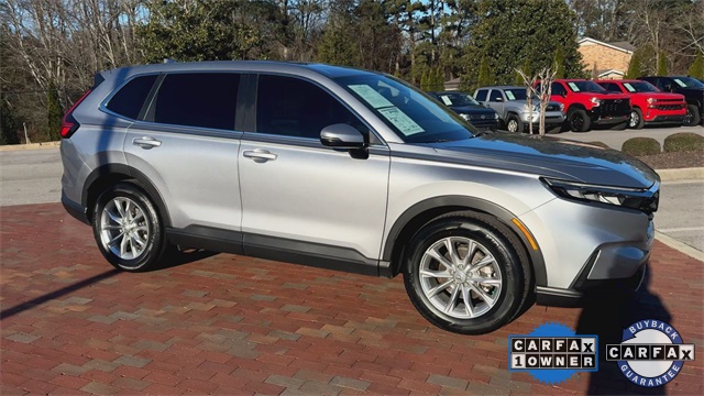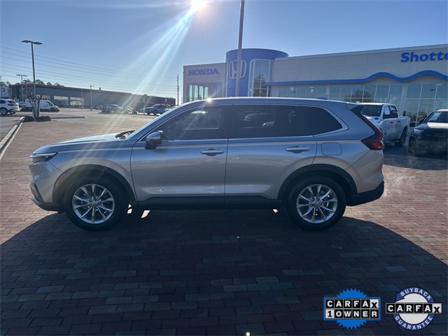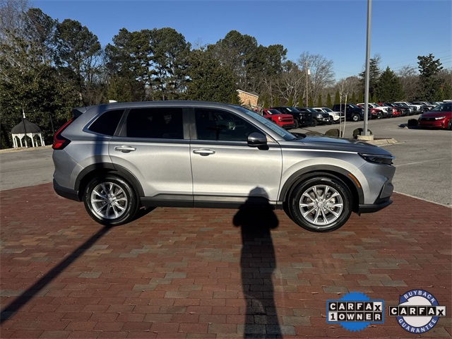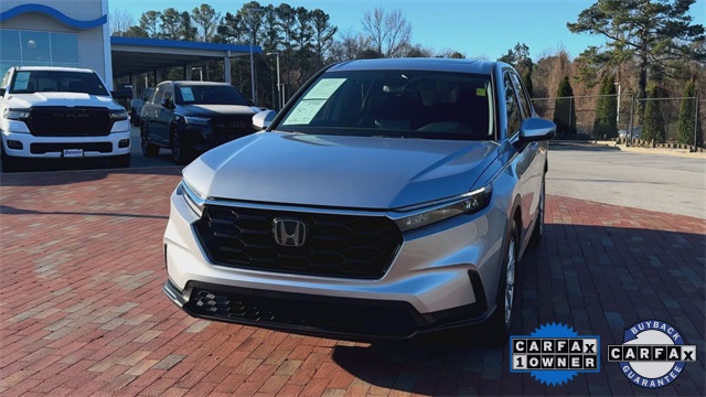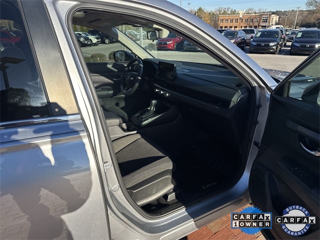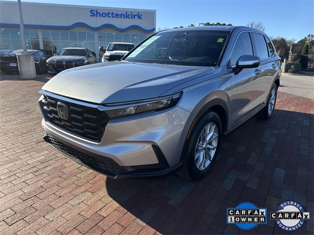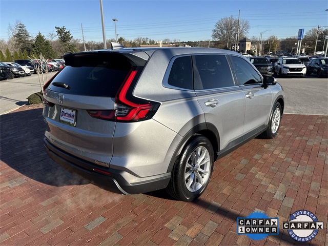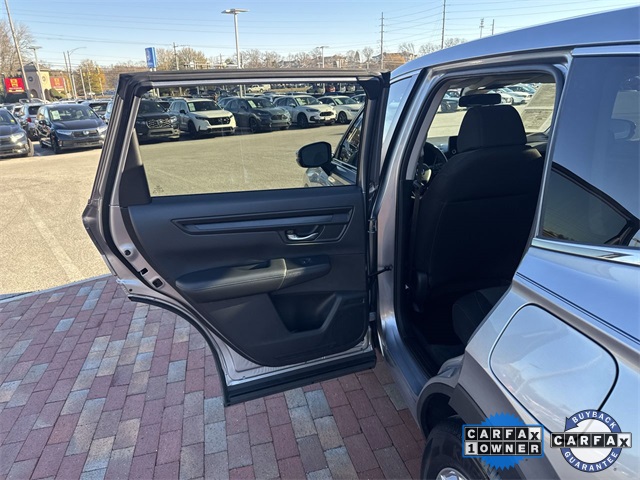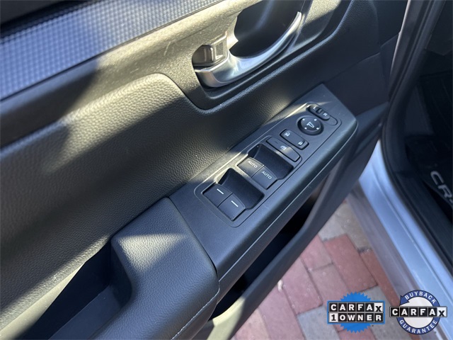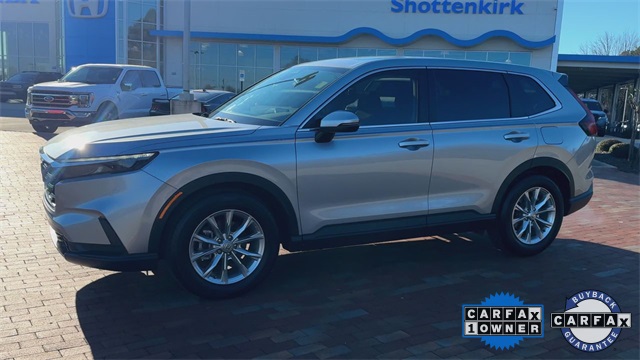 CARFAX One-Owner. Certified. 2023 Honda CR-V EX EX Lunar Silver Metallic 4D Sport Utility 1.5L I4 DOHC 16V CVT FWD This vehicle comes well equipped with 4-Wheel Disc Brakes, 5.64 Axle Ratio, 6 Speakers, ABS brakes, Adaptive Cruise Control: Adaptive Cruise Control (ACC) with Low-Speed Follow, Air Conditioning, Alloy wheels, Apple CarPlay/Android Auto, Auto High-beam Headlights, Automatic temperature control, Brake assist, Bumpers: body-color, Cloth Seat Trim, Compass, Delay-off headlights, Driver door bin, Driver vanity mirror, Dual front impact airbags, Dual front side impact airbags, Electronic Stability Control, Exterior Parking Camera Rear, Four wheel independent suspension, Front anti-roll bar, Front Bucket Seats, Front Center Armrest, Front dual zone A/C, Front reading lights, Fully automatic headlights, Heated door mirrors, Heated Front Bucket Seats, Heated front seats, Illuminated entry, Knee airbag, Low tire pressure warning, Occupant sensing airbag, Outside temperature display, Overhead airbag, Overhead console, Panic alarm, Passenger door bin, Passenger vanity mirror, Power door mirrors, Power driver seat, Power moonroof, Power steering, Power windows, Radio data system, Radio: 240-Watt AM/FM Audio System, Rear anti-roll bar, Rear reading lights, Rear seat center armrest, Rear side impact airbag, Rear window defroster, Rear window wiper, Remote keyless entry, Security system, Speed control, Speed-sensing steering, Speed-Sensitive Wipers, Split folding rear seat, Spoiler, Steering wheel mounted audio controls, Tachometer, Telescoping steering wheel, Tilt steering wheel, Traction control, Trip computer, Turn signal indicator mirrors, Variably intermittent wipers, and Wheels: 18" Sparkle Silver Metallic.