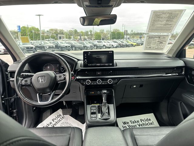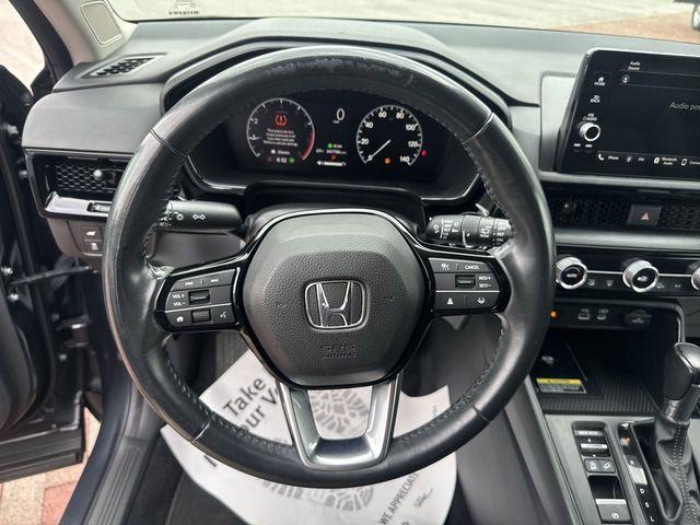 CARFAX One-Owner. Certified. 2023 Honda CR-V EX-L EX-L Meteorite Gray Metallic 4D Sport Utility 1.5L I4 DOHC 16V CVT FWD This vehicle comes well equipped with 4-Wheel Disc Brakes, 5.64 Axle Ratio, 8 Speakers, ABS brakes, Adaptive Cruise Control: Adaptive Cruise Control (ACC) with Low-Speed Follow, Air Conditioning, Alloy wheels, AM/FM radio: SiriusXM, Auto High-beam Headlights, Auto-dimming Rear-View mirror, Automatic temperature control, Brake assist, Bumpers: body-color, Compass, Delay-off headlights, Driver door bin, Driver vanity mirror, Dual front impact airbags, Dual front side impact airbags, Electronic Stability Control, Exterior Parking Camera Rear, Four wheel independent suspension, Front anti-roll bar, Front Bucket Seats, Front Center Armrest, Front dual zone A/C, Front reading lights, Fully automatic headlights, Heated door mirrors, Heated Front Bucket Seats, Heated front seats, Illuminated entry, Knee airbag, Leather Seat Trim, Leather Shift Knob, Leather steering wheel, Low tire pressure warning, Memory seat, Occupant sensing airbag, Outside temperature display, Overhead airbag, Overhead console, Panic alarm, Passenger door bin, Passenger vanity mirror, Power door mirrors, Power driver seat, Power Liftgate, Power moonroof, Power passenger seat, Power steering, Power windows, Radio data system, Radio: 320-Watt AM/FM/HD/SiriusXM Audio System, Rear anti-roll bar, Rear reading lights, Rear seat center armrest, Rear side impact airbag, Rear window defroster, Rear window wiper, Remote keyless entry, Security system, Speed control, Speed-sensing steering, Speed-Sensitive Wipers, Split folding rear seat, Spoiler, Steering wheel mounted audio controls, Tachometer, Telescoping steering wheel, Tilt steering wheel, Traction control, Trip computer, Turn signal indicator mirrors, Variably intermittent wipers, Wheels: 18" Sparkle Silver Metallic, and Wireless Apple CarPlay/Wireless Android Auto.