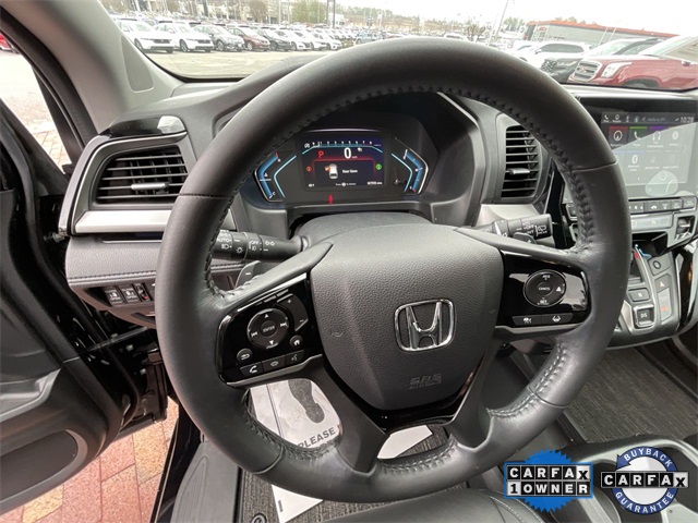 CARFAX One-Owner. Certified. 2023 Honda Odyssey Touring Touring Crystal Black Pearl 4D Passenger Van 3.5L V6 SOHC i-VTEC 24V 10-Speed Automatic FWD This vehicle comes well equipped with 3.61 Axle Ratio, 3rd row seats: split-bench, 4-Wheel Disc Brakes, 7 Speakers, A/V remote: CabinControl, ABS brakes, Adaptive Cruise Control: Adaptive Cruise Control (ACC) with Low-Speed Follow, Air Conditioning, Alloy wheels, AM/FM radio: SiriusXM, Anti-whiplash front head restraints, Apple CarPlay/Android Auto, Auto High-beam Headlights, Auto-dimming Rear-View mirror, Automatic temperature control, Blind Spot Information (BSI) System warning, Brake assist, Bumpers: body-color, CD player, Compass, Delay-off headlights, Driver door bin, Driver vanity mirror, Driver's Seat Mounted Armrest, Dual front impact airbags, Dual front side impact airbags, DVD-Audio, Electronic Stability Control, Emergency communication system: HondaLink, Exterior Parking Camera Rear, Four wheel independent suspension, Front anti-roll bar, Front Bucket Seats, Front dual zone A/C, Front fog lights, Front reading lights, Fully automatic headlights, Garage door transmitter: HomeLink, Headphones, Heated door mirrors, Heated Front Bucket Seats, Heated front seats, Illuminated entry, Knee airbag, Lane departure: Lane Keeping Assist System (LKAS) active, Leather Seat Trim, Leather steering wheel, Low tire pressure warning, Memory seat, Navigation system: Honda Satellite-Linked Navigation System, Occupant sensing airbag, Outside temperature display, Overhead airbag, Overhead console, Panic alarm, Passenger door bin, Passenger seat mounted armrest, Passenger vanity mirror, Power door mirrors, Power driver seat, Power Liftgate, Power moonroof, Power passenger seat, Power steering, Power windows, Radio data system, Radio: 160-Watt AM/FM/HD/SiriusXM Audio System, Rear air conditioning, Rear anti-roll bar, Rear audio controls, Rear reading lights, Rear seat center armrest, Rear window defroster, Rear window wiper, Reclining 3rd row seat, Remote keyless entry, Security system, Speed control, Speed-sensing steering, Speed-Sensitive Wipers, Split folding rear seat, Spoiler, Steering wheel mounted audio controls, Tachometer, Telescoping steering wheel, Tilt steering wheel, Traction control, Trip computer, Turn signal indicator mirrors, Variably intermittent wipers, and Wheels: 19" Machine-Finished Alloy.