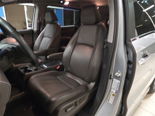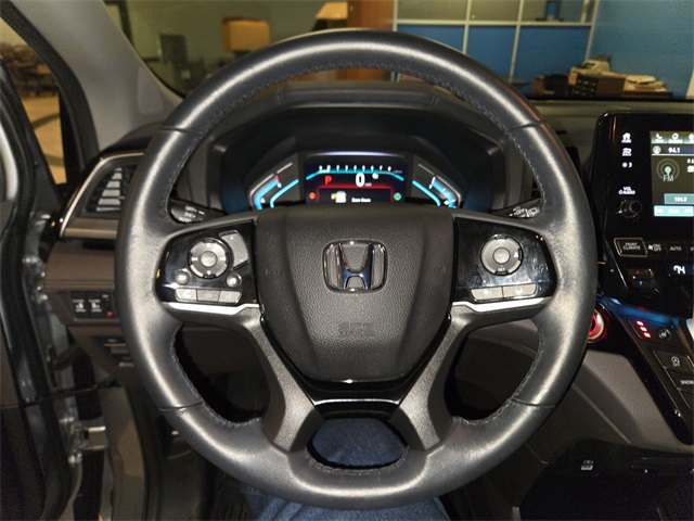 Sonic Gray Pearl 2023 Honda Odyssey Touring FWD 10-Speed Automatic 3.5L V6 SOHC i-VTEC 24V 3.61 Axle Ratio, 3rd row seats: split-bench, 4-Wheel Disc Brakes, 7 Speakers, A/V remote: CabinControl, ABS brakes, Adaptive Cruise Control: Adaptive Cruise Control (ACC) with Low-Speed Follow, Air Conditioning, Alloy wheels, AM/FM radio: SiriusXM, Anti-whiplash front head restraints, Apple CarPlay/Android Auto, Auto High-beam Headlights, Auto-dimming Rear-View mirror, Automatic temperature control, Blind Spot Information (BSI) System warning, Brake assist, Bumpers: body-color, CD player, Compass, Delay-off headlights, Driver door bin, Driver vanity mirror, Driver's Seat Mounted Armrest, Dual front impact airbags, Dual front side impact airbags, DVD-Audio, Electronic Stability Control, Emergency communication system: HondaLink, Exterior Parking Camera Rear, Four wheel independent suspension, Front anti-roll bar, Front Bucket Seats, Front dual zone A/C, Front fog lights, Front reading lights, Fully automatic headlights, Garage door transmitter: HomeLink, Headphones, Heated door mirrors, Heated Front Bucket Seats, Heated front seats, Illuminated entry, Knee airbag, Lane departure: Lane Keeping Assist System (LKAS) active, Leather Seat Trim, Leather steering wheel, Low tire pressure warning, Memory seat, Navigation system: Honda Satellite-Linked Navigation System, Occupant sensing airbag, Outside temperature display, Overhead airbag, Overhead console, Panic alarm, Passenger door bin, Passenger seat mounted armrest, Passenger vanity mirror, Power door mirrors, Power driver seat, Power Liftgate, Power moonroof, Power passenger seat, Power steering, Power windows, Radio data system, Radio: 160-Watt AM/FM/HD/SiriusXM Audio System, Rear air conditioning, Rear anti-roll bar, Rear audio controls, Rear reading lights, Rear seat center armrest, Rear window defroster, Rear window wiper, Reclining 3rd row seat, Remote keyless entry, Security system, Speed control, Speed-sensing steering, Speed-Sensitive Wipers, Split folding rear seat, Spoiler, Steering wheel mounted audio controls, Tachometer, Telescoping steering wheel, Tilt steering wheel, Traction control, Trip computer, Turn signal indicator mirrors, Variably intermittent wipers, Wheels: 19" Machine-Finished Alloy.