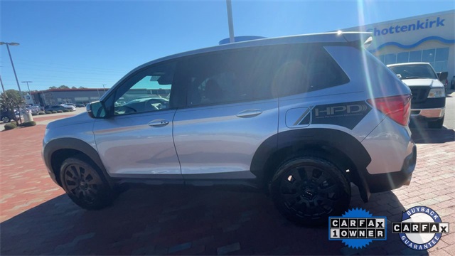 Recent Arrival! CARFAX One-Owner. Certified. 2023 Honda Passport EX-L EX-L Lunar Silver Metallic 4D Sport Utility 3.5L V6 24V SOHC i-VTEC 9-Speed Automatic AWD This vehicle comes well equipped with 4-Wheel Disc Brakes, 4.334 Axle Ratio, 7 Speakers, A/V remote: CabinControl, ABS brakes, Air Conditioning, Alloy wheels, AM/FM radio: SiriusXM, Apple CarPlay/Android Auto, Auto High-beam Headlights, Auto-dimming Rear-View mirror, Automatic temperature control, Blind Spot Information (BSI) System warning, Brake assist, Bumpers: body-color, Delay-off headlights, Driver door bin, Driver vanity mirror, Driver's Seat Mounted Armrest, Dual front impact airbags, Dual front side impact airbags, Electronic Stability Control, Emergency communication system: HondaLink Assist, Exterior Parking Camera Rear, Four wheel independent suspension, Front anti-roll bar, Front Bucket Seats, Front Center Armrest, Front dual zone A/C, Front reading lights, Fully automatic headlights, Garage door transmitter: HomeLink, Heated door mirrors, Heated Front Bucket Seats, Heated front seats, Illuminated entry, Lane departure: Lane Keeping Assist System (LKAS) active, Leather-Trimmed Seats, Low tire pressure warning, Occupant sensing airbag, Outside temperature display, Overhead airbag, Overhead console, Panic alarm, Passenger door bin, Passenger seat mounted armrest, Passenger vanity mirror, Power door mirrors, Power driver seat, Power Liftgate, Power moonroof, Power passenger seat, Power steering, Power windows, Radio data system, Radio: 215-Watt Audio System w/7 Speakers, Rear air conditioning, Rear anti-roll bar, Rear reading lights, Rear seat center armrest, Rear window defroster, Rear window wiper, Remote keyless entry, Security system, Speed control, Speed-sensing steering, Split folding rear seat, Spoiler, Steering wheel mounted audio controls, Tachometer, Telescoping steering wheel, Tilt steering wheel, Traction control, Trip computer, Turn signal indicator mirrors, Variably intermittent wipers, and Wheels: 20" Pewter Gray Alloy.